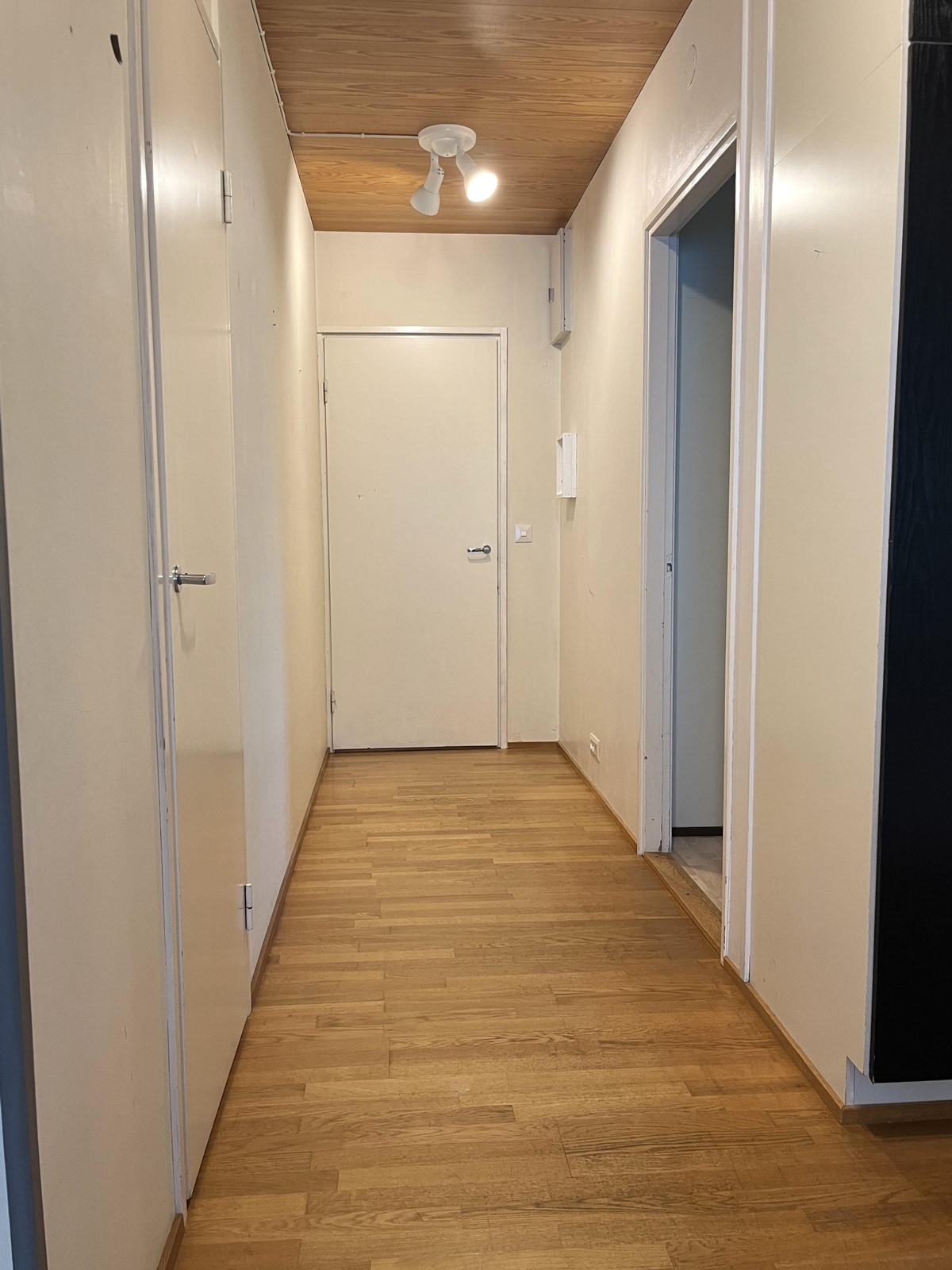 Keittiö: muovimatto, seinät maali, vältila kaakeli. Olohuone: parkettilattia, seinät maali. Makuuhuone 1: muovimatto, seinät tapetti / maali. Makuuhuone 2: muovimatto, seinät tapetti / maali. Sauna: laattalattia, paneeliseinät. Kylpyhuone: /wc: laattalattia, kaakeliseinät. Eteinen: parkettilattia, seinät maali.