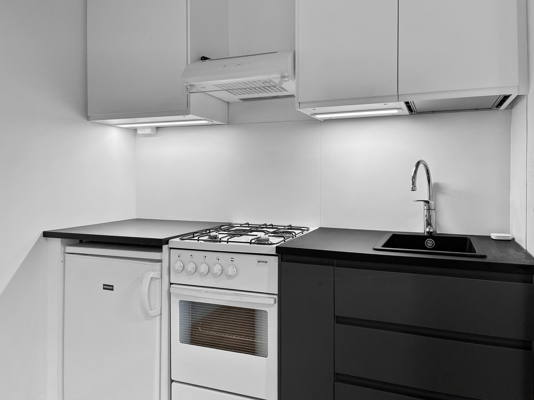 - Jääkaappi (pakastinlokero), kaasuliesi, liesituuletin, kaapistot, kiinteät valaisimet.