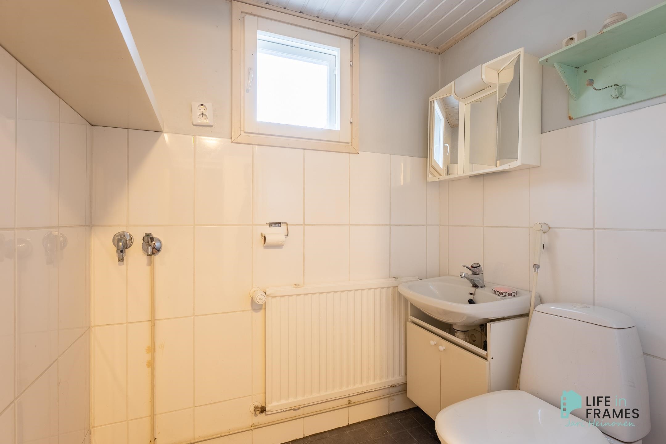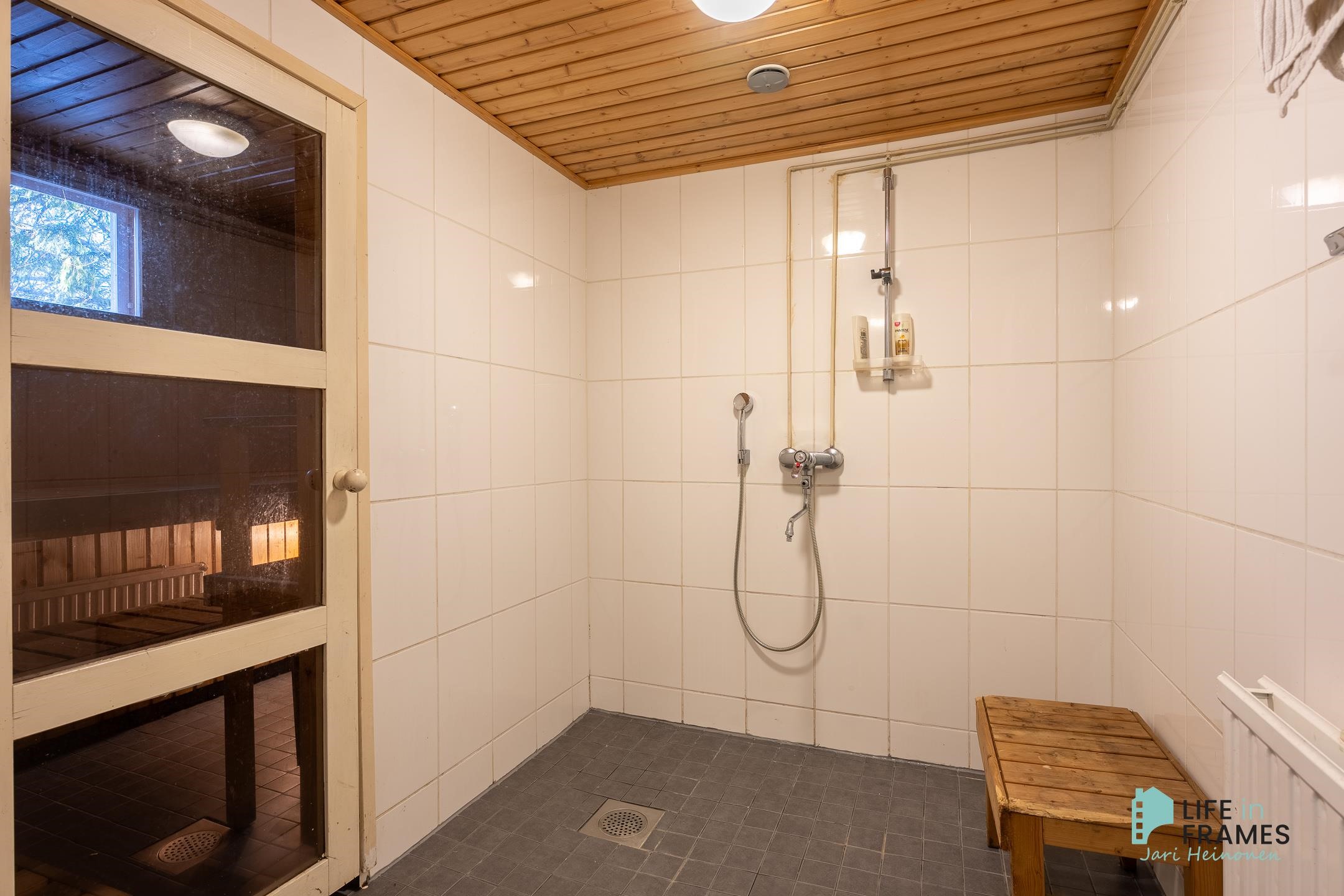 - Sauna, sähkökiuas, kylpyhuone, erillinen wc, suihku, peilikaappi, allaskaappi, pesukoneliitäntä, lattialämmitys, kiinteät valaisimet.