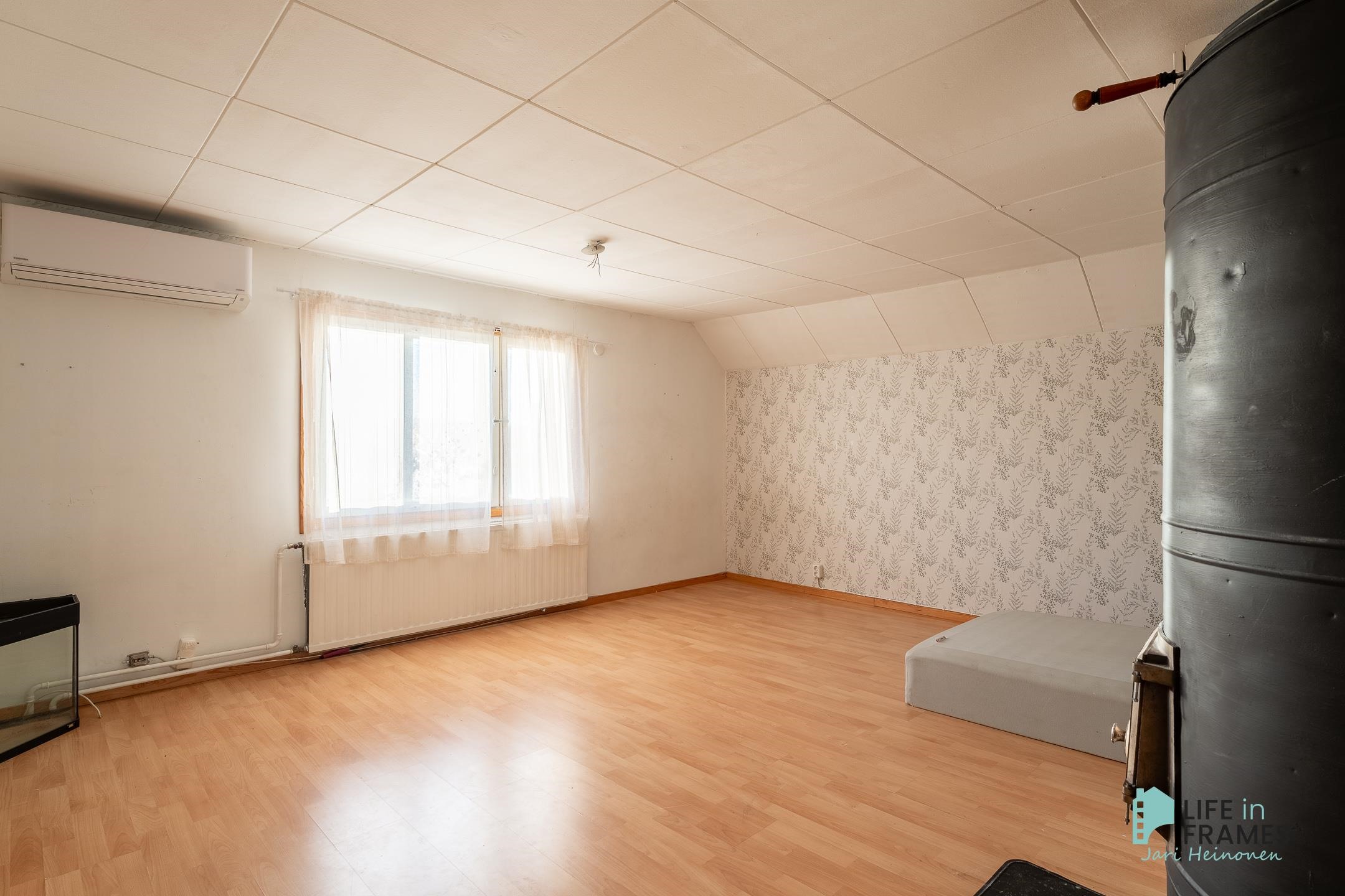 Talon lämmityksestä vastaa pääosin öljy, mutta halutessasi saat säästöä lämmittämällä molempien asuinkerrosten takkoja. Alakerrassa on komea kivitakka ja yläkerran makuuhuoneesta löytyy pönttöuuni. Taloa on osittain pintaremontoitu ja mm. kylpyhuone ja sauna on uudistettu. Lisäksi talosta löytyy kaksi ilmalämpöpumppua, yksi per asuinkerros.