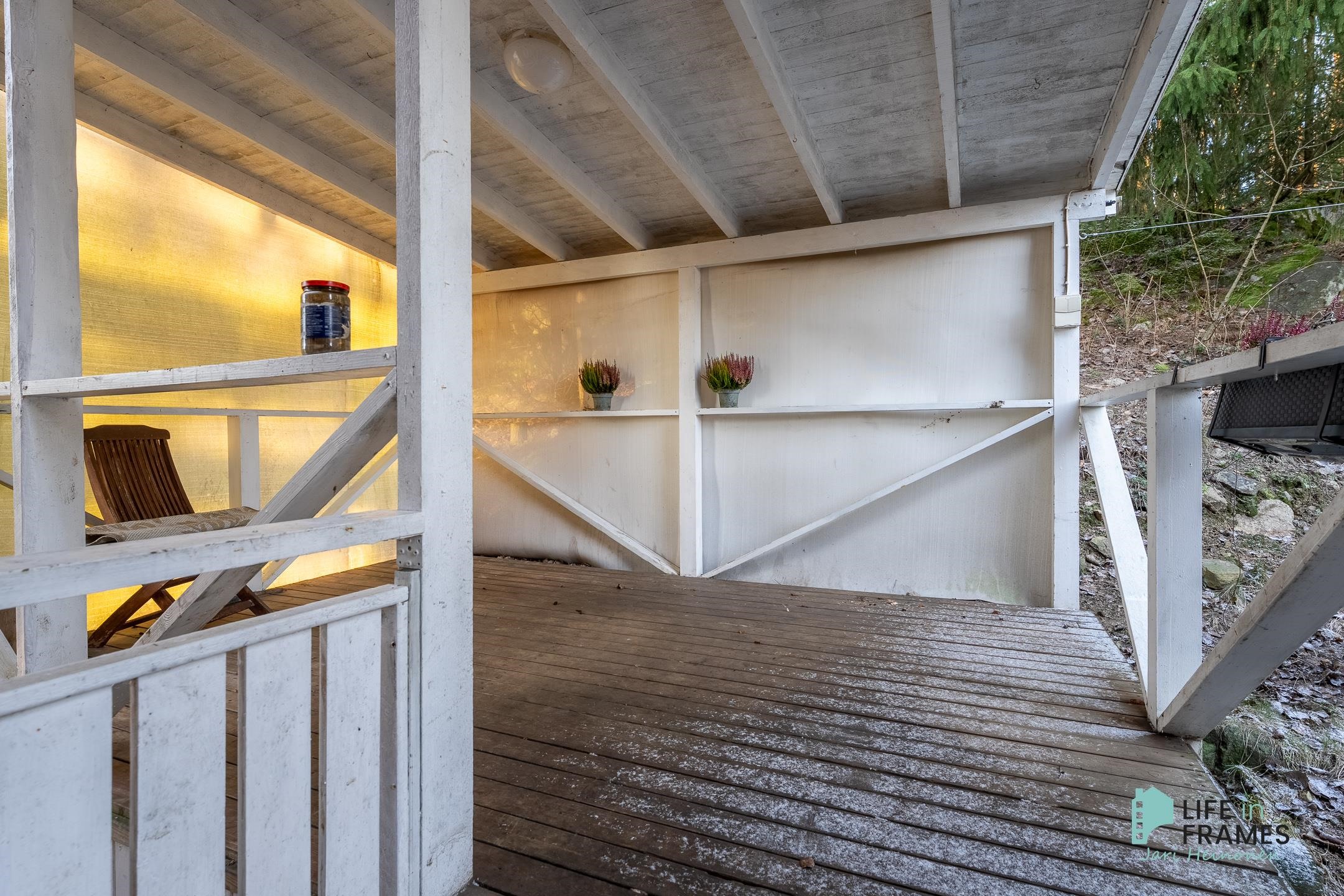 Keittiöstä on käynti katetulle terassille, jossa on mukava nautiskella vaikka kesäillasta.