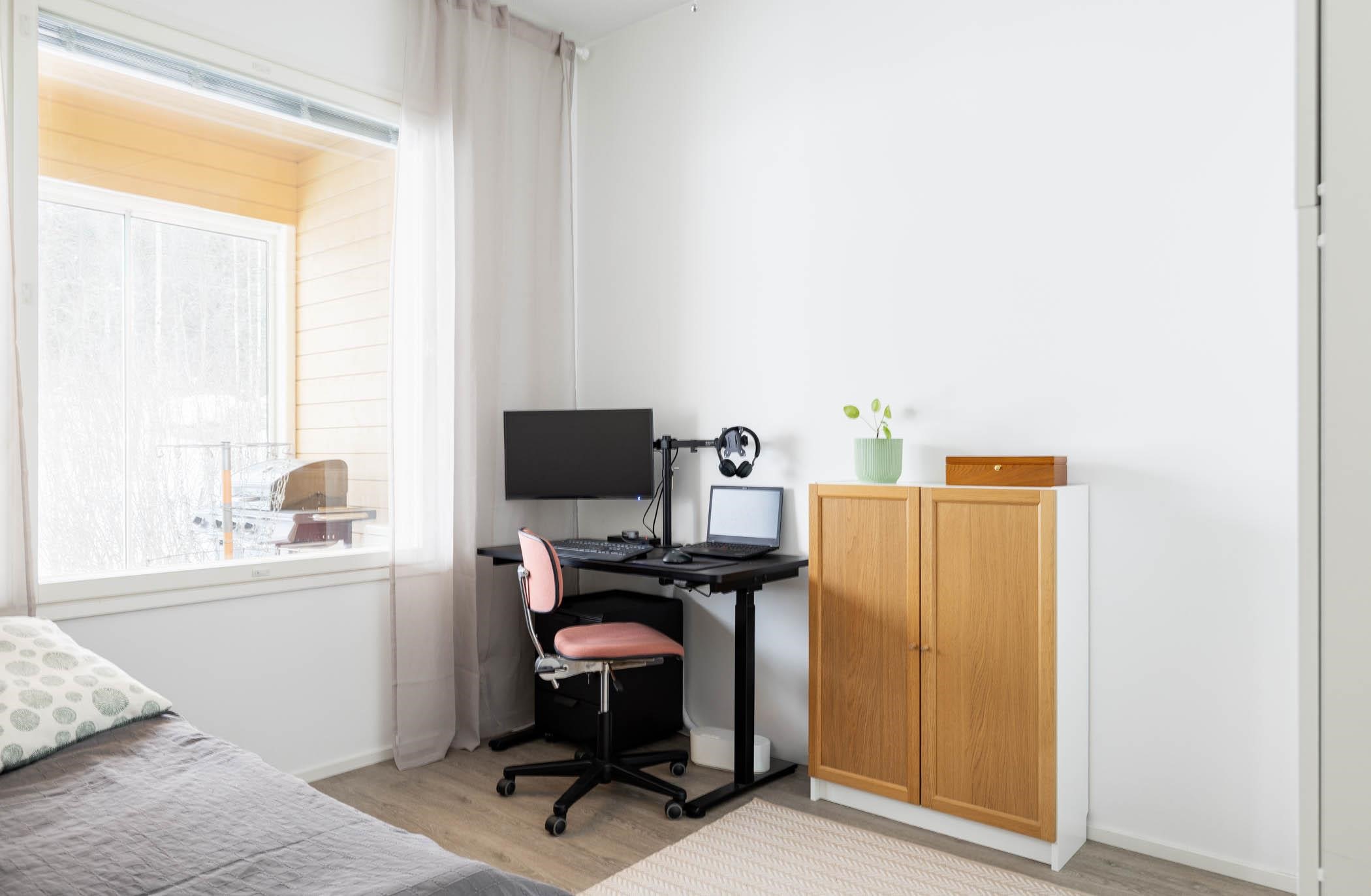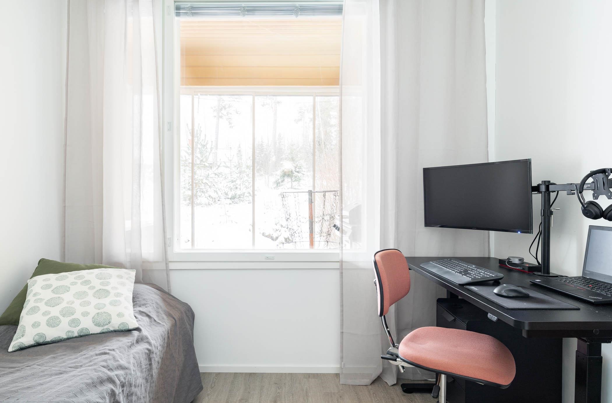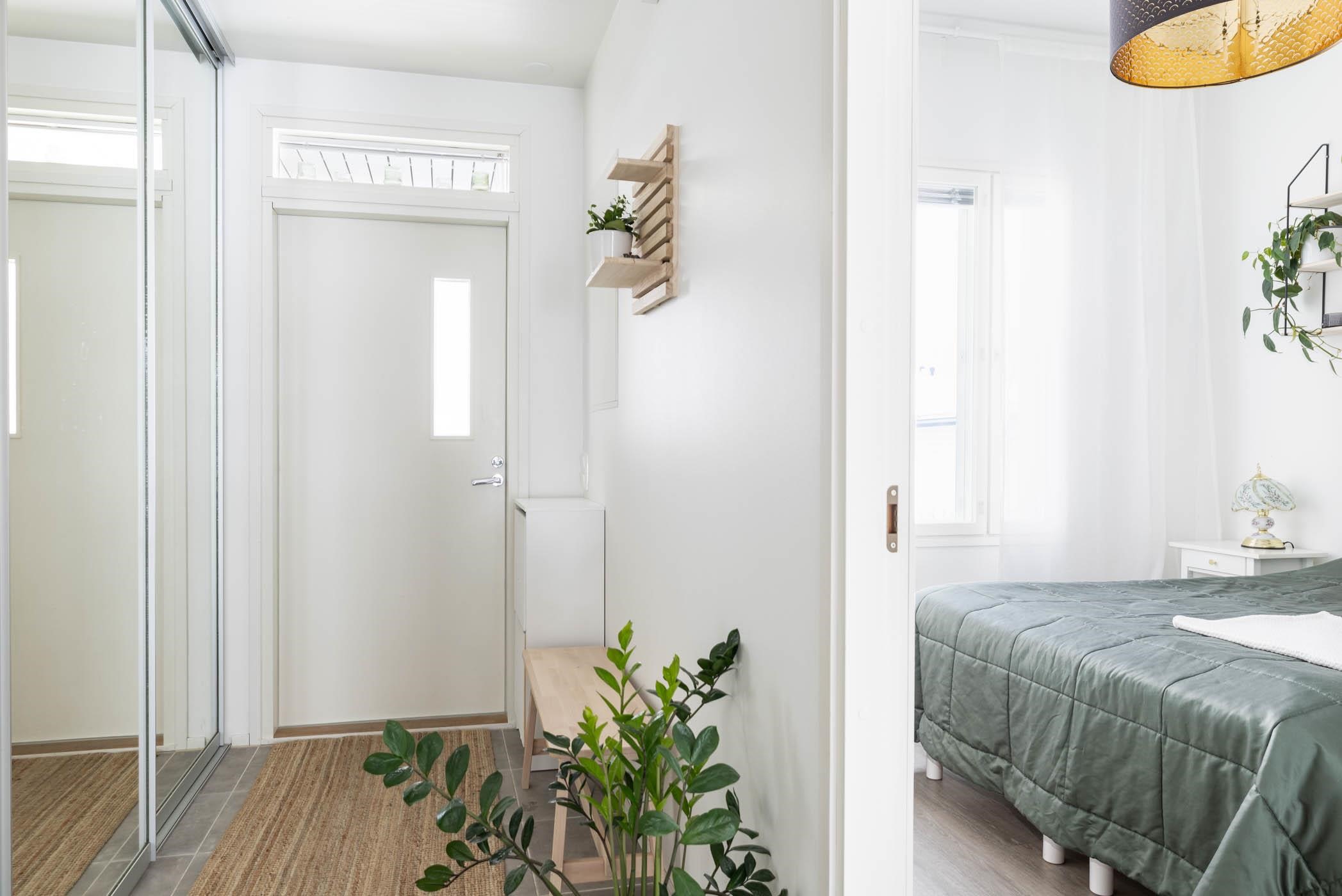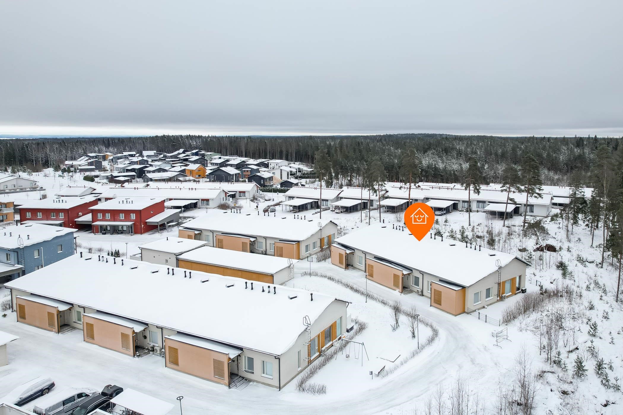 - Takapiha etelään, makuuhuoneet pohjoiseen ja etelään.