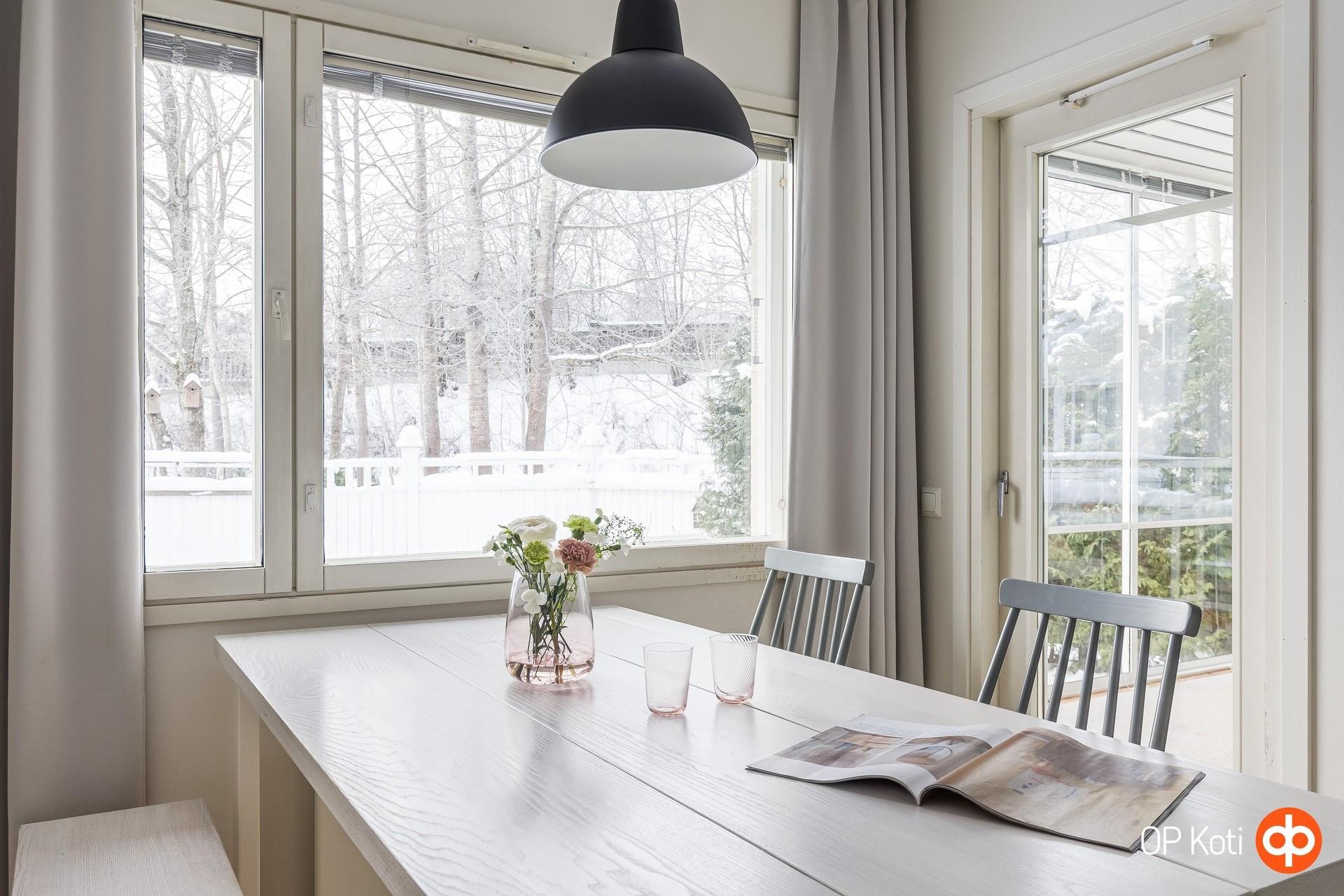 Viihtyisää asumista Hannusjärven pientalo-alueella palveluiden läheisyydessä. Kivan kokoinen paritalokolmio yhdessä tasossa Espoon Hannusjärven alueella toivottaa uudet asukkaat tervetulleeksi. Pienen paritaloyhtiön viihtyisä ja tilava kolmio odottaa uusia asukkaita viihtymään tällä rauhallisella alueella. Asunnossa on kaksi hyvän kokoista makuuhuonetta ja yhtenäiset oleskelutilat vaalealla avokeittiöllä. Kuisti on lasitettu ja siltä aukeaa asunnon piha-alue. Olohuoneessa lämmittää ja luo tunnelmaa varaava takka. Sijainti on mitä mainioin; täältä pääset vaivattomasti Espoonlahden Lippulaivan kauppakeskuksen runsaiden palveluiden ääreen. Helsingin keskustaan hurauttaa autolla vain vartissa, lähellä olevalta bussipysäkiltä julkisilla puolessa tunnissa. Espoon rantaraitti merellisillä maisemilla vain kivenheiton päässä. Lämpimästi tervetuloa tutustumaan tähän lämminhenkiseen kotiin. Ota yhteyttä ja varaa oma esittelyaikasi. Heini Paassola 0405399390 heini.paassola@op.fi
