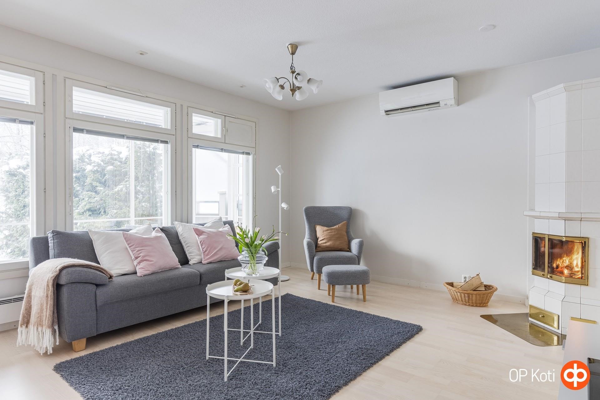 - Sähkö. Ilmalämpöpumppu ja varaava takka.
