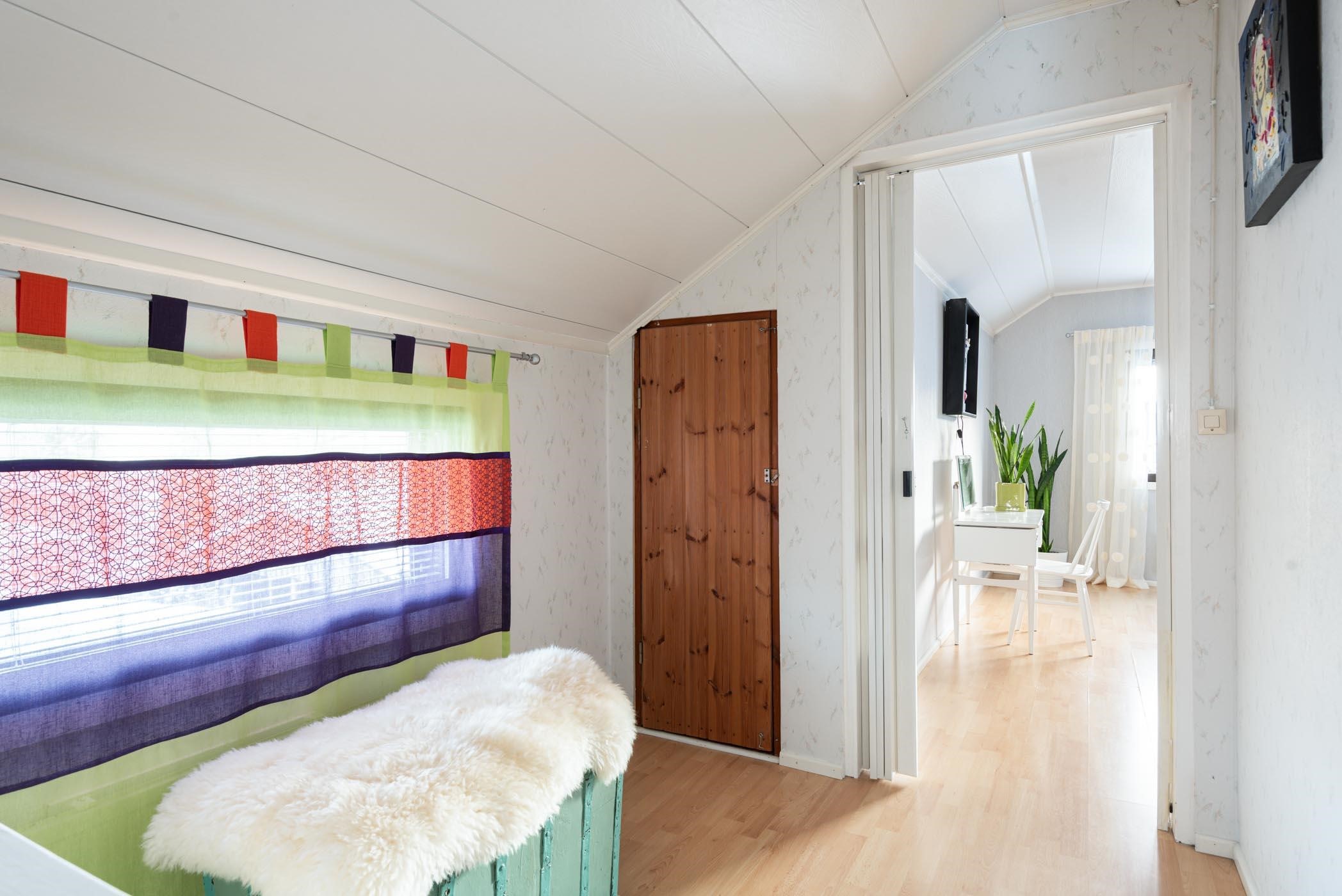 Keittiö: Laminaatti, maali. Olohuone: Laminaatti, tapetti. Makuuhuone 1: Laminaatti, tapetti. Makuuhuone 2: Laminaatti, tapetti. Sauna: Laatta, paneli. Kylpyhuone: Laatta, laatta. Eteinen: Laatta, maali.