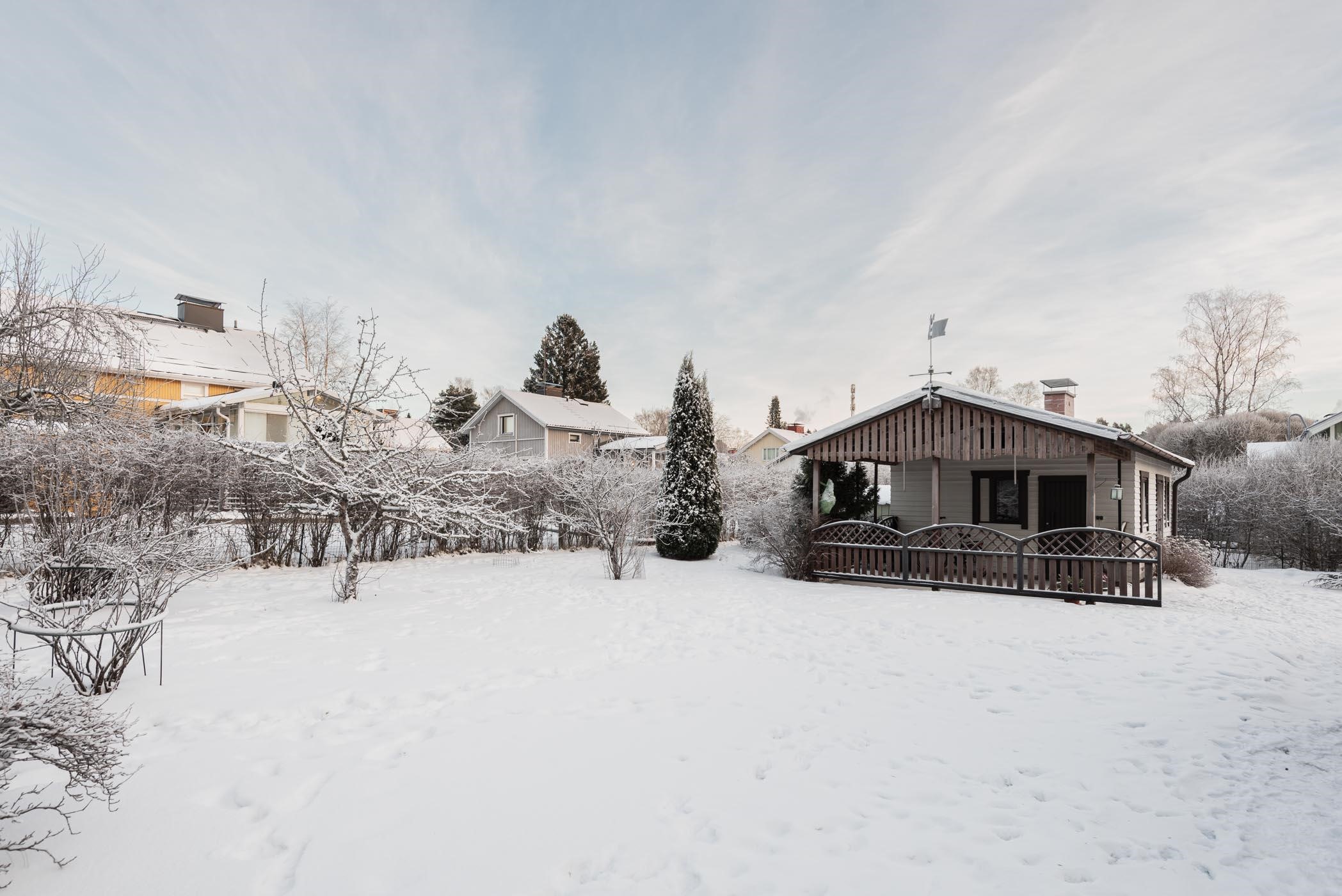 Palvelut: ruokakauppa Päiväkoti, esikoulu 0,4 km. Koulut: Alakoulu 0,6 km. Päiväkoti: 2 kpl alle 0,4 km. Hyvät ulkoilumaastot. Kaunis vanha puutarhatontti, jossa marjapensaita, omenapuita ja nurmipihaa.