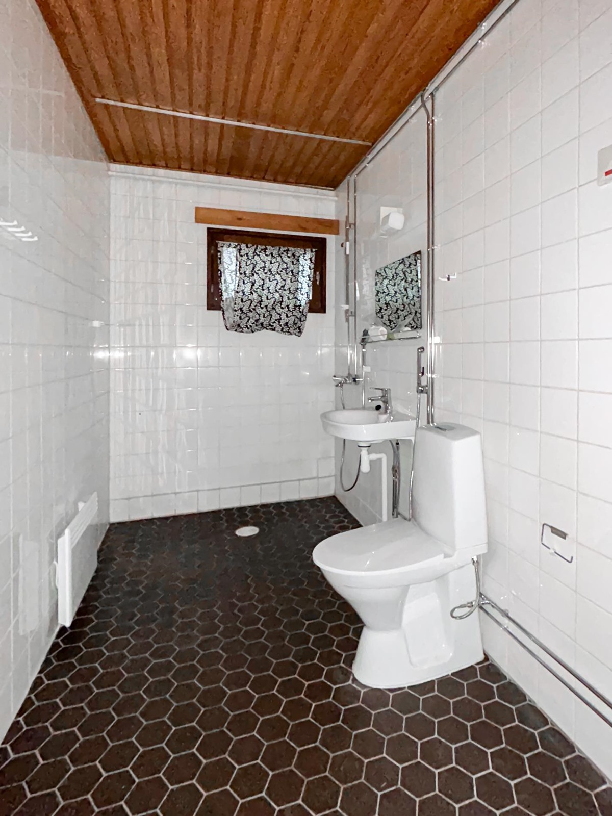 - Sauna, sähkökiuas, kylpyhuone, suihku, peilit, pesukoneliitäntä, kiinteät valaisimet.
