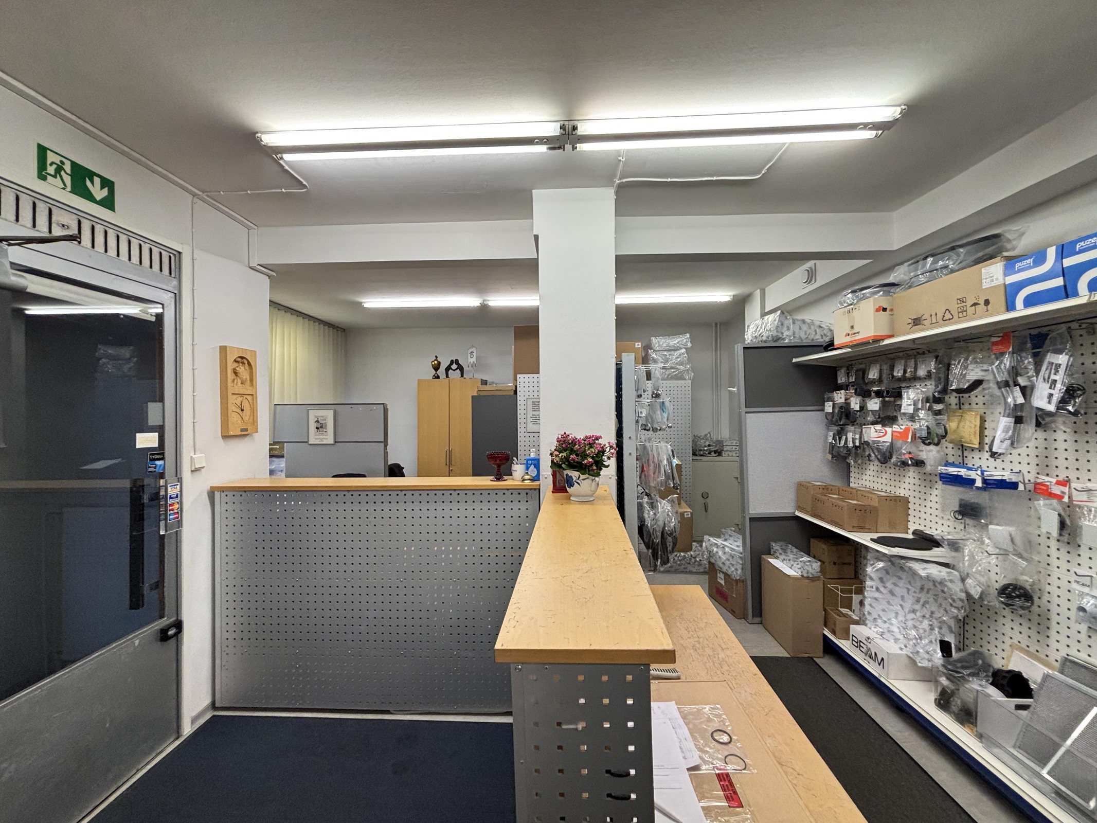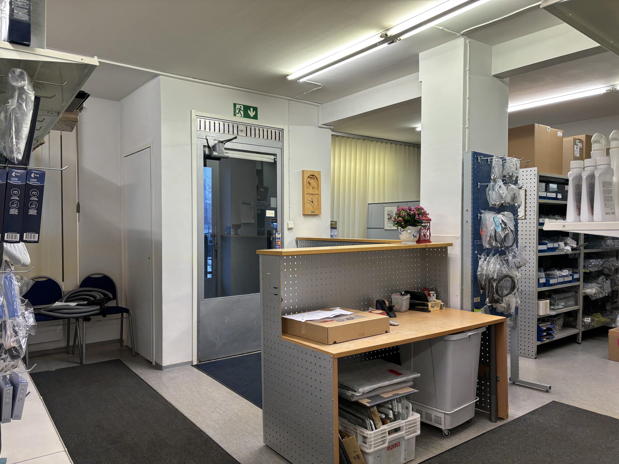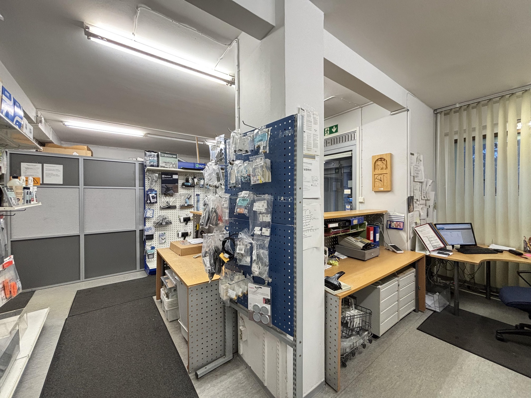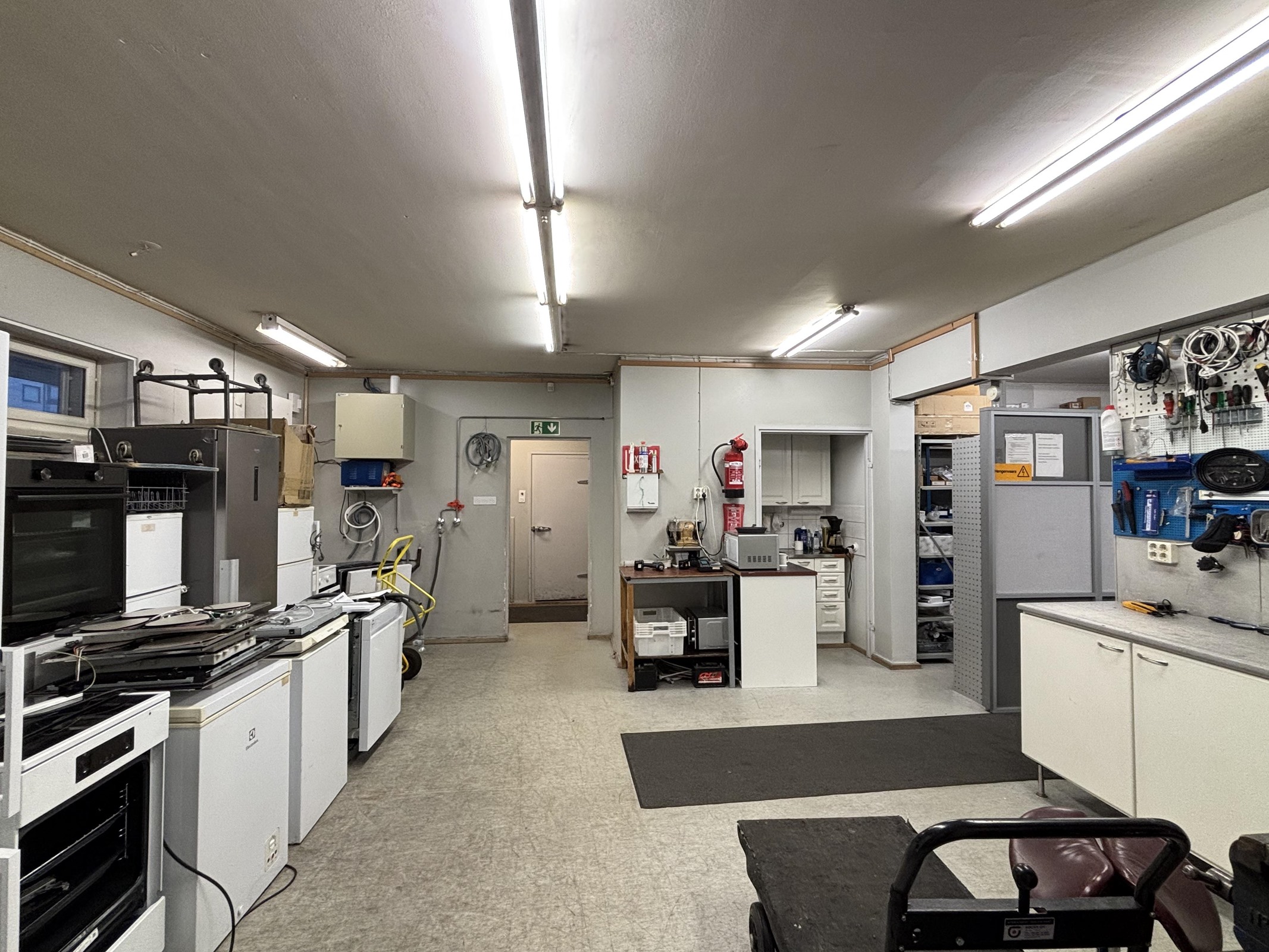 - Liikehuoneisto, 1 wc, 2 varastoa, kk, takahuone