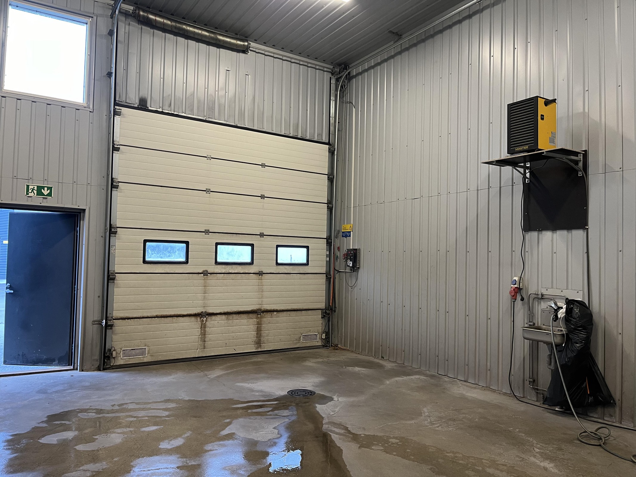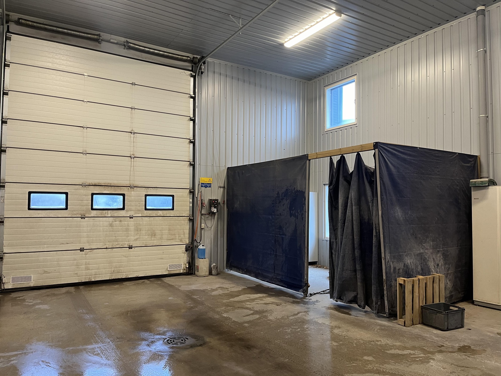 Tila soveltuu pesuhalliksi. Kulmahalli, joka on läpiajettavissa, sillä molemmilla laidoilla on nosto-ovet tilaan. Hallin korkeus 4.9m.