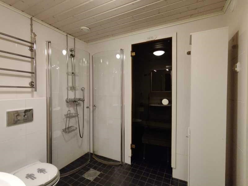 - Sauna, sähkökiuas, kylpyhuone, suihku, suihkuseinä kääntyvä, peilit, pesukoneliitäntä, lattialämmitys kulutus huoneiston sähkömittariin. Kylpyhuone kokonaan laatoitettu