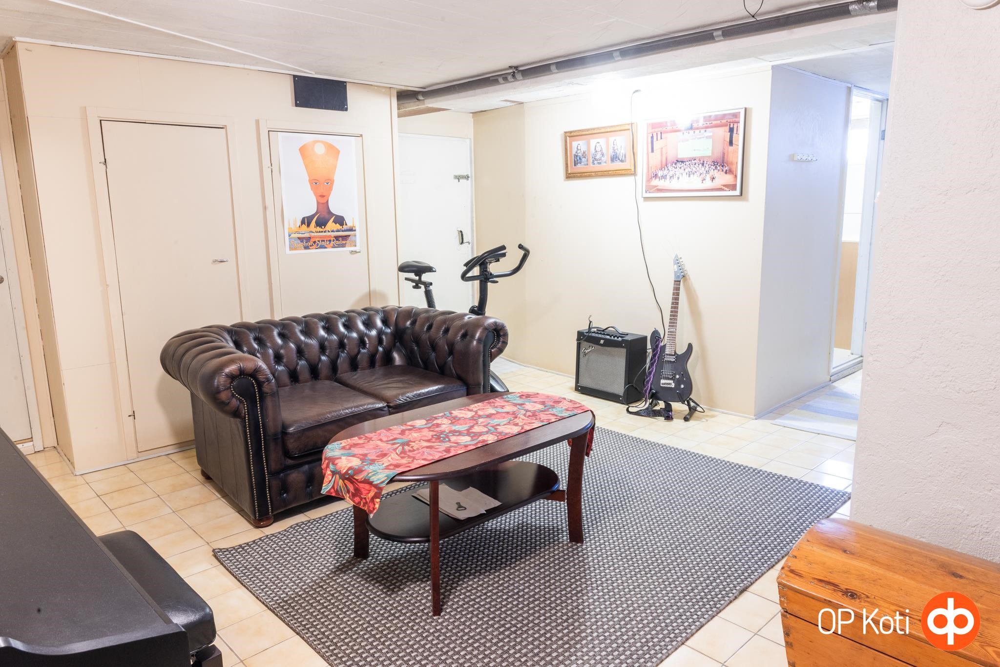 Maanpinnan tasossa sijaitsee kolme makuuhuonetta, valoisa olohuone, keittiö sekä erillinen wc. Alakerrassa on viihtyisä sauna- ja pesutila, oleskelutila, tekninen tila, kellari sekä vaatehuone, jotka tuovat runsaasti lisätilaa ja mahdollisuuksia.