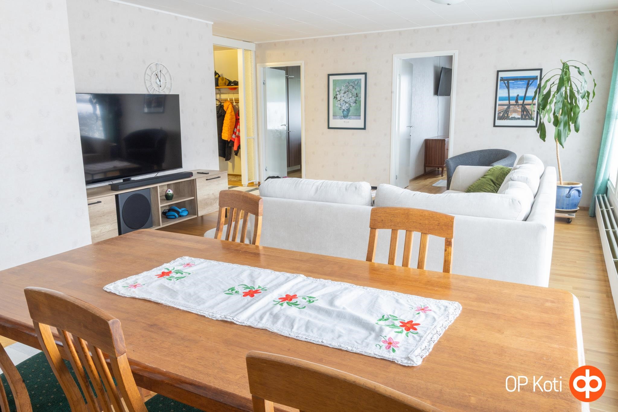 Tämä koti on todellinen lapsiperheen unelma: alakoulu on vain muutaman minuutin kävelymatkan päässä, keskustaan on matkaa noin kilometri ja uimapaikka, hiihtoladut sekä ulkoilumaastot löytyvät aivan lähistöltä. Kiinnostuitko? Tervetuloa tutustumaan tähän mahdolliseen uuteen kotiisi! Ehkä juuri täällä alkaa seuraava elämäsi luku.