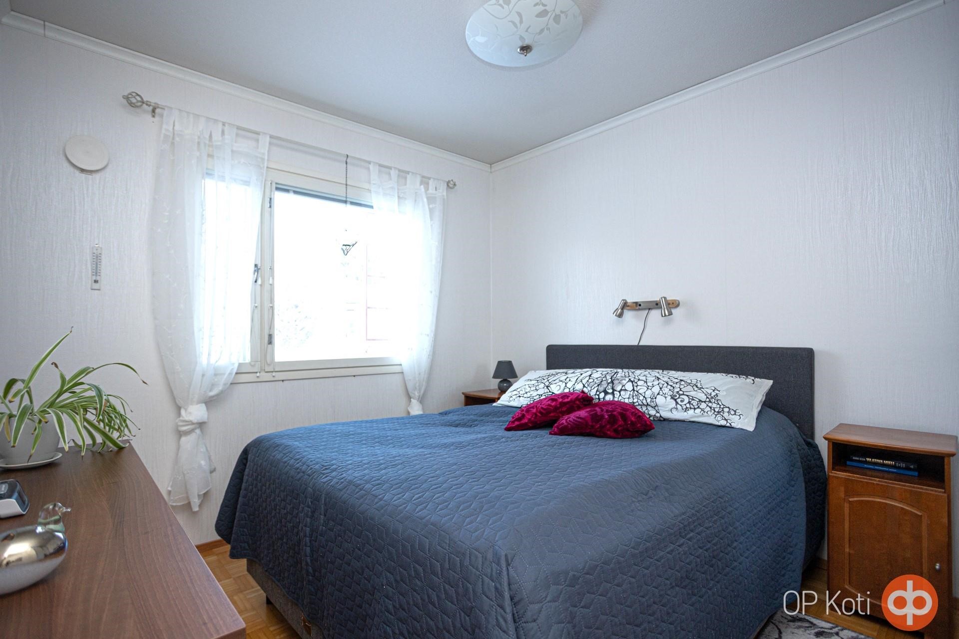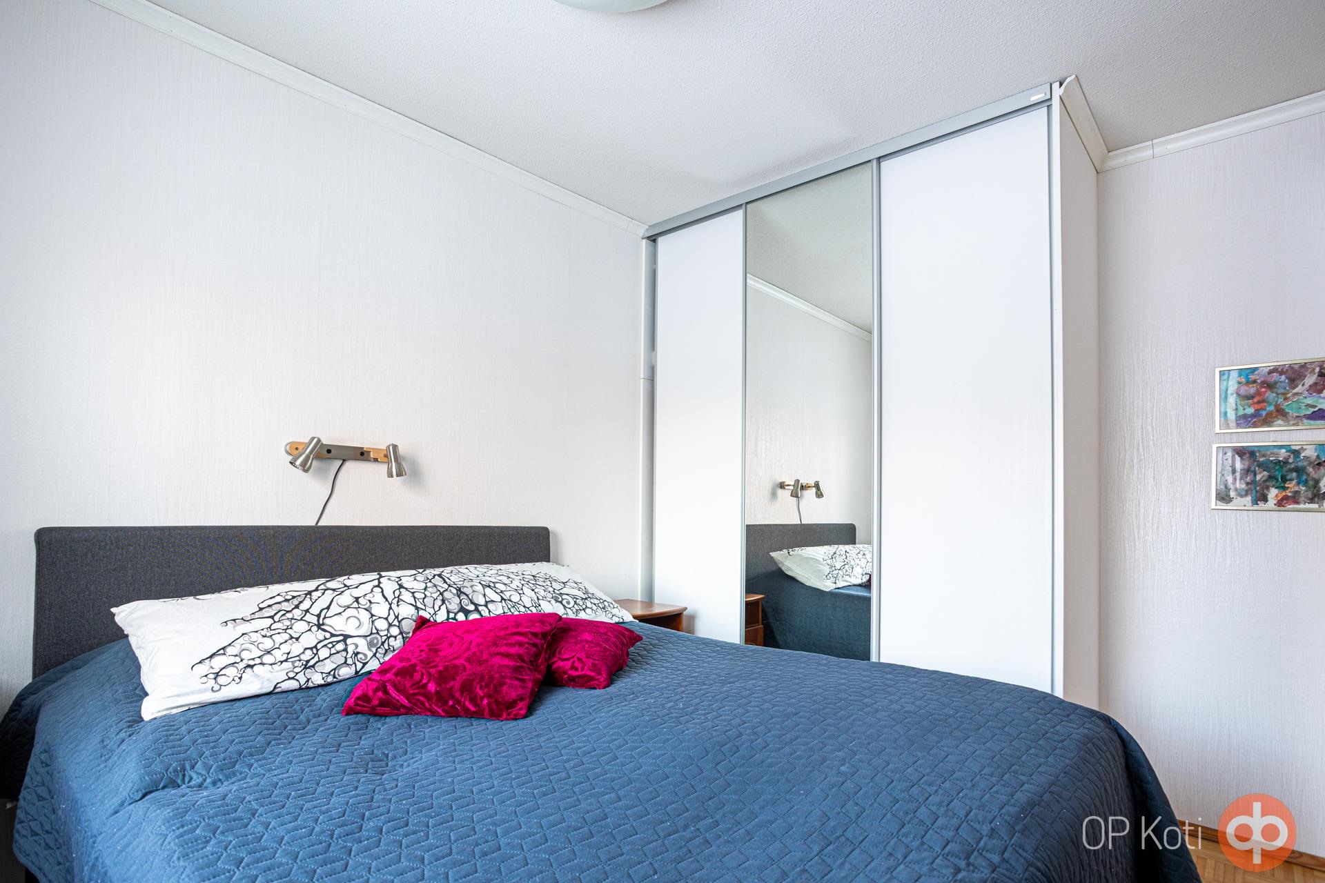 Pohjaratkaisu on toimiva ja makuuhuoneet sijoittuvat eri puolille huoneistoa tarjoten asumiseen omaa rauhaa ja yksityisyyttä.