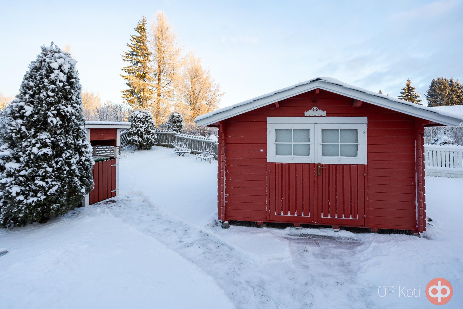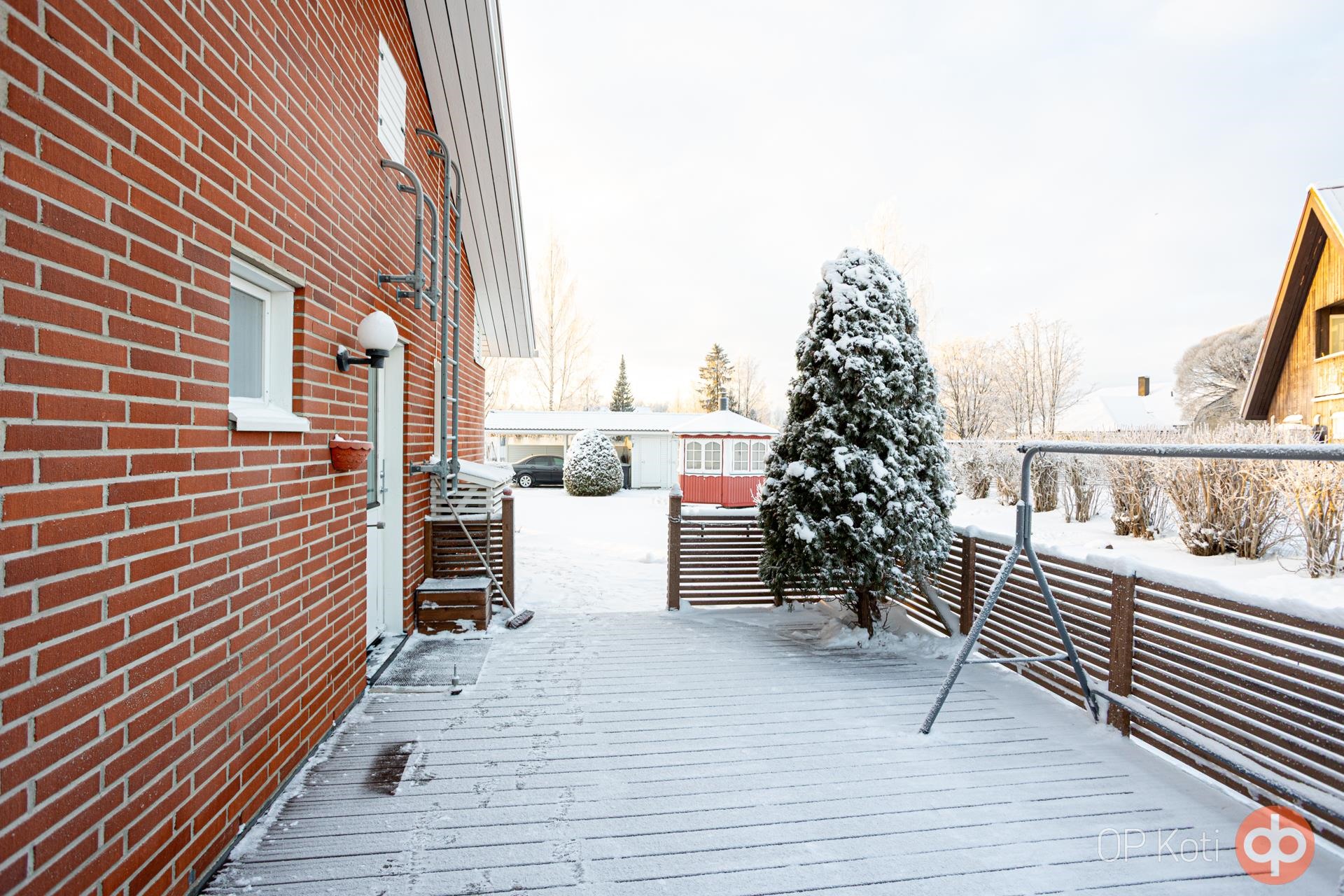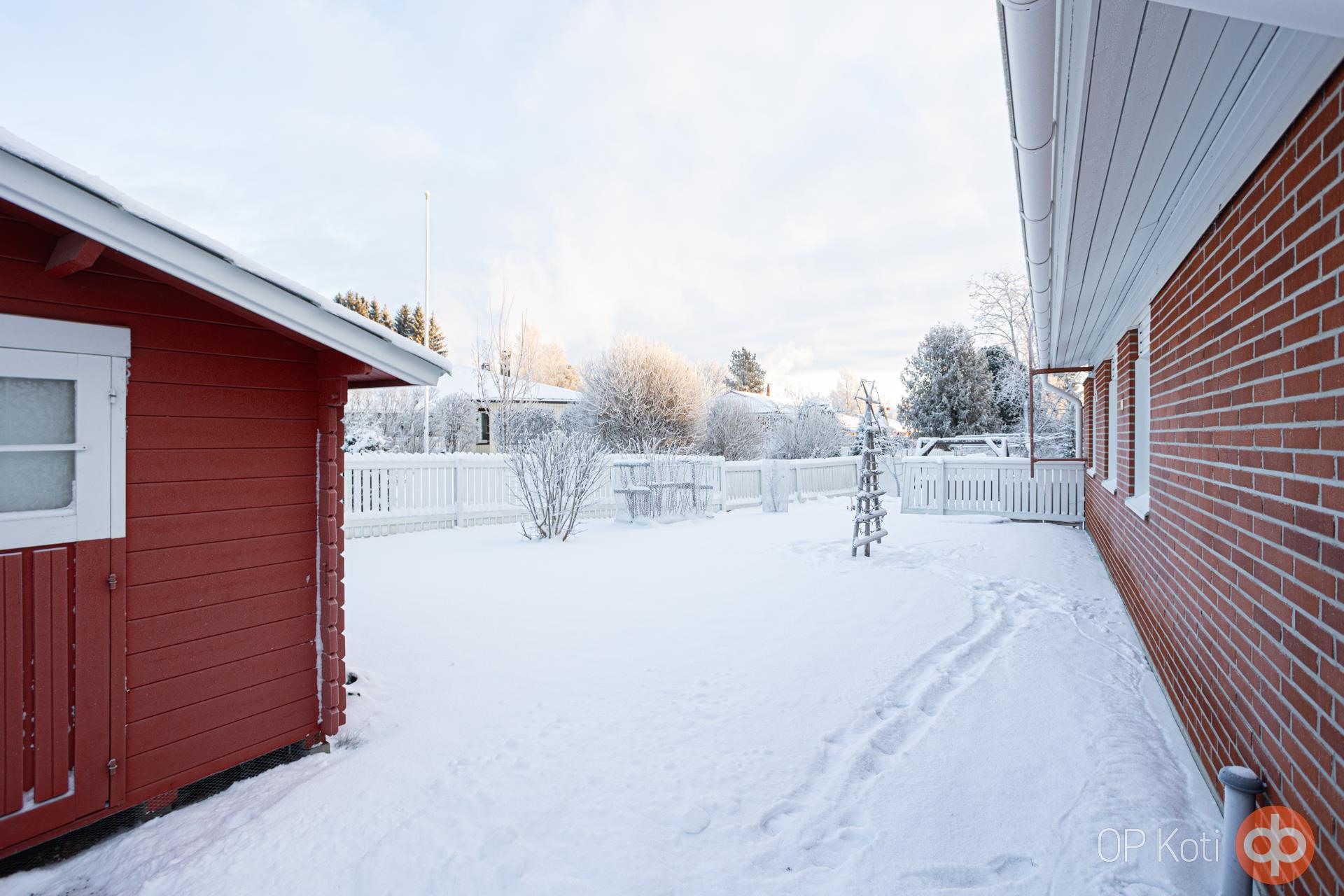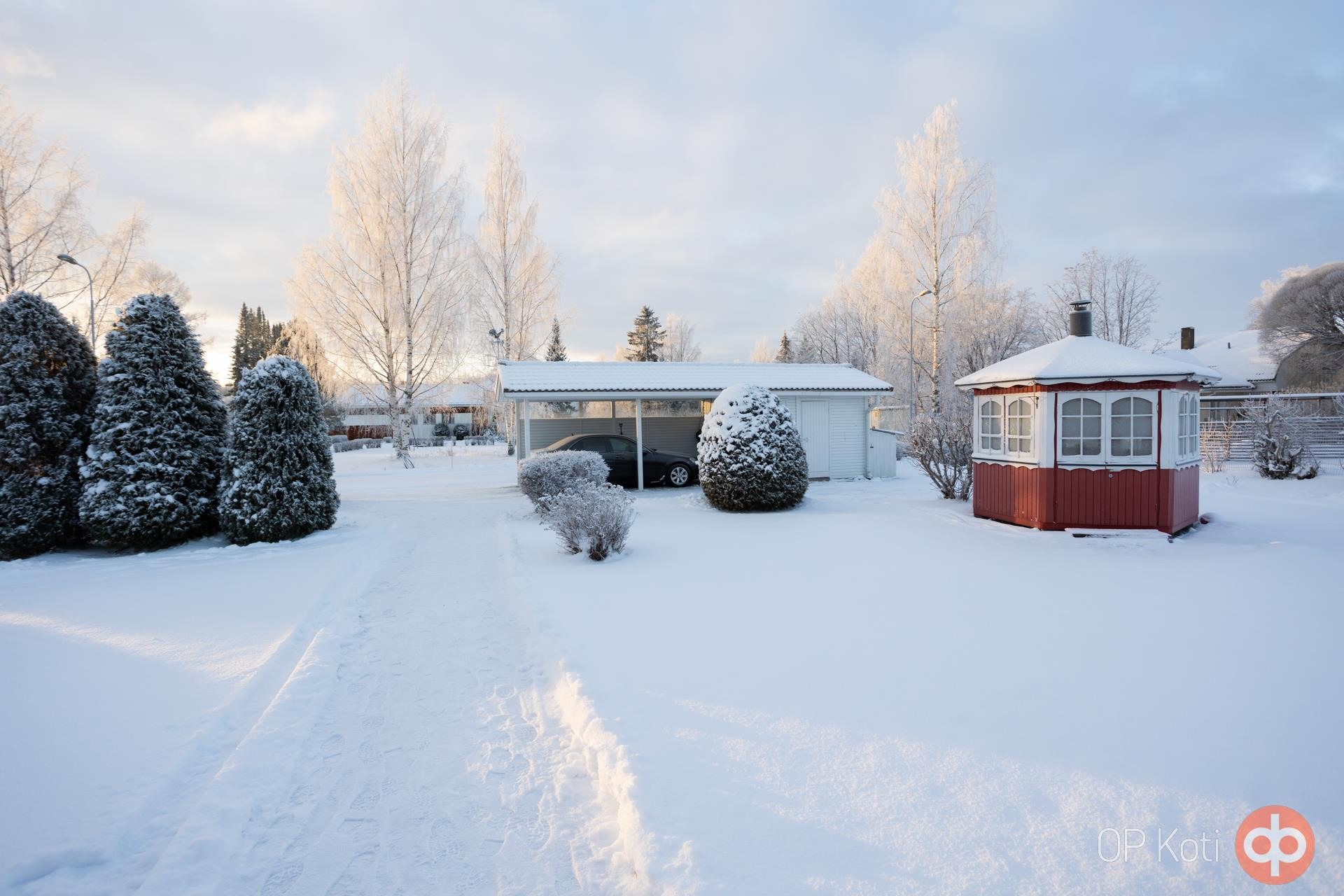 Piha-alue tarjoaa runsaasti tilaa leikkeihin, harrastuksiin ja viherpeukalointiin. Pihalta löytyy huvimaja ja erillinen aitta ja maisemaa elävöittävät havut, pensaat sekä kesäisin upeasti kukkiva perennapenkki! Kokonaisuus hurmaa niin kesän vehreydessä kuin talven rauhallisessa lumimaisemassakin.