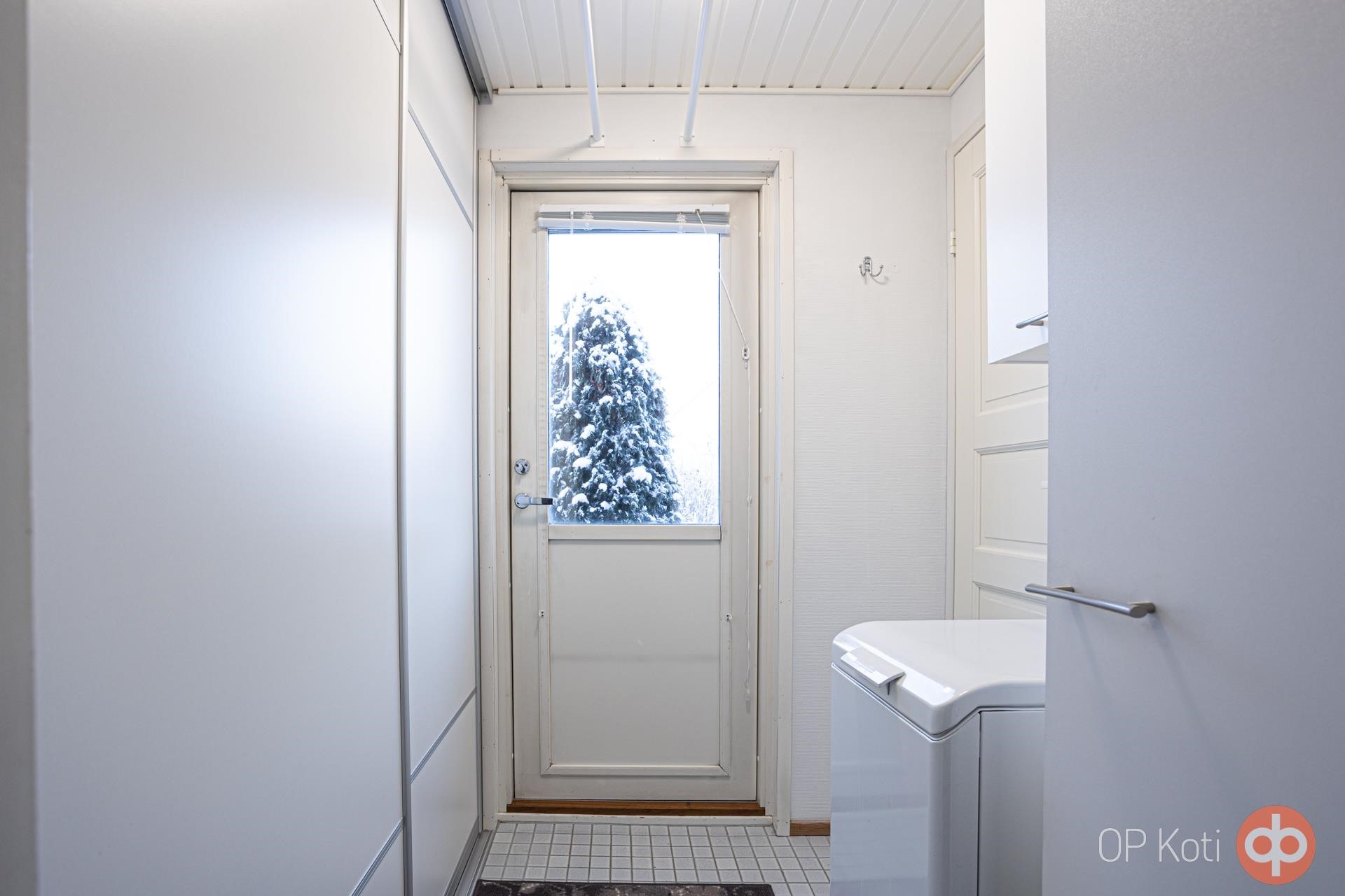 Erillinen wc on uusittu kalusteineen ja sauna on päivitetty viihtyisäksi rentoutumispaikaksi. Löylyttelyjen jälkeen pääset kätevästi vilvoittelemaan kodinhoitotilan kautta terassipatiolle.