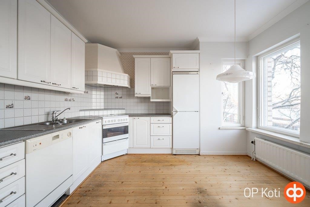- Jääkaappi, keraaminen liesi, astianpesukone, kaapistot, kiinteät valaisimet.