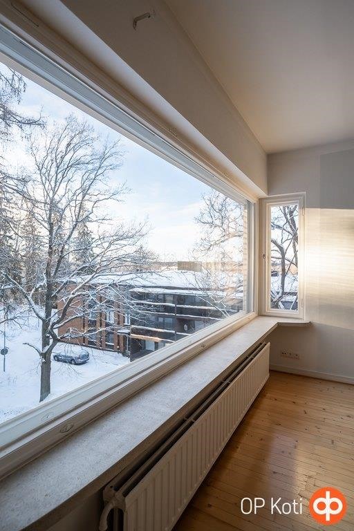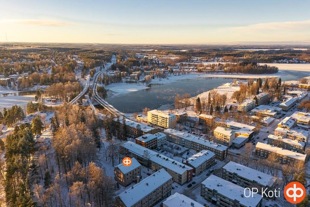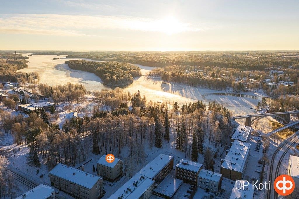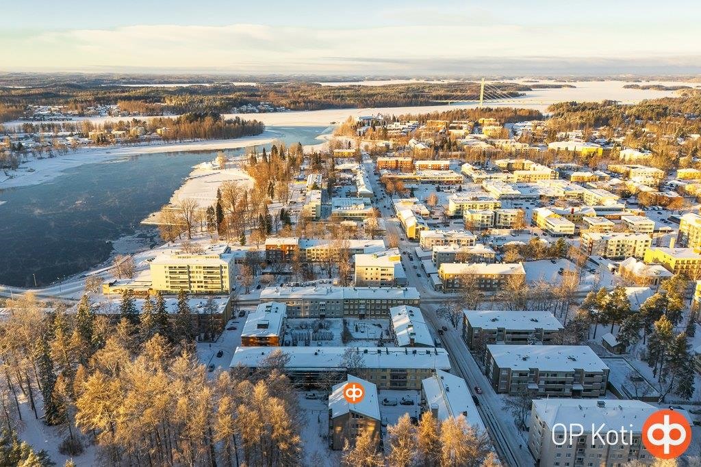 Heinolan keskustan kupeessa sijaitseva ylimmän kerroksen valoisa ja avara asunto. Huoneistomuutos on toteutettu vuonna 2002, ja pohjaratkaisu palvelee erinomaisesti nykypäivän asumisen tarpeita. Asunnossa on kaksi makuuhuonetta sekä suuri olohuone, jonka tunnelmaa ja viihtyisyyttä lisää takka. Olohuoneen suuresta ikkunasta avautuvat kauniit, puistomaiset näkymät.