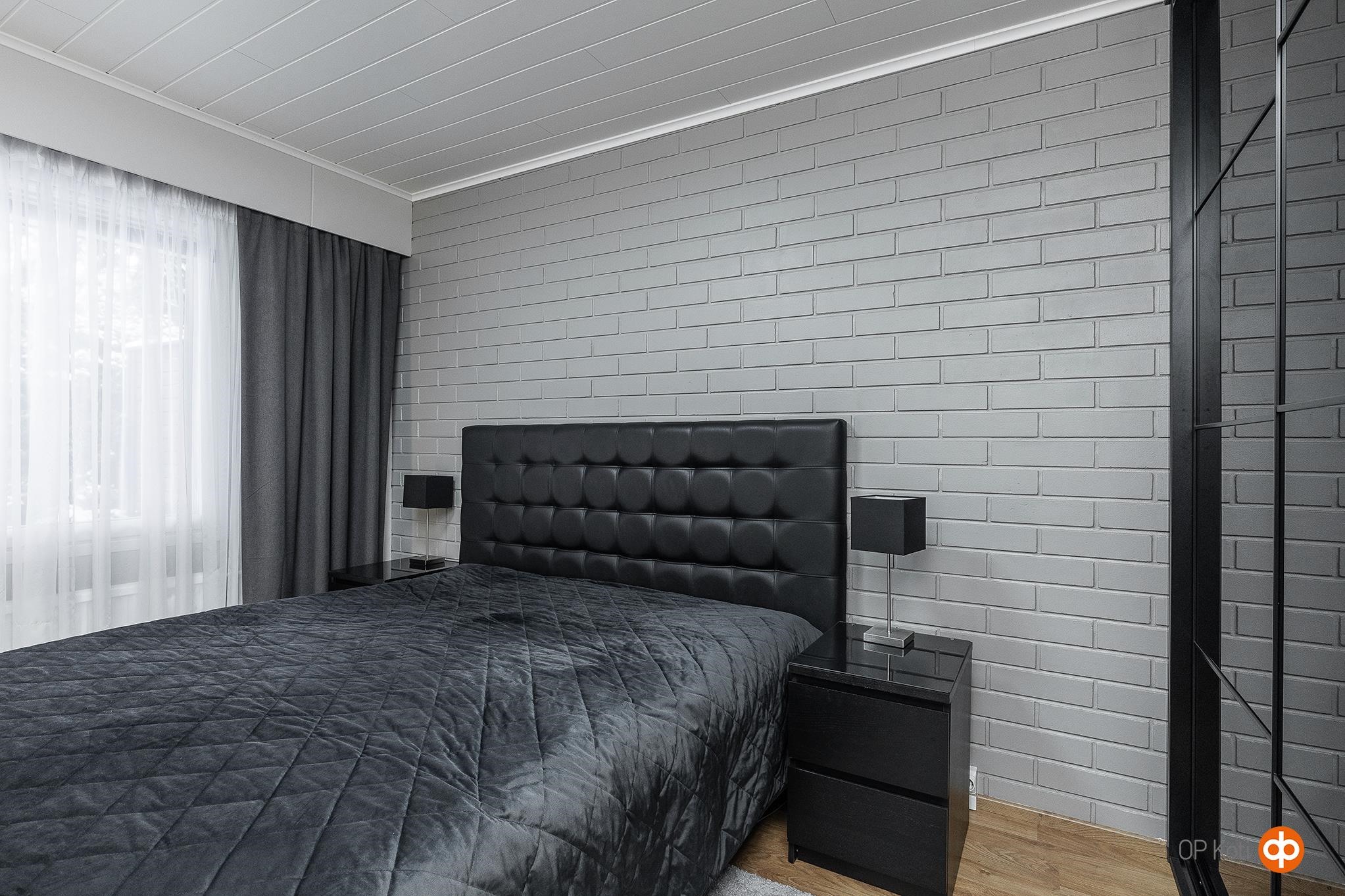 Keittiö: Laminaatti, maali, MDF levy katossa. Olohuone: Laminaatti, maali, tapetti, MDF levy katossa. Makuuhuone 1: Laminaatti, maali, tapetti, MDF levy katossa. Sauna: Lattialaatta, seinä- ja kattopaneeli. Kylpyhuone: Lattia laatta, seinäkaakeli. Eteinen: Laminaatti, maali, MDF levy katossa.