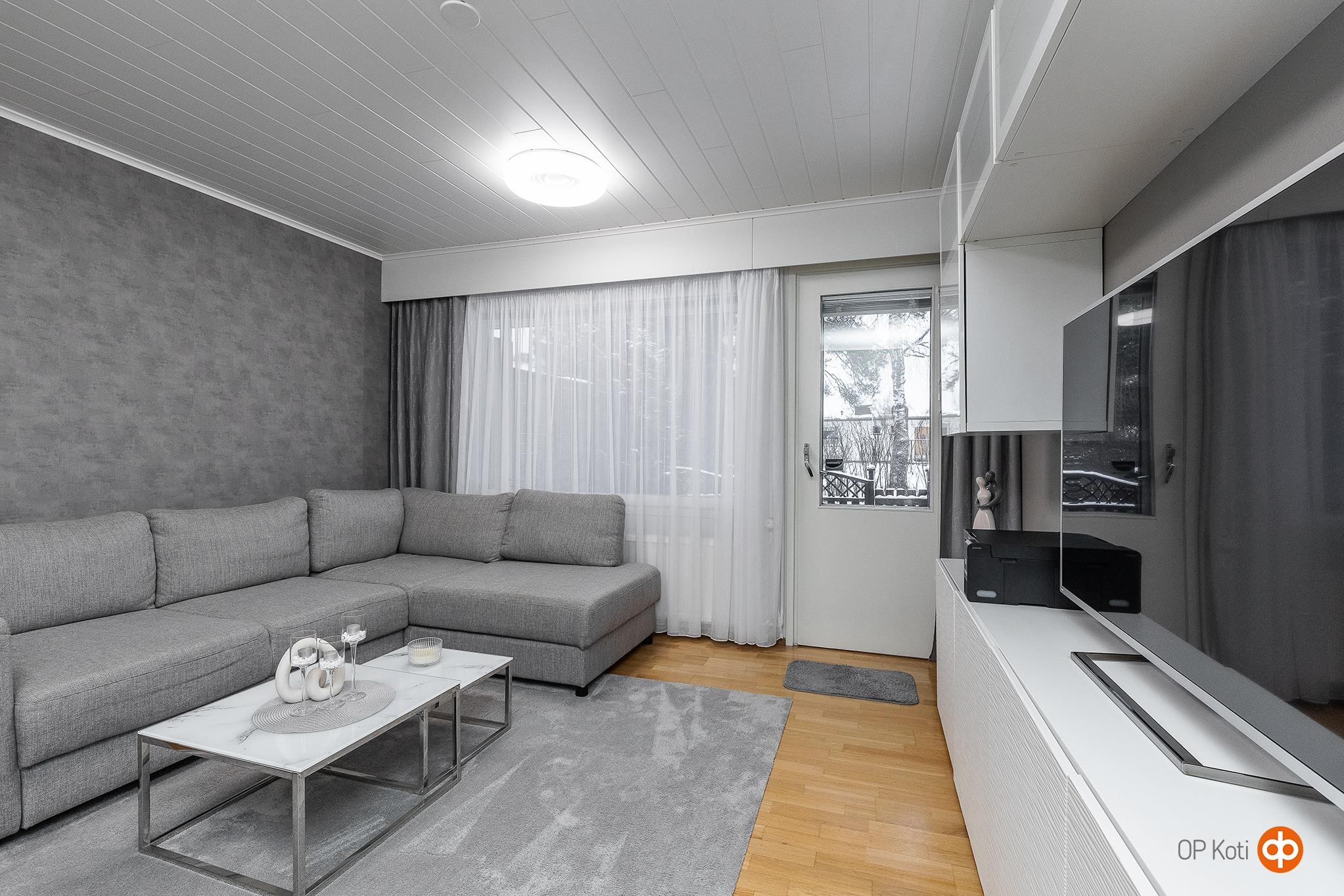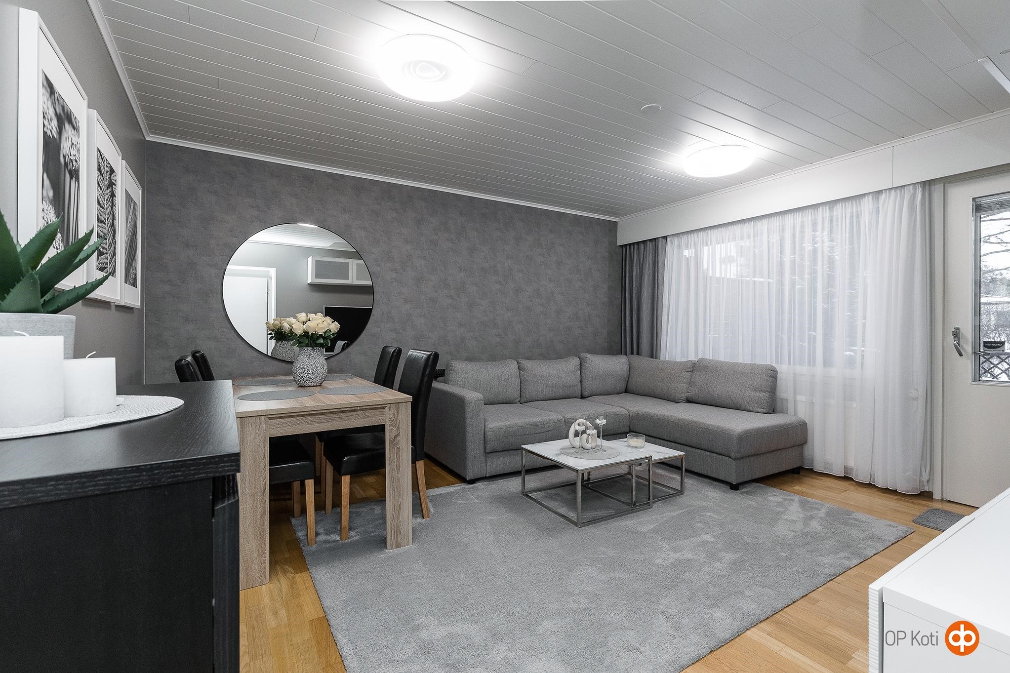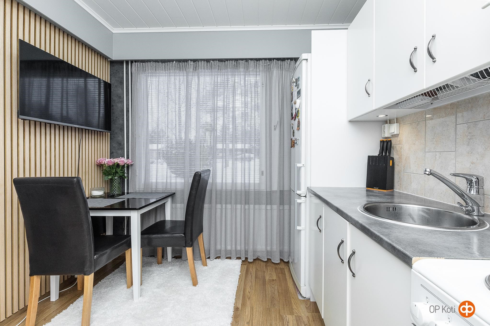 Tämä päätyasunto tarjoaa toimivan pohjaratkaisun ja hyvät puitteet arkeen rauhallisella pientaloalueella. Kodin tilat on saneerattu kokonaisuudessaan, joten asumaan pääsee ilman remonttihuolia.