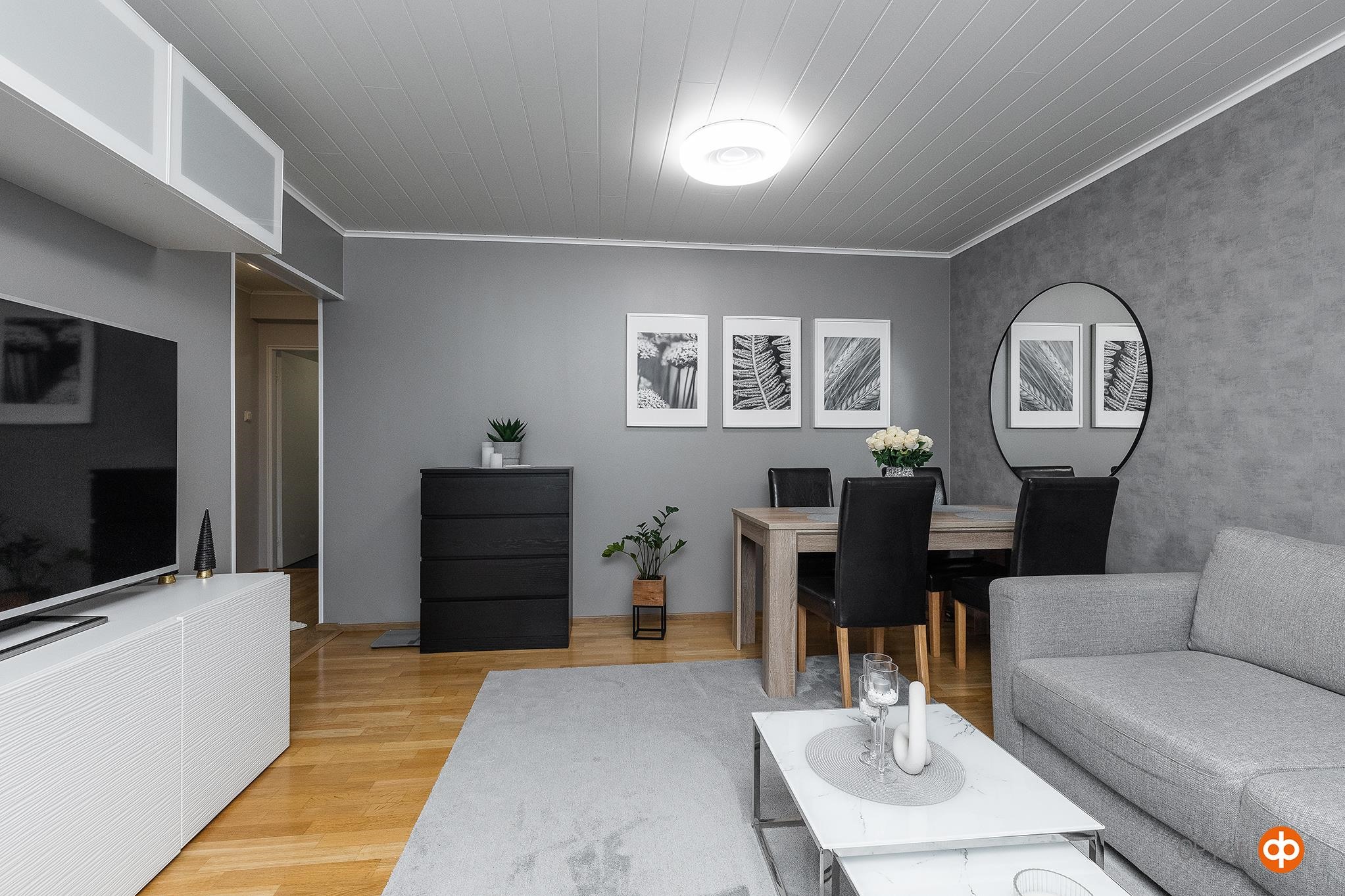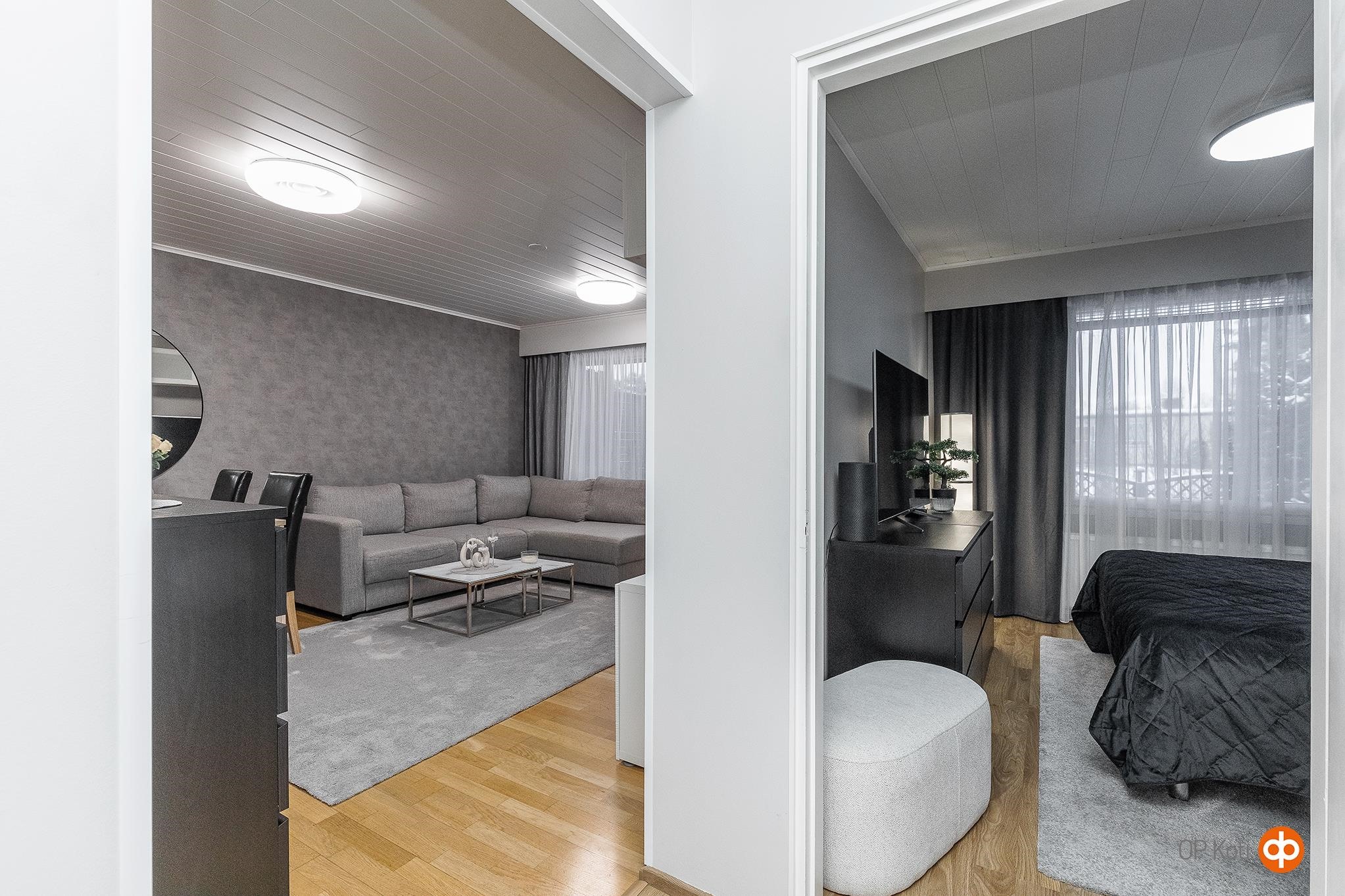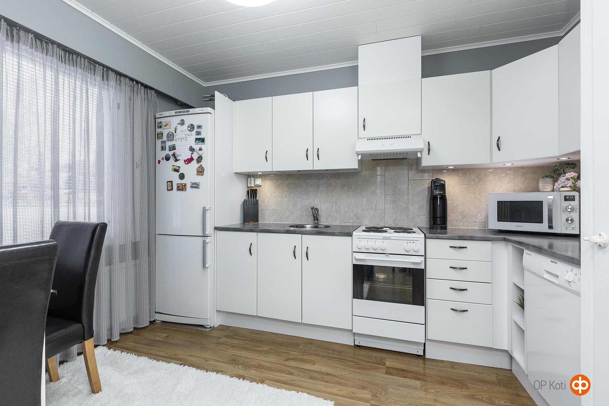 Tämä päätyasunto tarjoaa toimivan pohjaratkaisun ja hyvät puitteet arkeen rauhallisella pientaloalueella. Kodin tilat on saneerattu kokonaisuudessaan, joten asumaan pääsee ilman remonttihuolia.