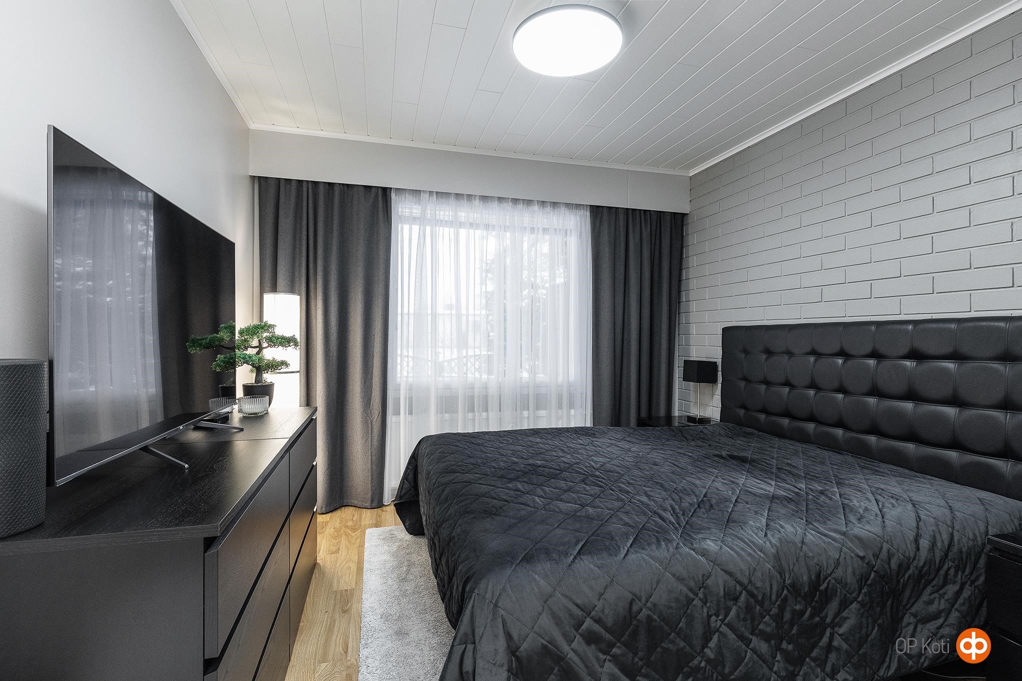 - Olohuone, toinen makuuhuone ja takapiha aamuauringon suuntaan. Toinen makuuhuone länteen