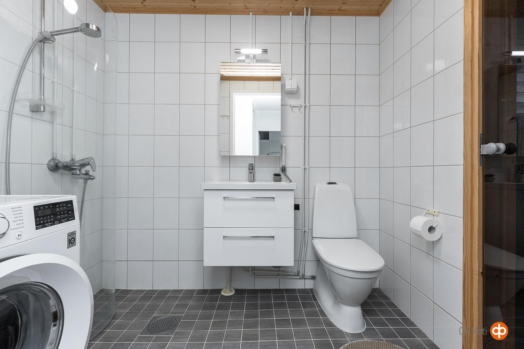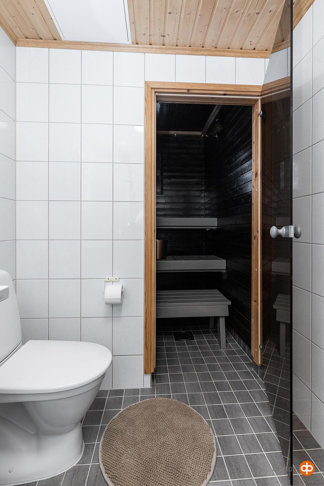 - Sauna, sähkökiuas, kylpyhuone, suihku, pesukoneliitäntä, lattialämmitys kylpyhuoneessa, sähköinen, kiinteät valaisimet.