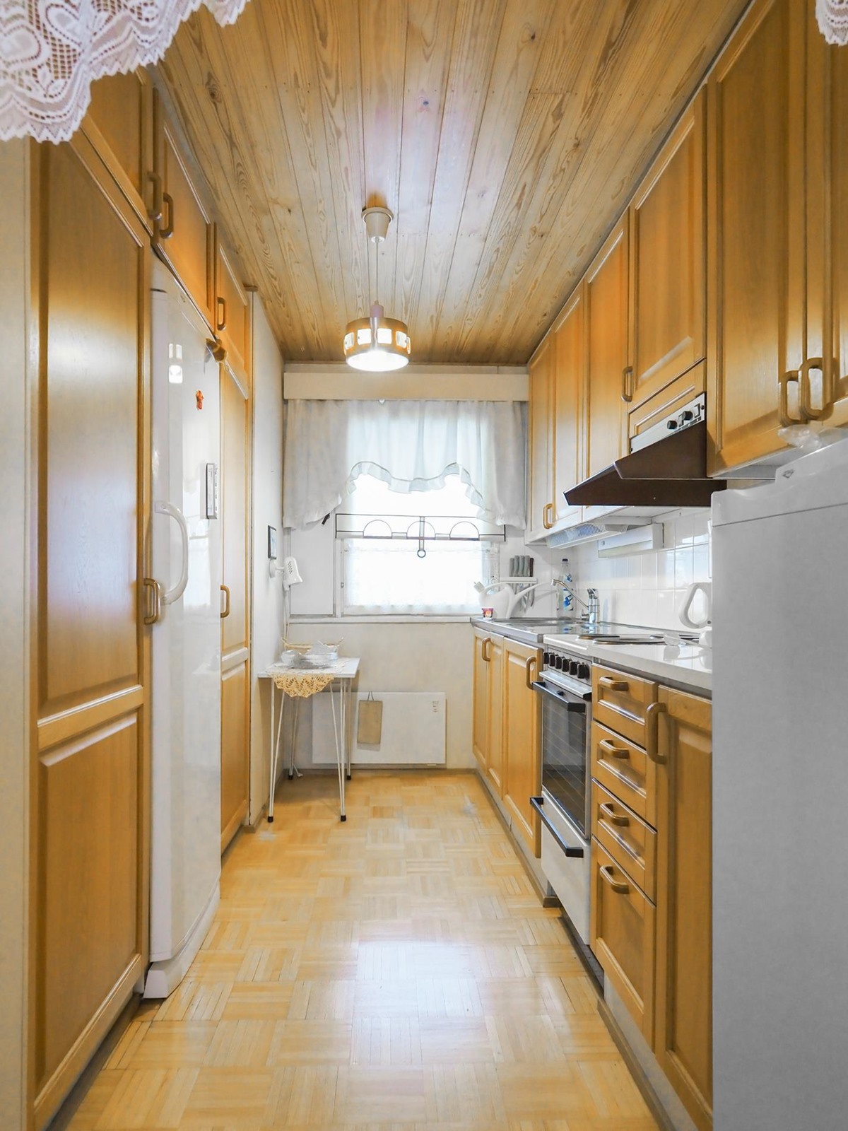- Jääkaappipakastin, sähköliesi, liesituuletin, kaapistot, kiinteät valaisimet.