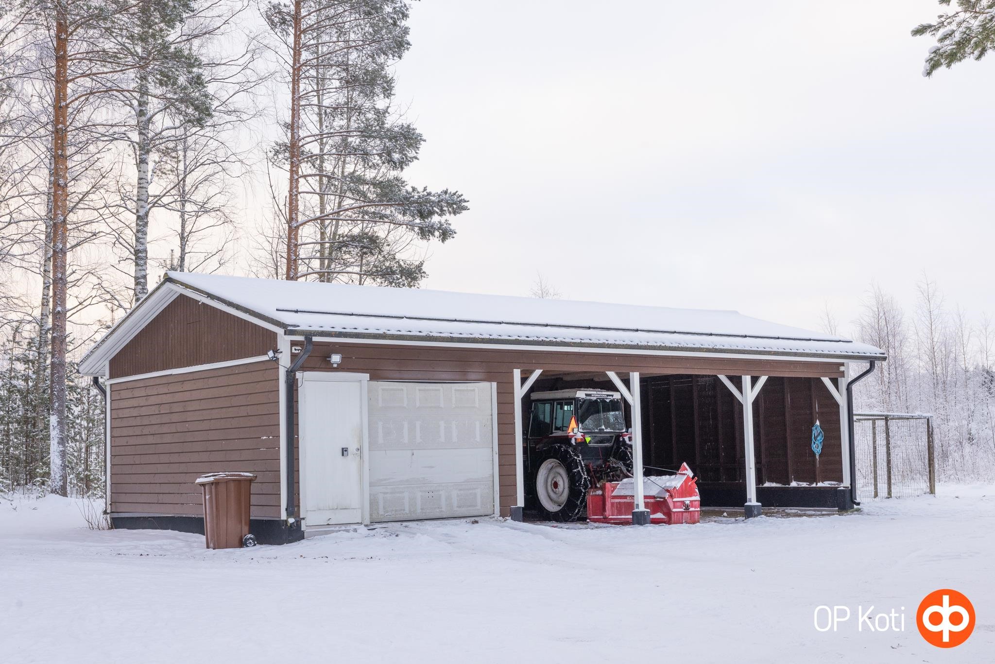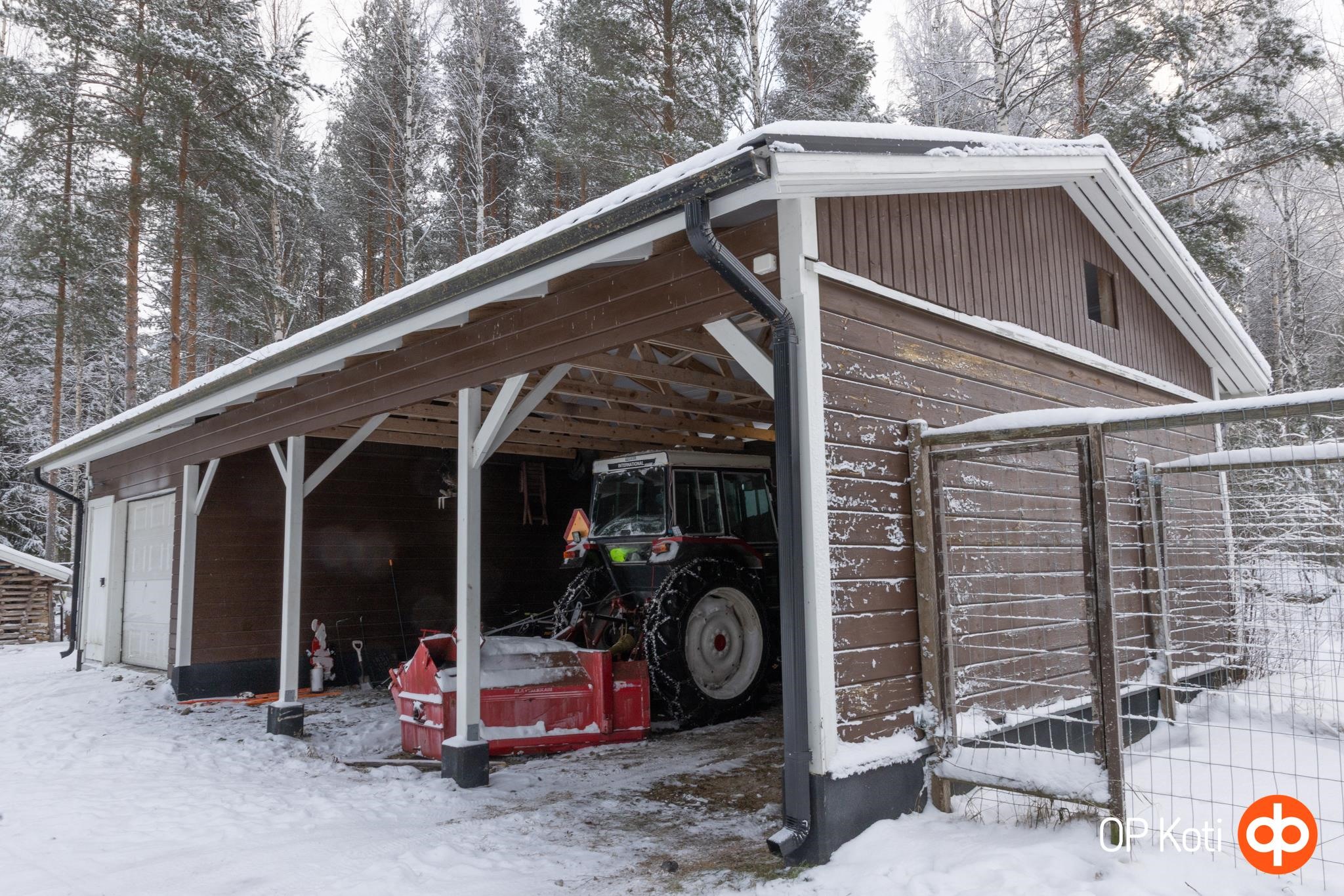 Pihapiiri on toimiva ja monipuolinen. Erillisessä ulkorakennuksessa autotalli, lisäksi kolmen auton katos tarjoavat runsaasti säilytys- ja pysäköintitilaa. Vehreä piha avautuu kauniiseen ja rauhalliseen maalaismaisemaan, jossa yksityisyys ja luonnonläheisyys ovat keskiössä.