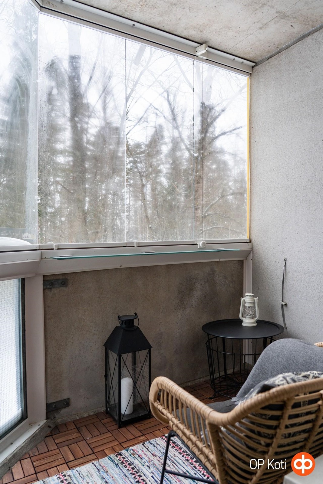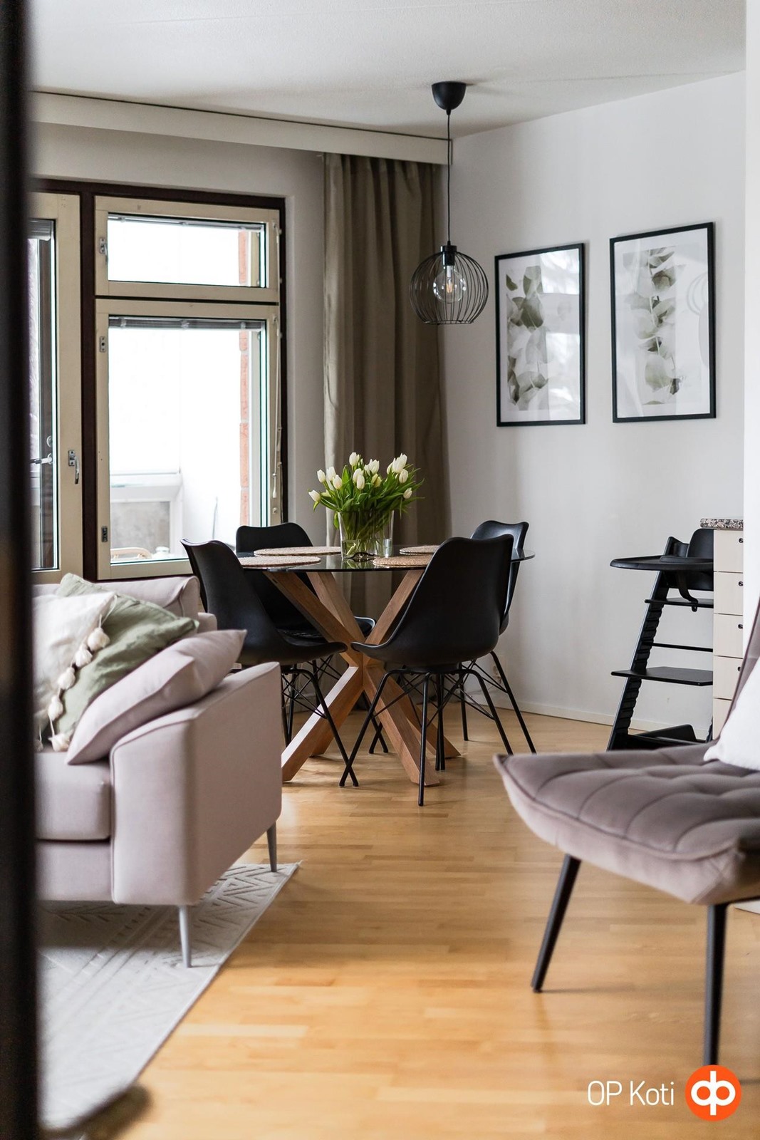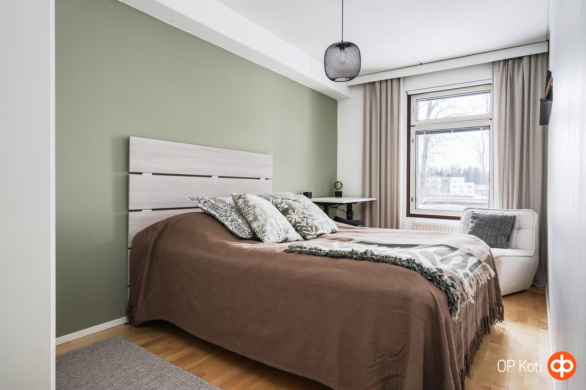 Valo kulkee kauniisti läpi asunnon lounaaseen avautuvien ikkunoiden kautta ja vaaleat pinnat korostavat huoneiston ilmavuutta. Olohuoneen tunnelma on erityisen miellyttävä; tila avautuu luontevasti lasitetulle parvekkeelle, joka toimii kodin lisähuoneena pitkälle syksyyn. Parveke ja sen rauhallinen näkymä puistoon tuovat kotiin välittömän levollisuuden tunteen - kuin oma pieni hengähdyspaikka arjen keskellä.
