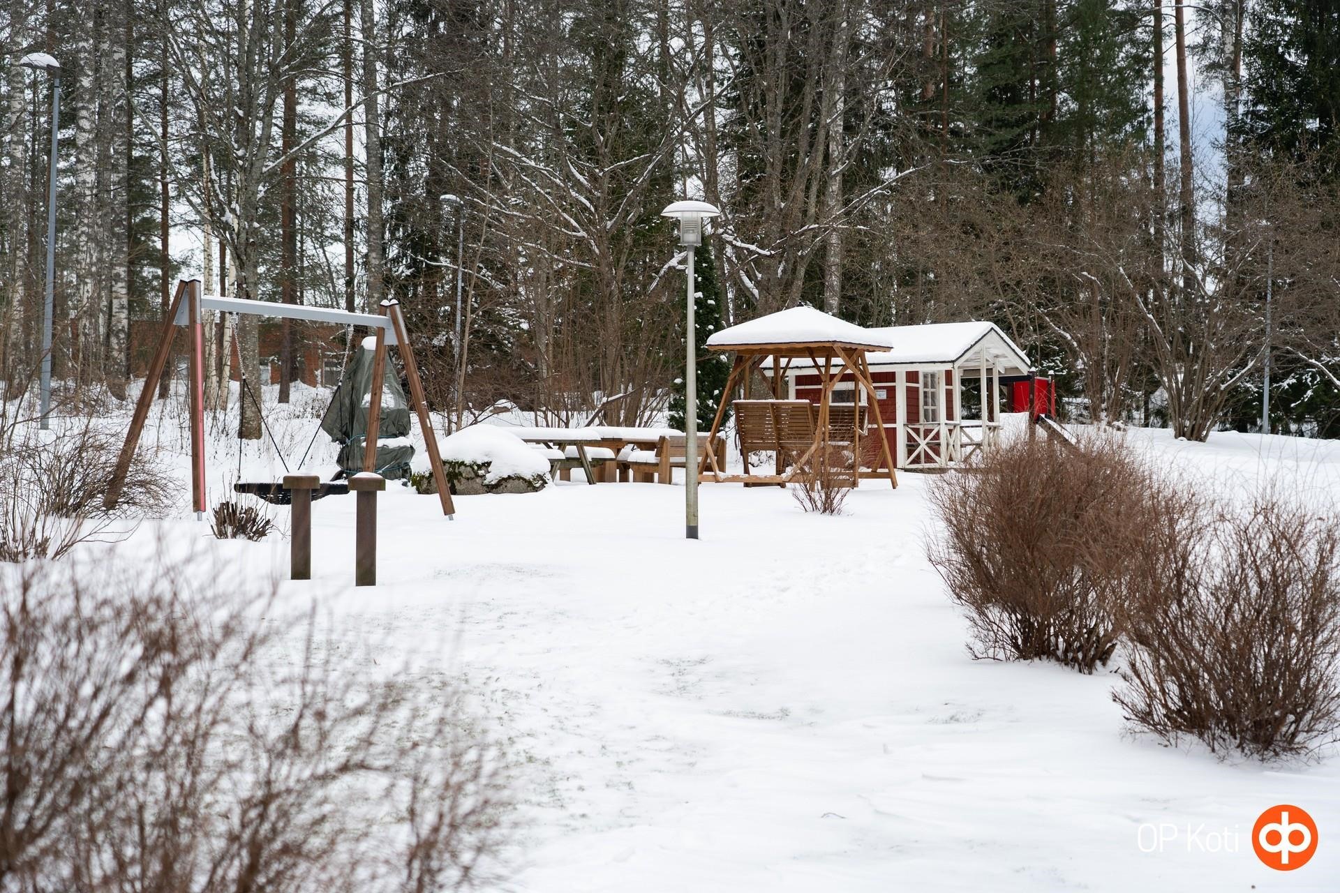 - Sauna, mankeli, jäähdytetty kellari, kellarikomerot, väestösuoja, kaapeli-TV, tietoliikenneyhteys, perusnopeus 10 Mb/s lisänopeudet DNA:lta, pyykin kuivauskaapit, ulkoiluvälinevarasto (3kpl)