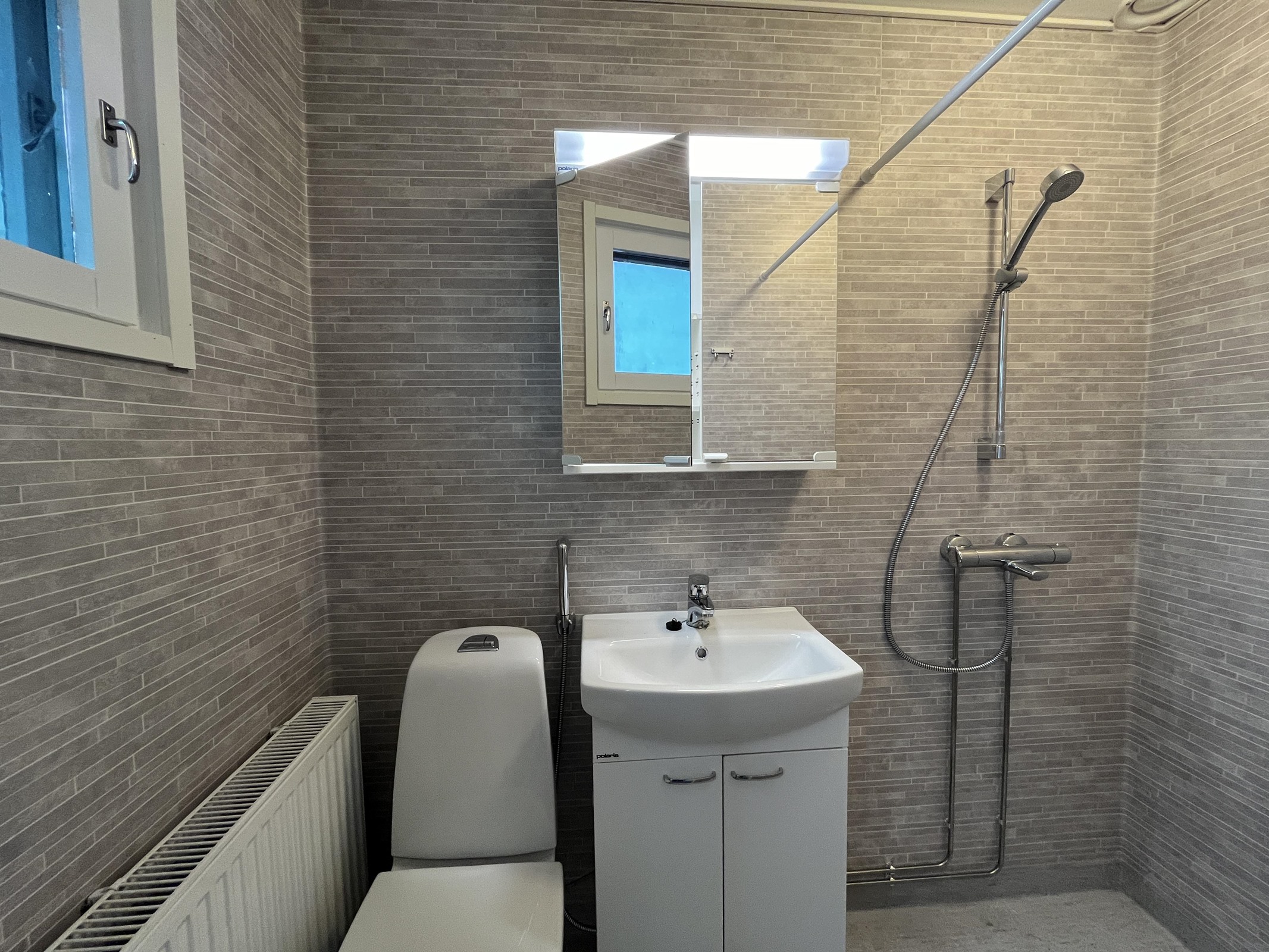- Kylpyhuone, suihku, peilikaappi, kiinteät valaisimet, taloyhtiön pesutupa sijaitsee A-talon alakerrassa.