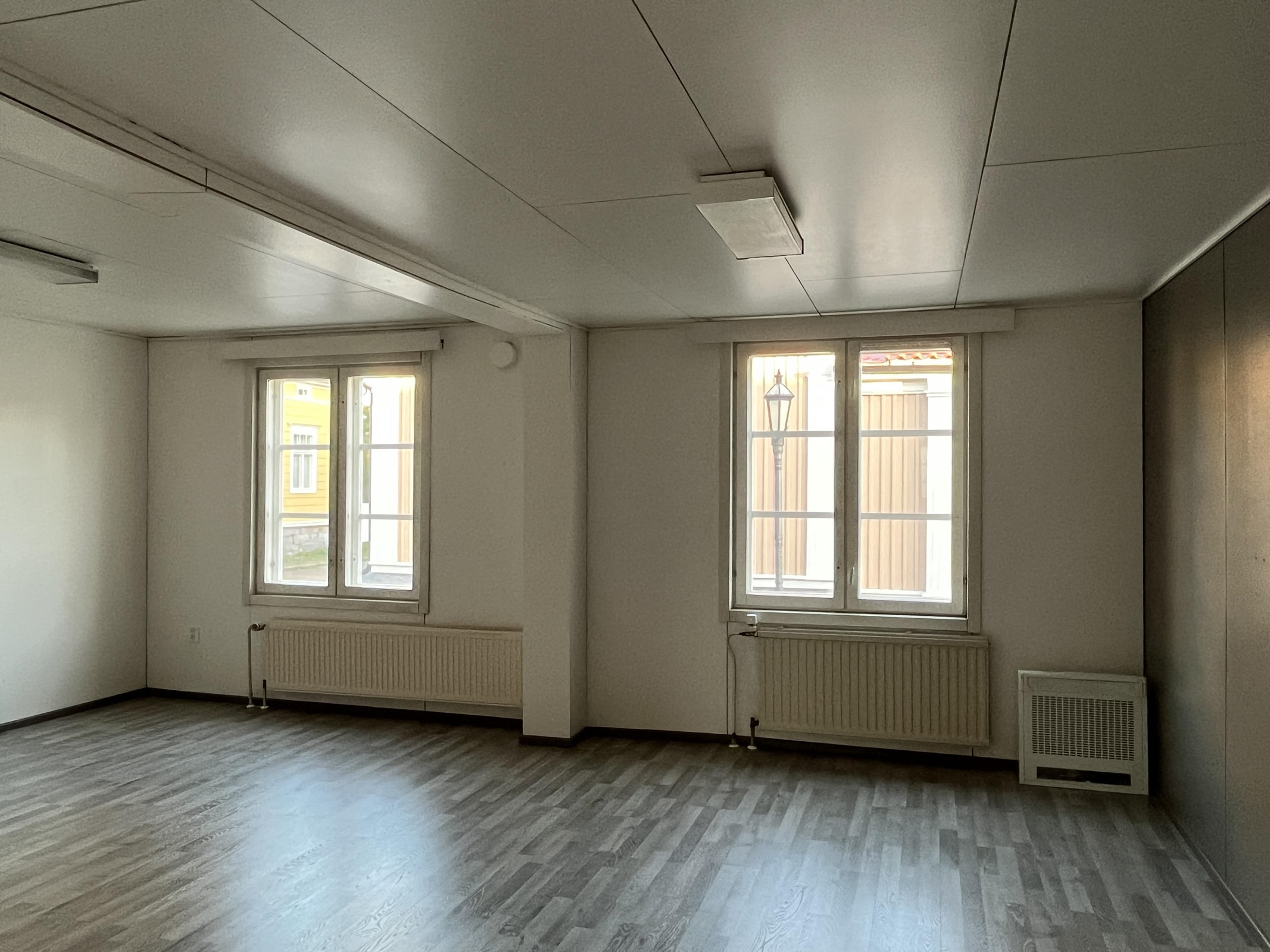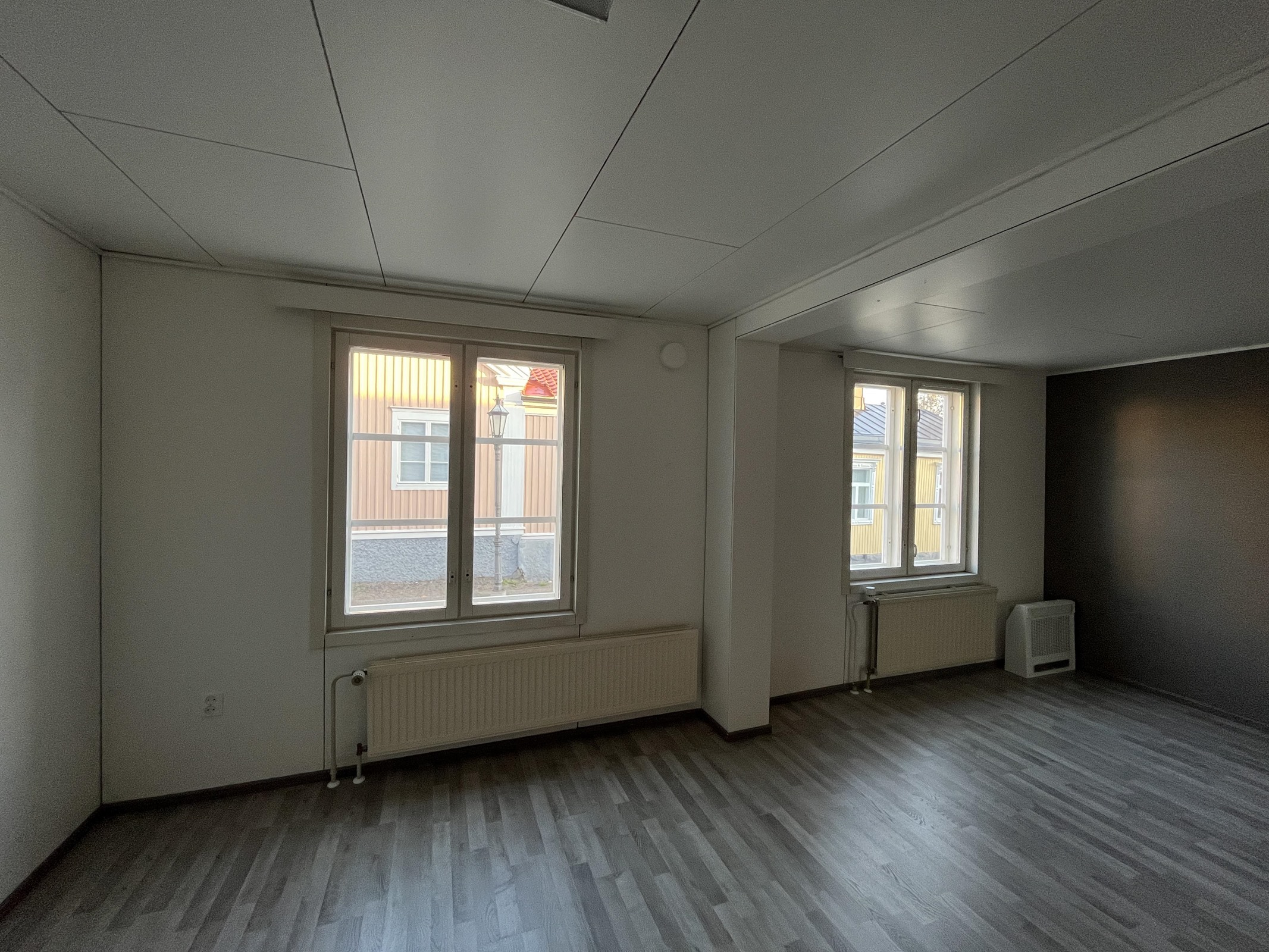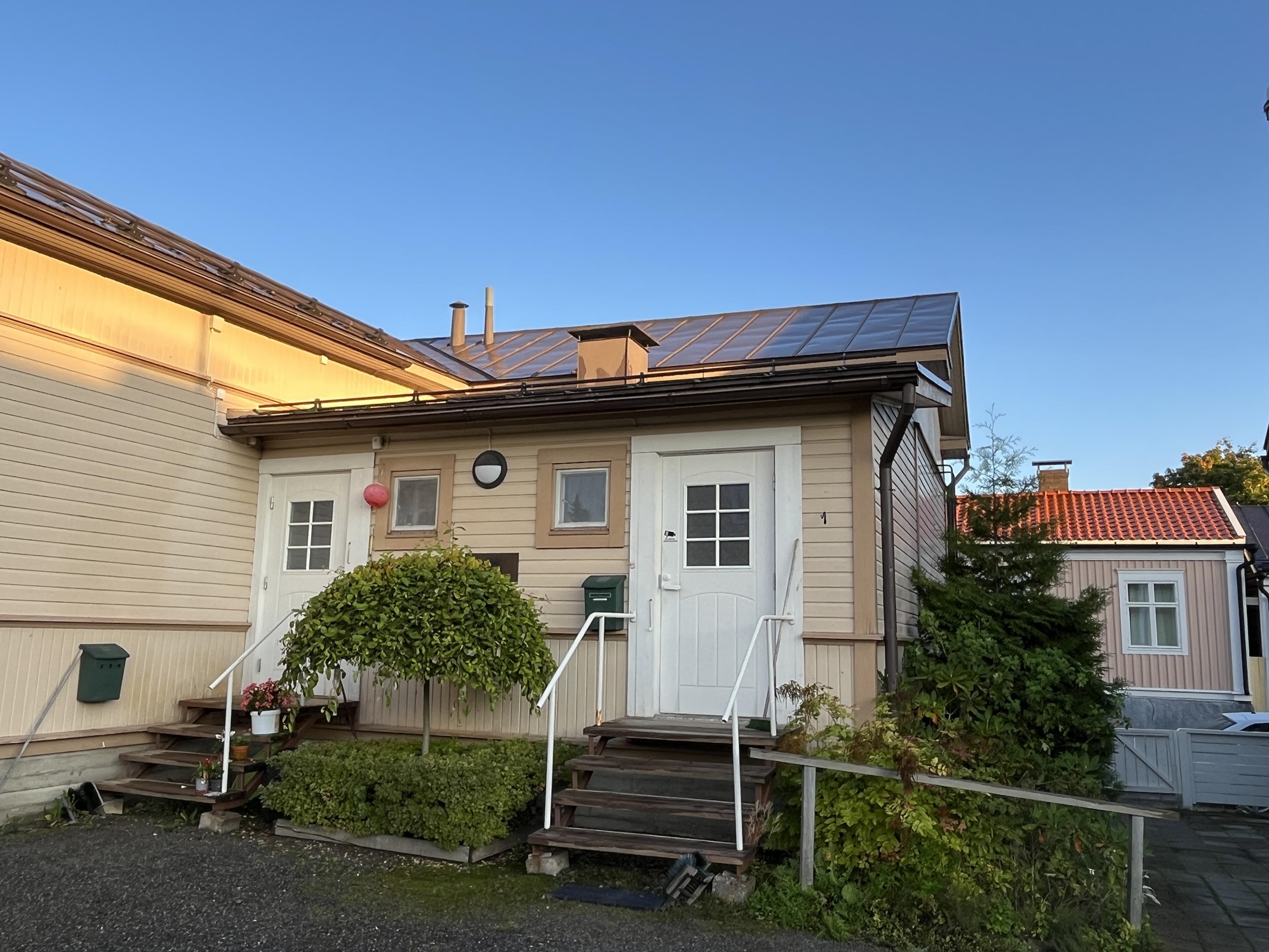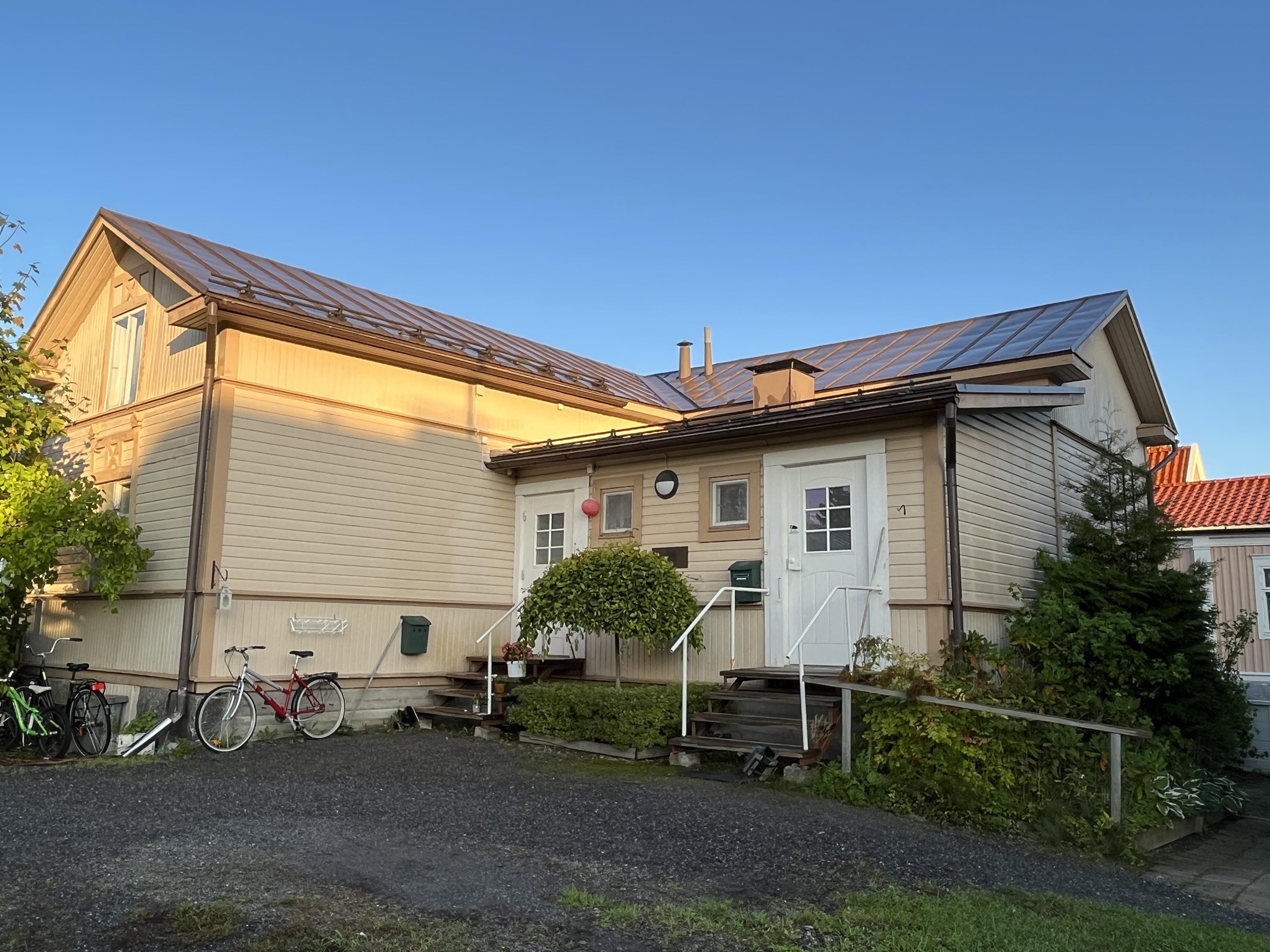 - puutalon toinen puoli, sisäänkäynti pihan puolelta ja ikkunat kadulle päin