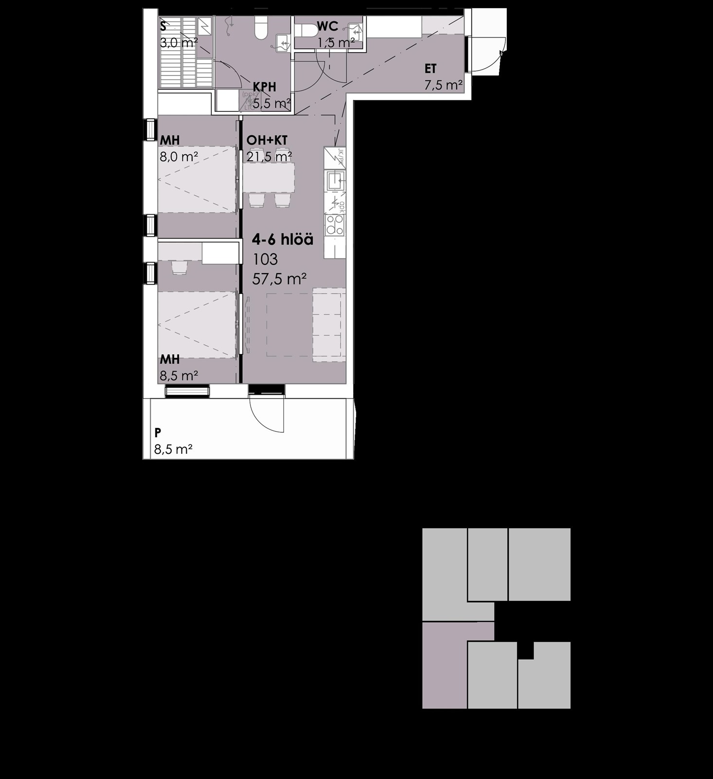 - Lattialämmitys vesi. Huoneistoissa on vesikiertoinen lattialämmitys, märkätiloissa lisäksi sähköinen mukavuuslattialämmitys.
