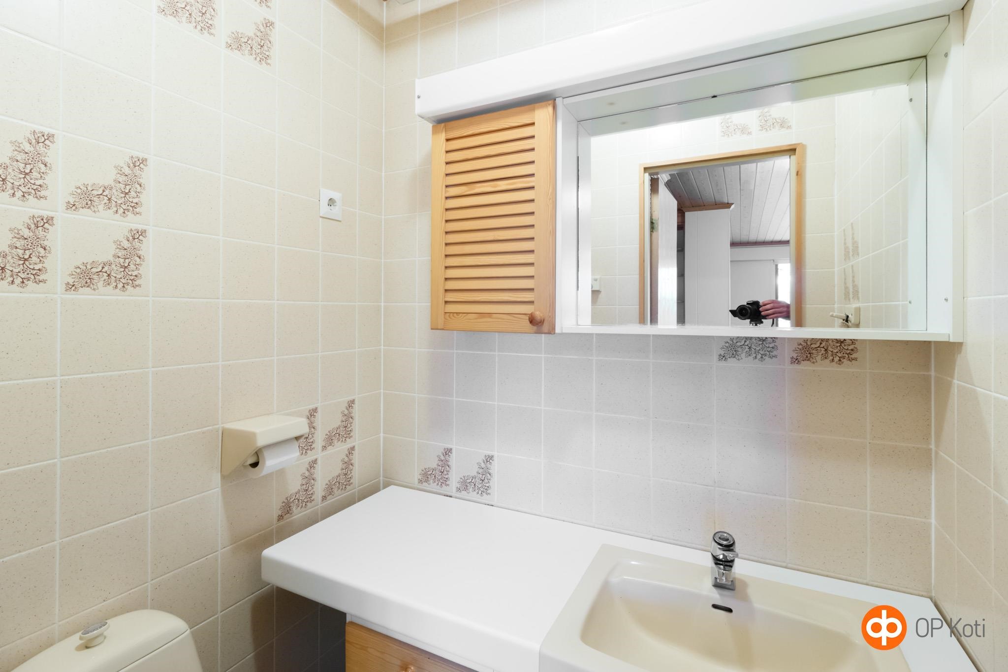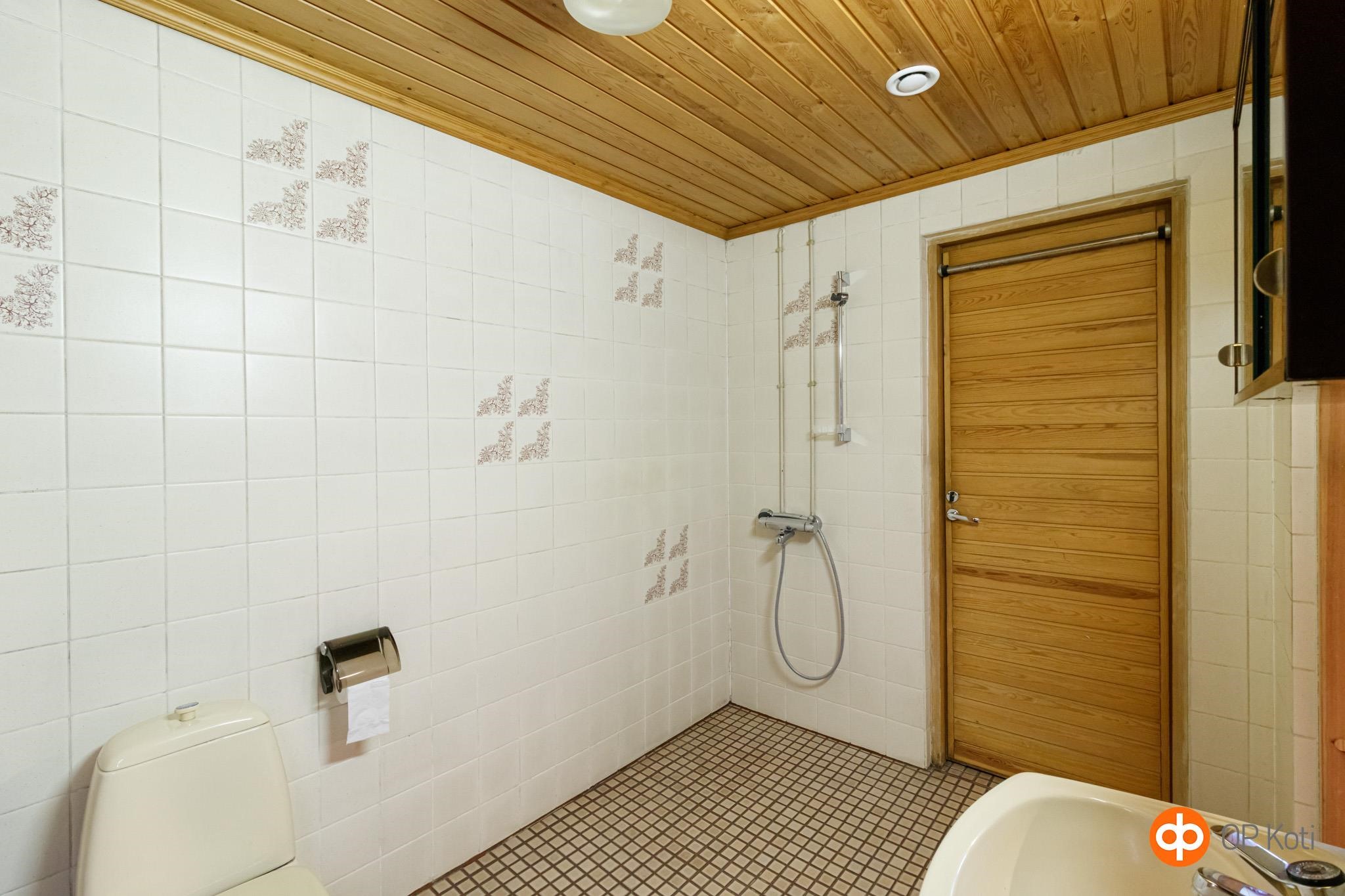 - Sauna, sähkökiuas, kylpyhuone, erillinen wc, suihku, peilikaappi, allaskaappi, pesukoneliitäntä, lattialämmitys, kiinteät valaisimet.