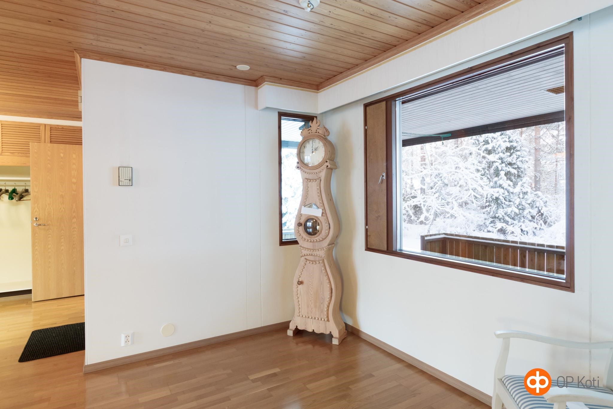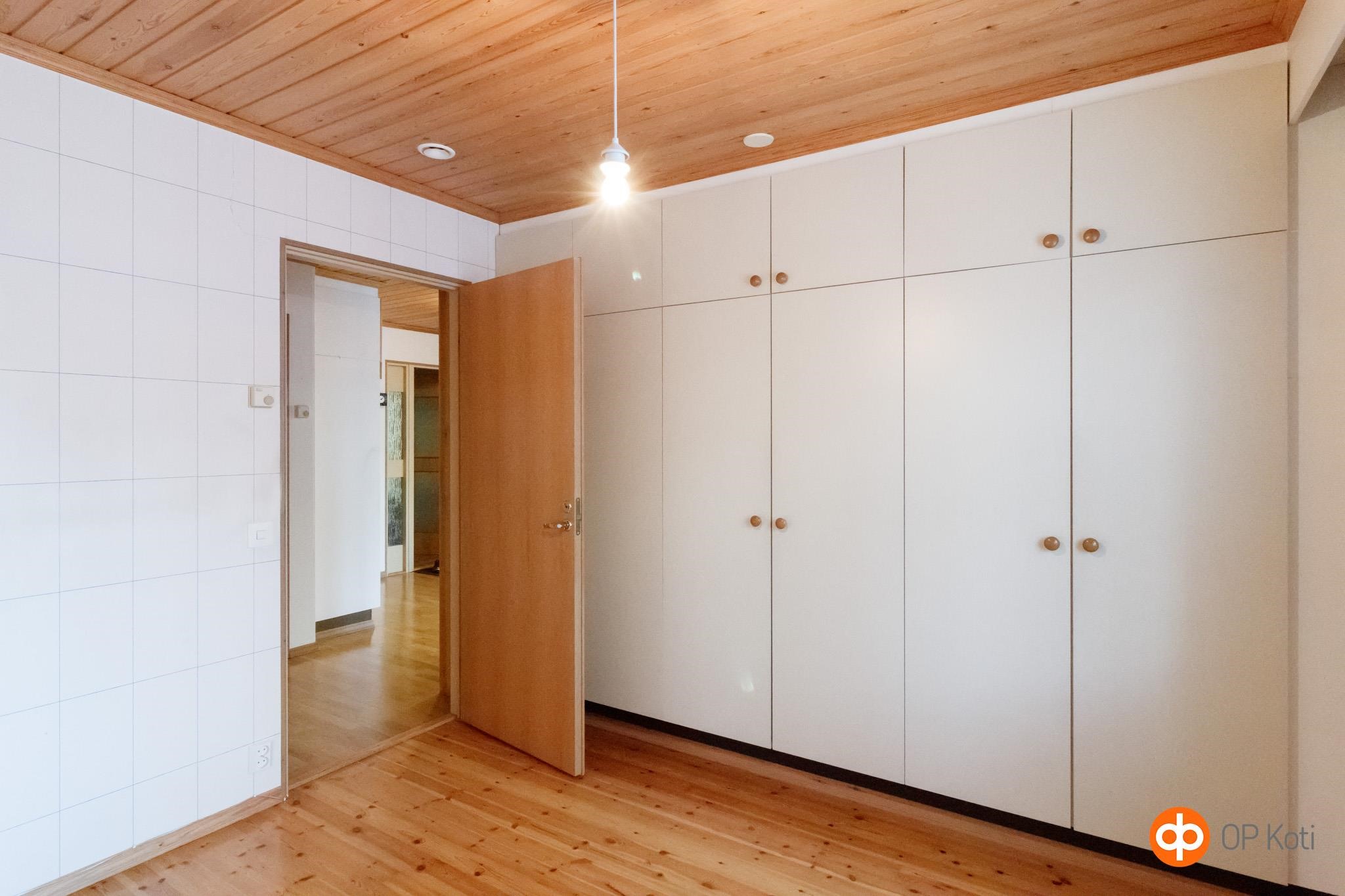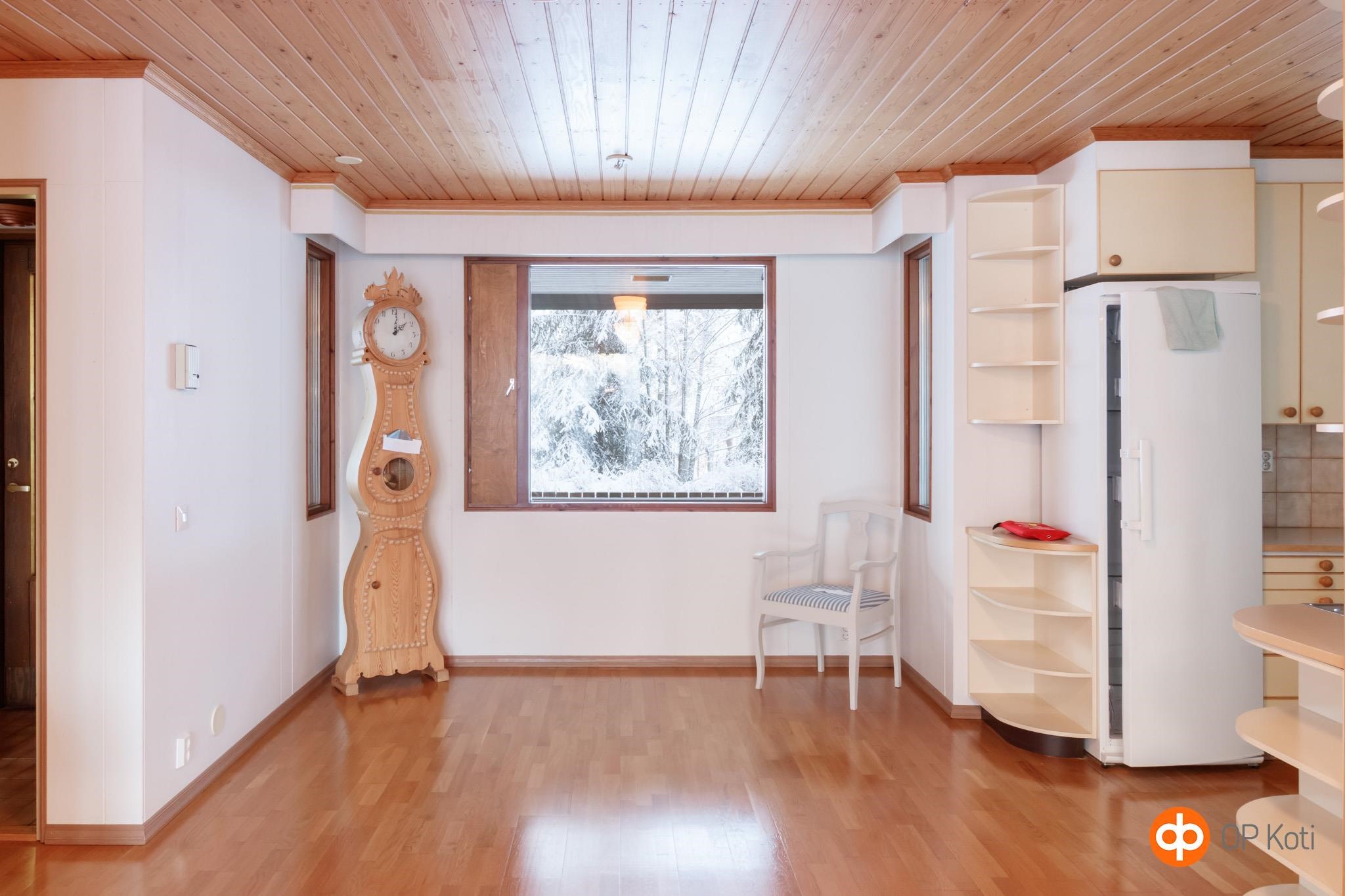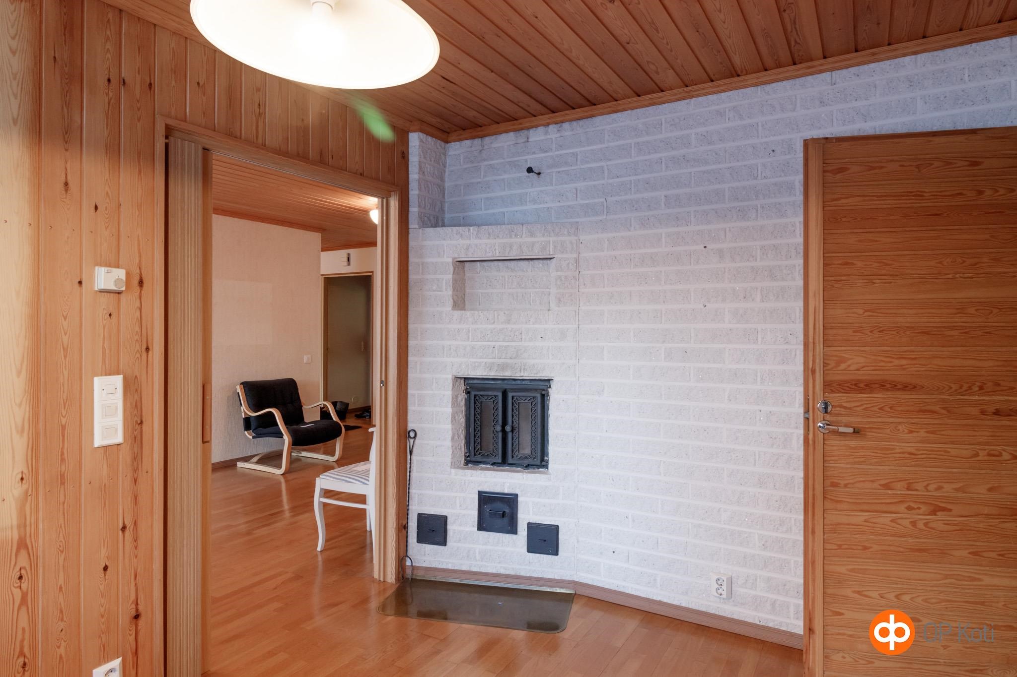 Keittiö: lattiassa parketti, seinät maalatut. Olohuone: lattiassa lakattu lauta, seinät tapetoidut / tiili. Makuuhuone 1: lattiassa lakattu lauta, seinät tapetoidut, komeroita. Makuuhuone 2: lattiassa parketti, seinät paneloidut, varaava takka. Makuuhuone 3: lattiassa lakattu lauta, seinät tapetoidut. Sauna: lattia laatoitettu, seinät paneloidut. Kylpyhuone: lattia ja seinät laatoitetut, wc-istuin. Wc: lattia ja seinät laatoitetut.