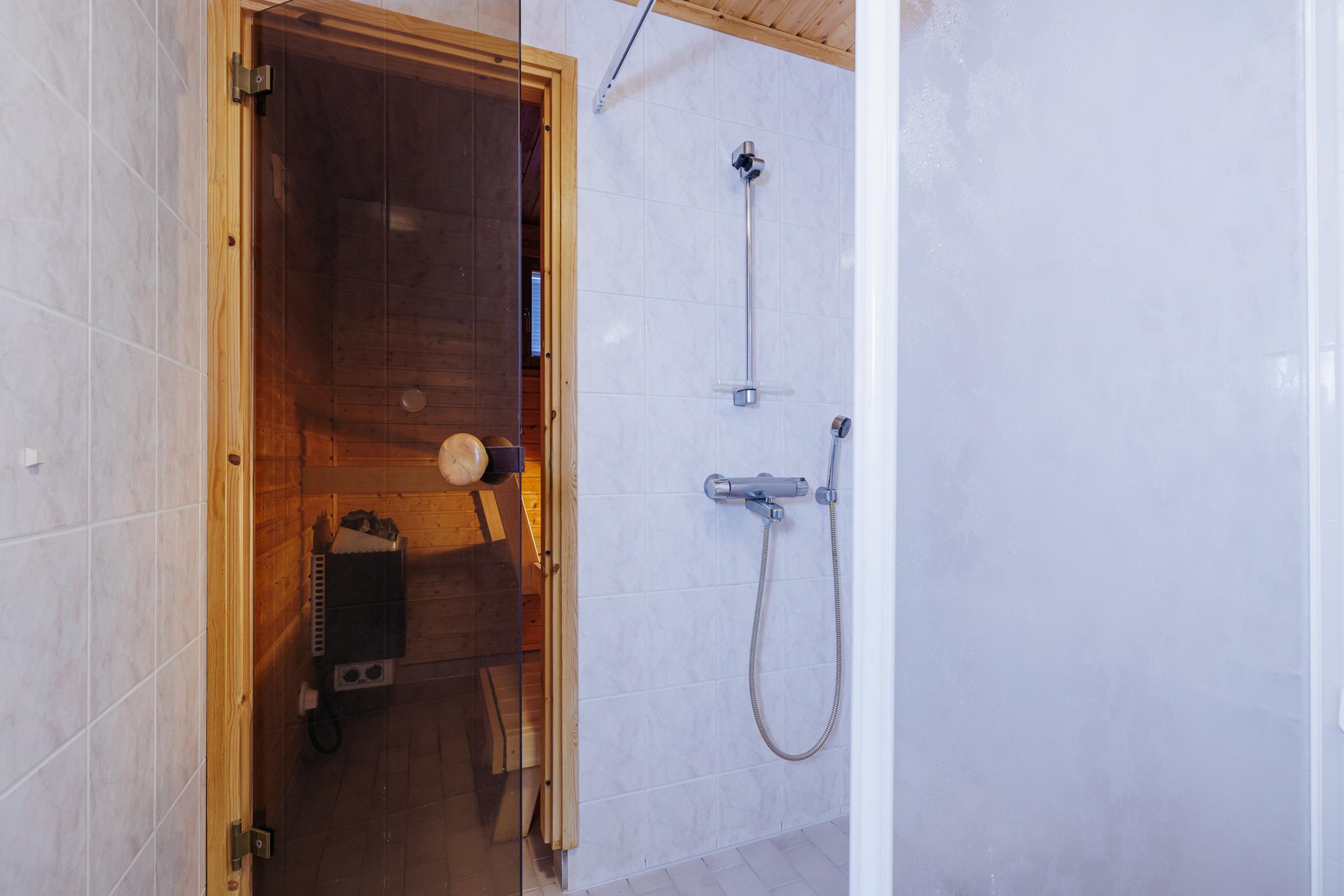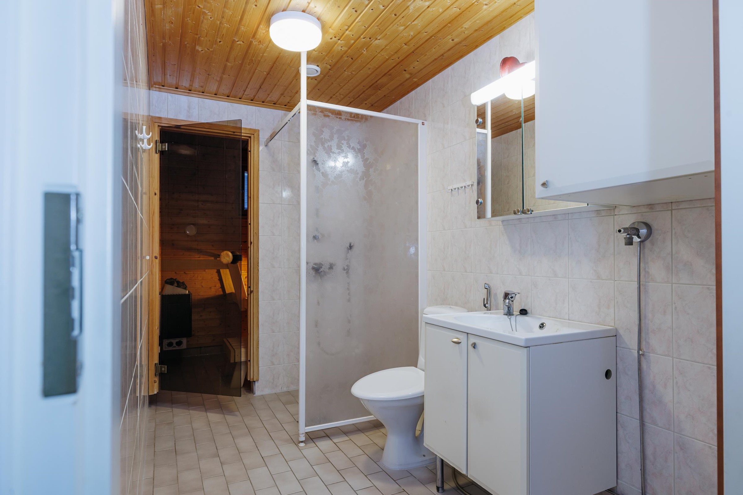 - Sauna, sähkökiuas, suihku, peilikaappi, kaapit, pesukoneliitäntä, kiinteät valaisimet.