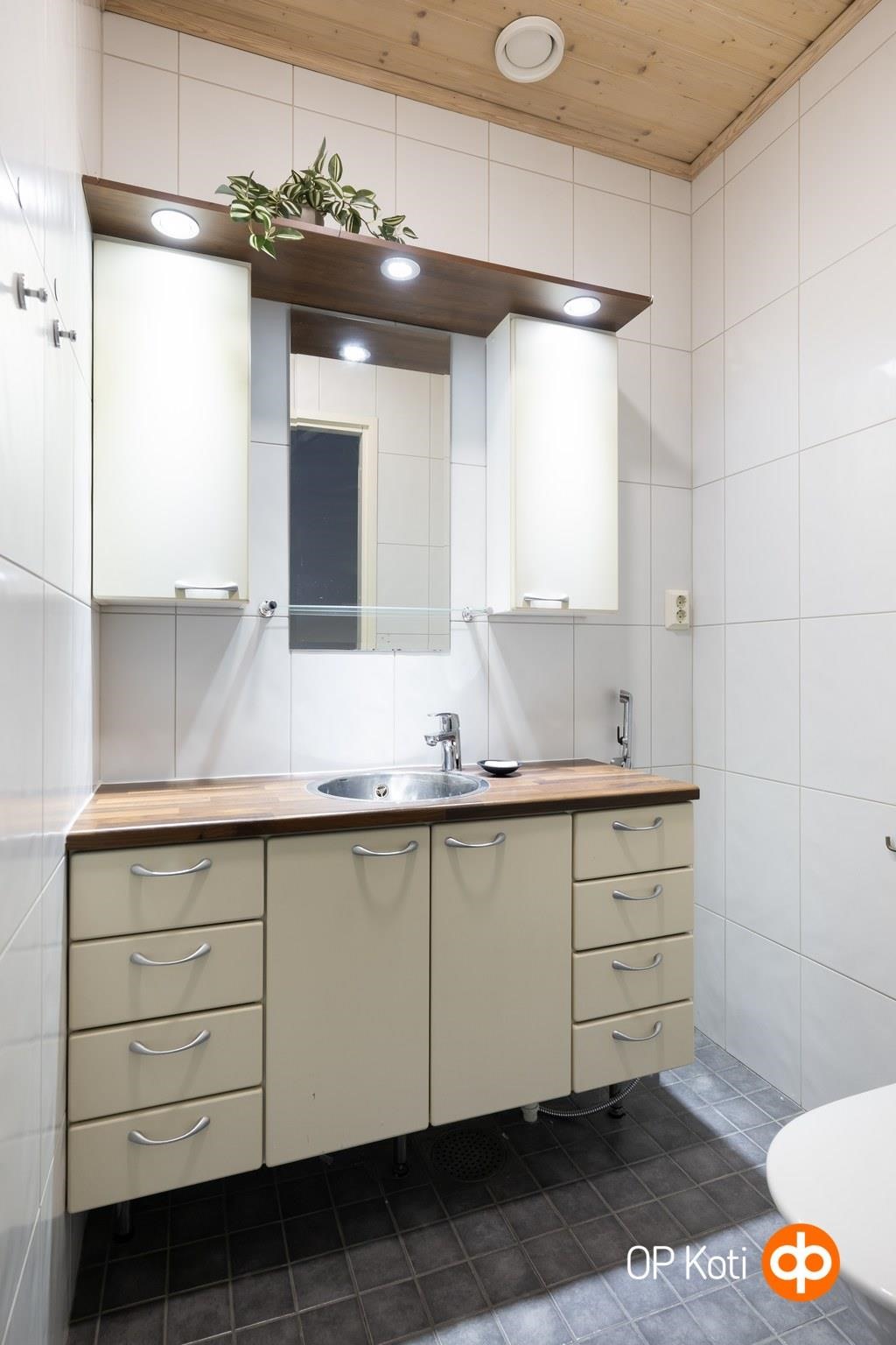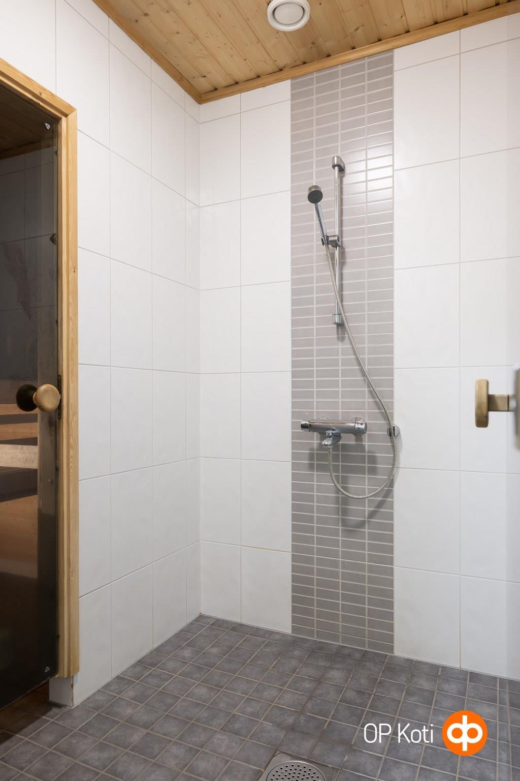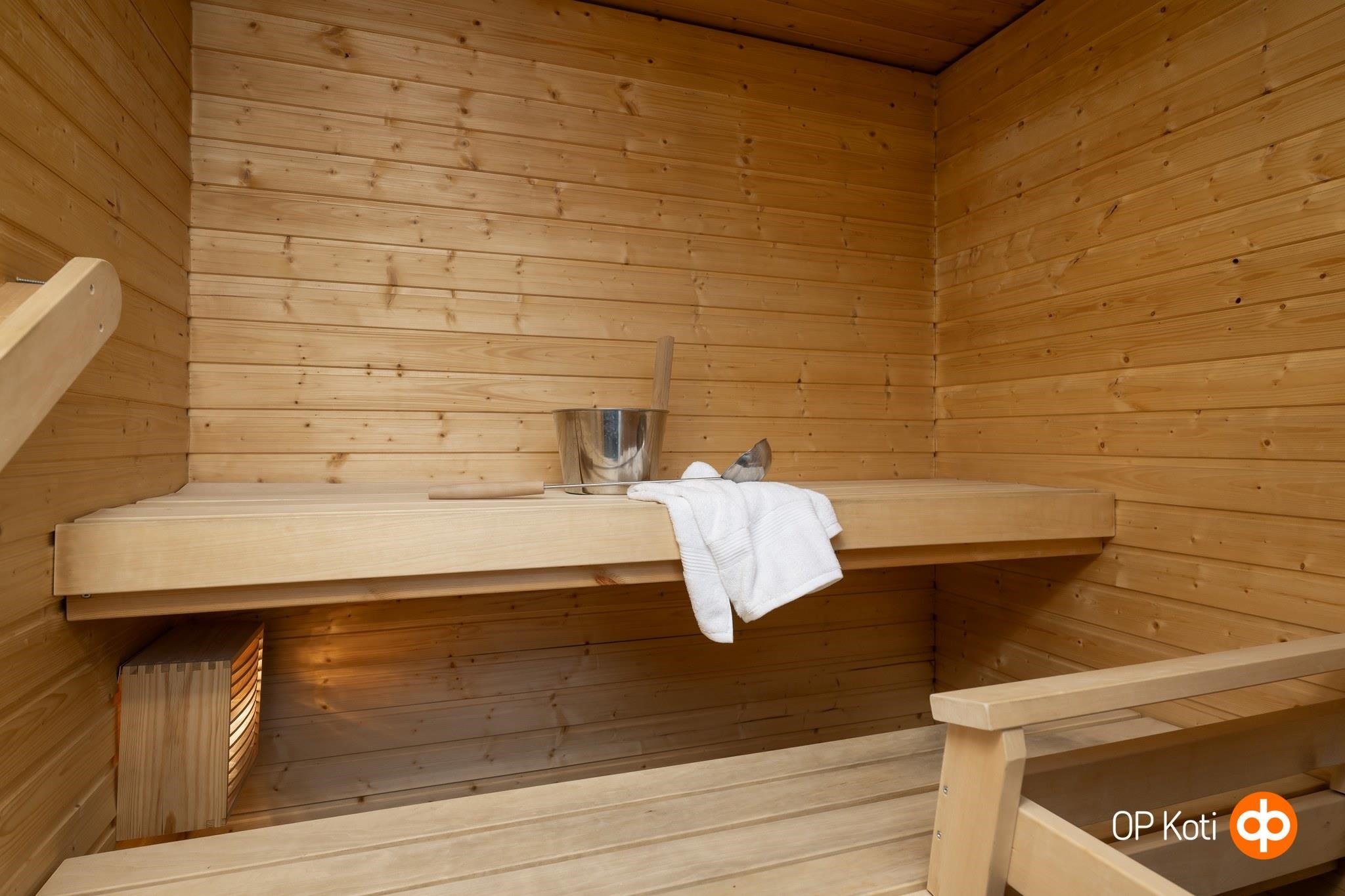 - Sauna, sähkökiuas, kylpyhuone, erillinen wc, suihku, peilit wc, allaskaappi, pesukoneliitäntä khh, lattialämmitys, kiinteät valaisimet.