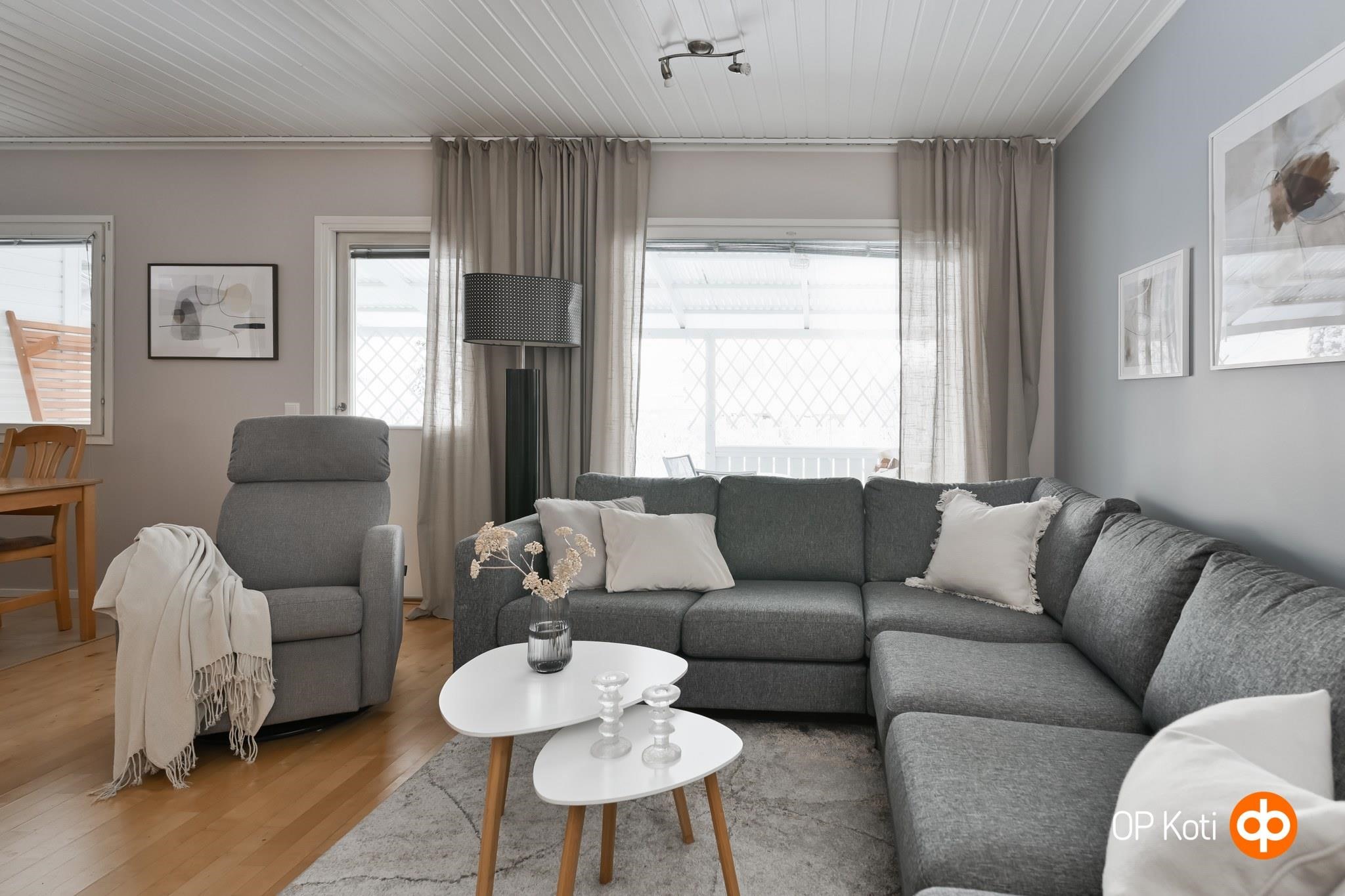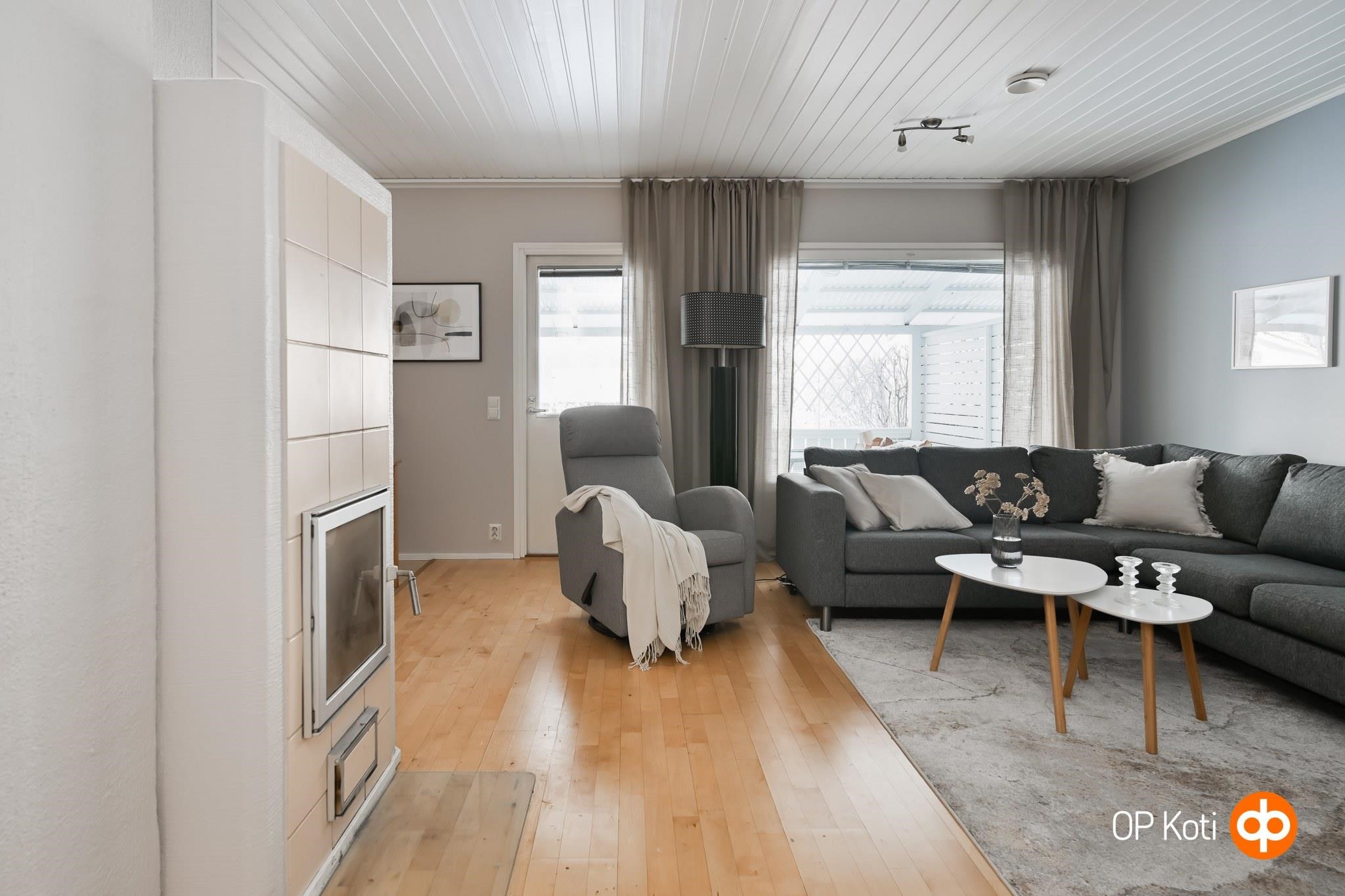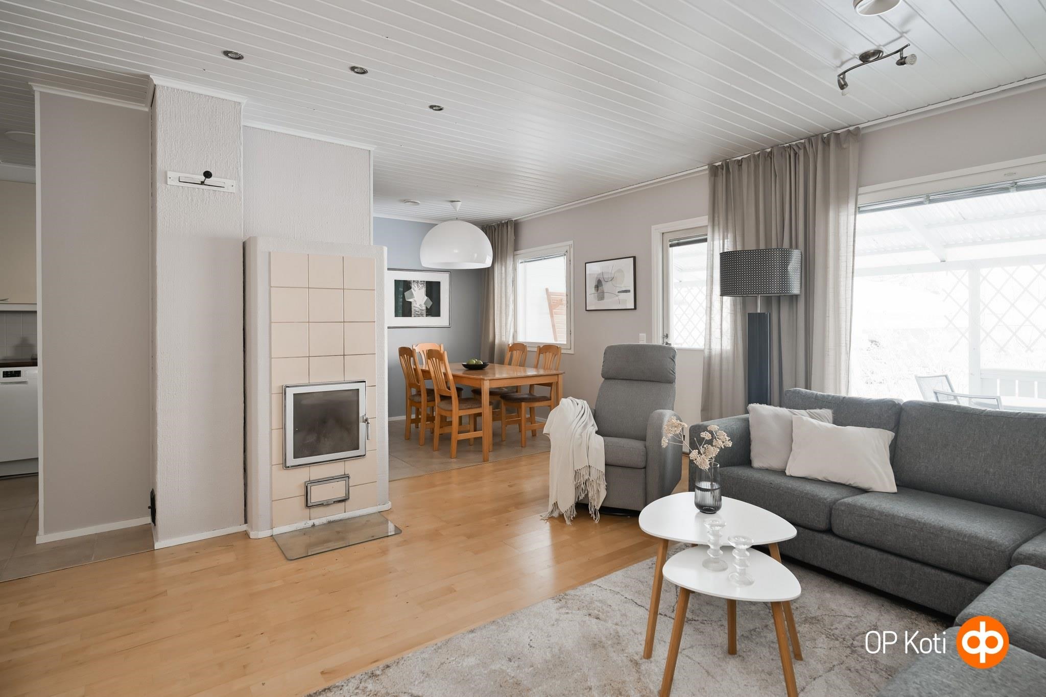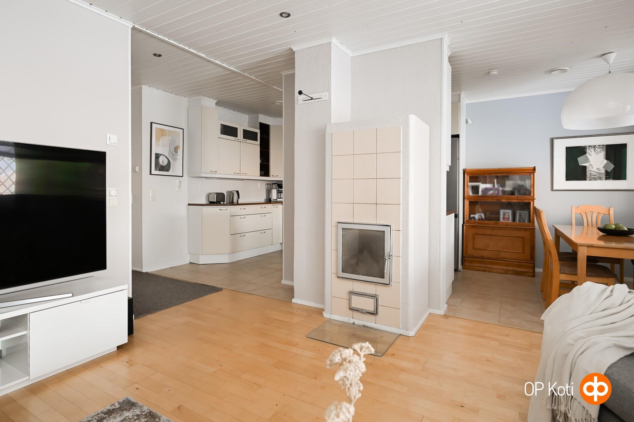 Asunnon pohjaratkaisu on toimiva. Kaksi makuuhuonetta sekä hyvät kodinhoito- ja pesutilat helpottavat arjen sujuvaa pyörittämistä. Tilavassa olohuoneen ja keittiön muodostamassa oleskelutilassa on mukava viettää aikaa yhdessä perheen ja ystävien kanssa. Tunnelmaa tilaan tuo varaava takka. Kodin olohuoneesta on käynti valokatetulle terassille. Terassilta aukeaa näkymät luoteen suuntaan. Ilmalämpöpumppu huolehtii ettei asunnon sisällä lämpötila kuitenkaan nouse liian korkeaksi. Asunnon hintaan sisältyy autokatospaikka auton hidaslataus pistokkeella. Koko huoneisto lämpiää lattialämmityksellä ja ilmanvaihto on hoidettu koneellisesti.