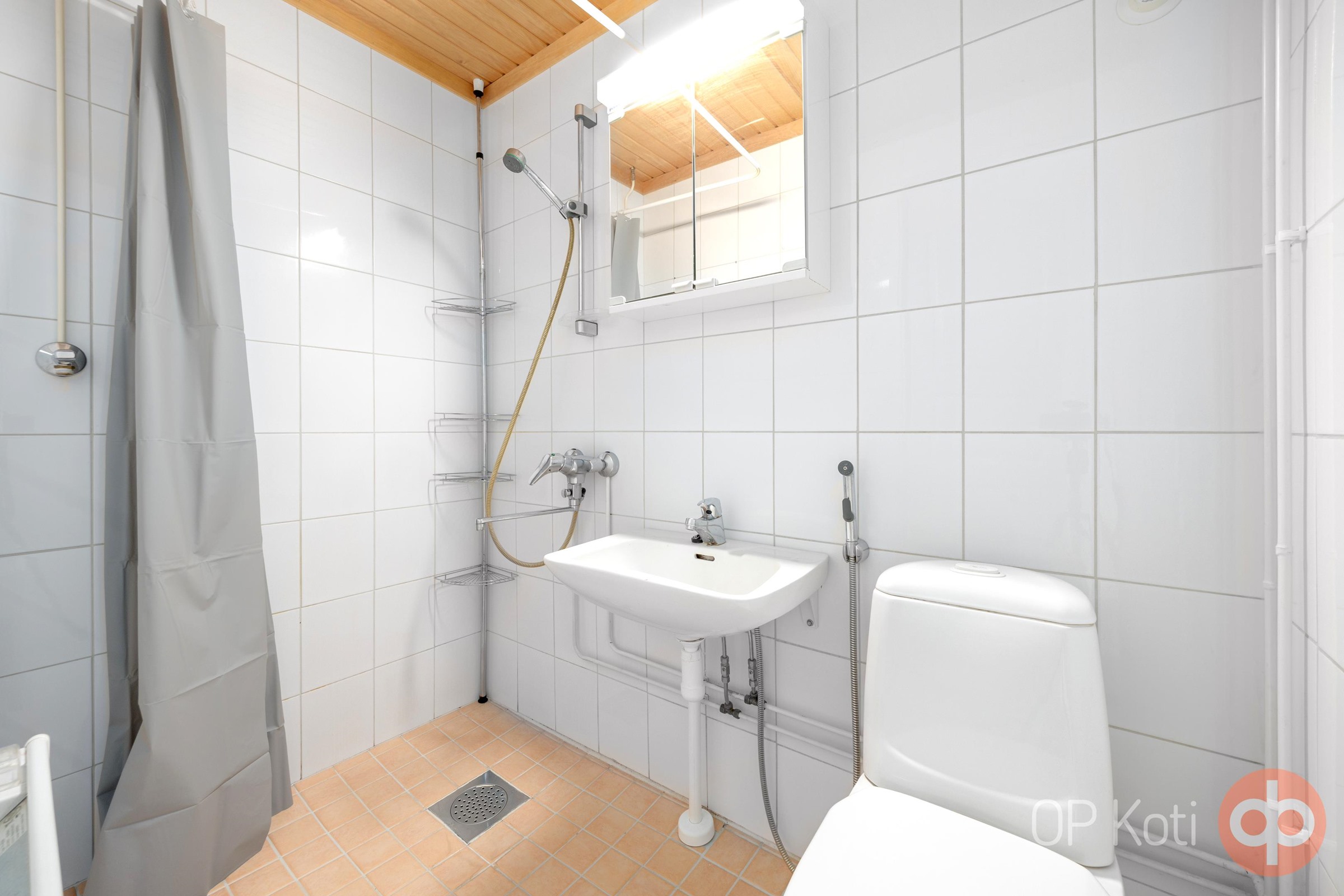 - Kylpyhuone, suihku, peilikaappi, pesukoneliitäntä, kiinteät valaisimet.