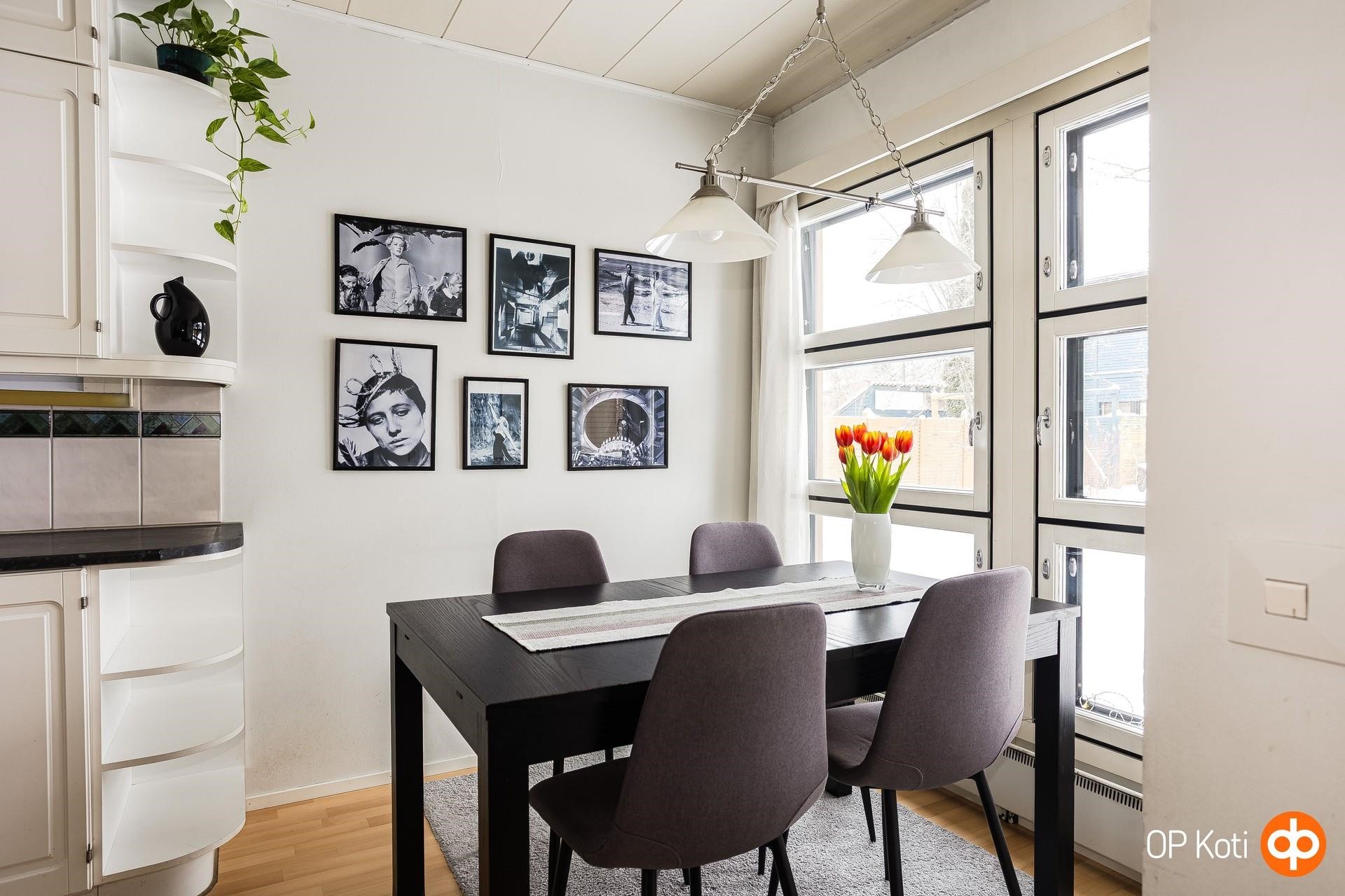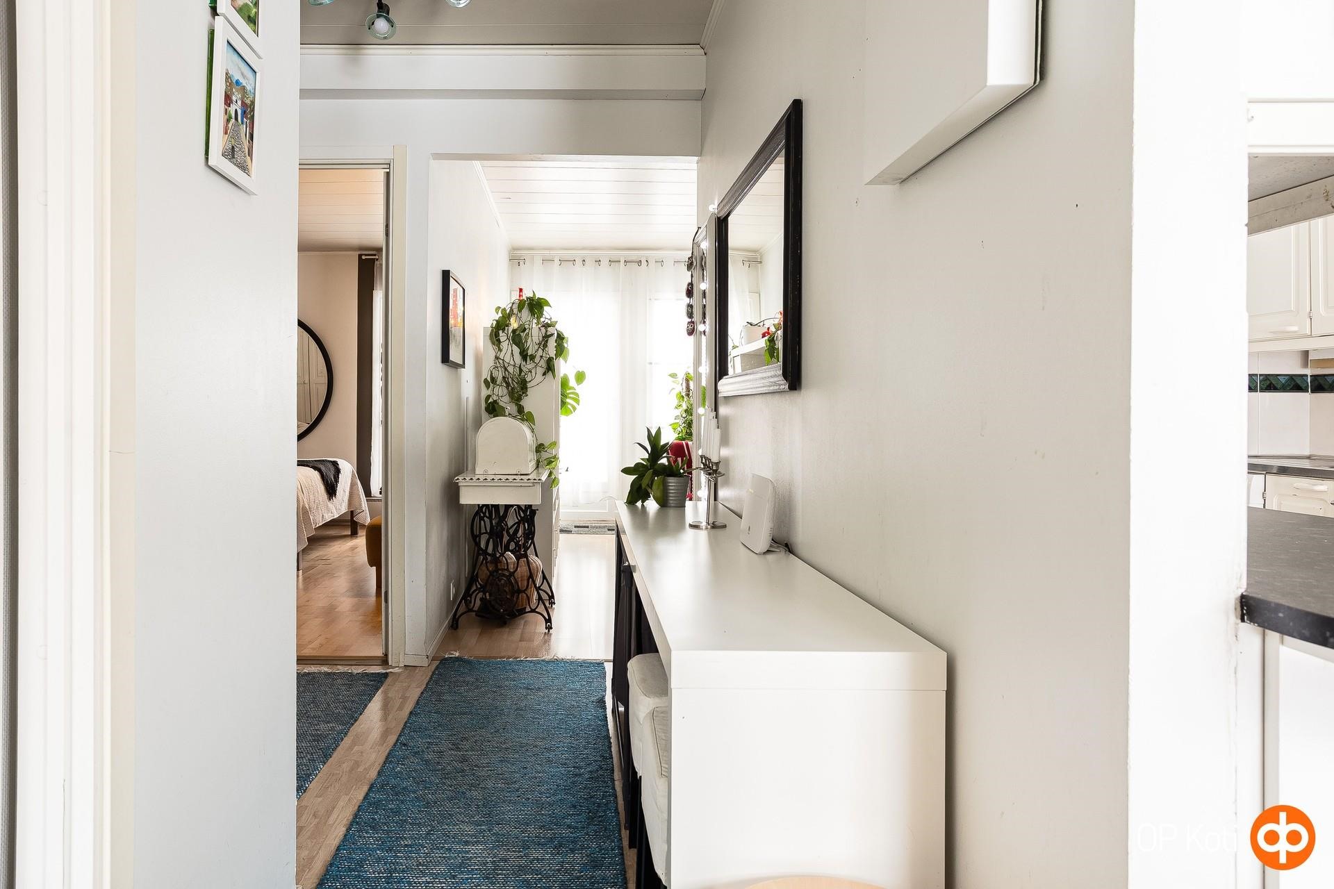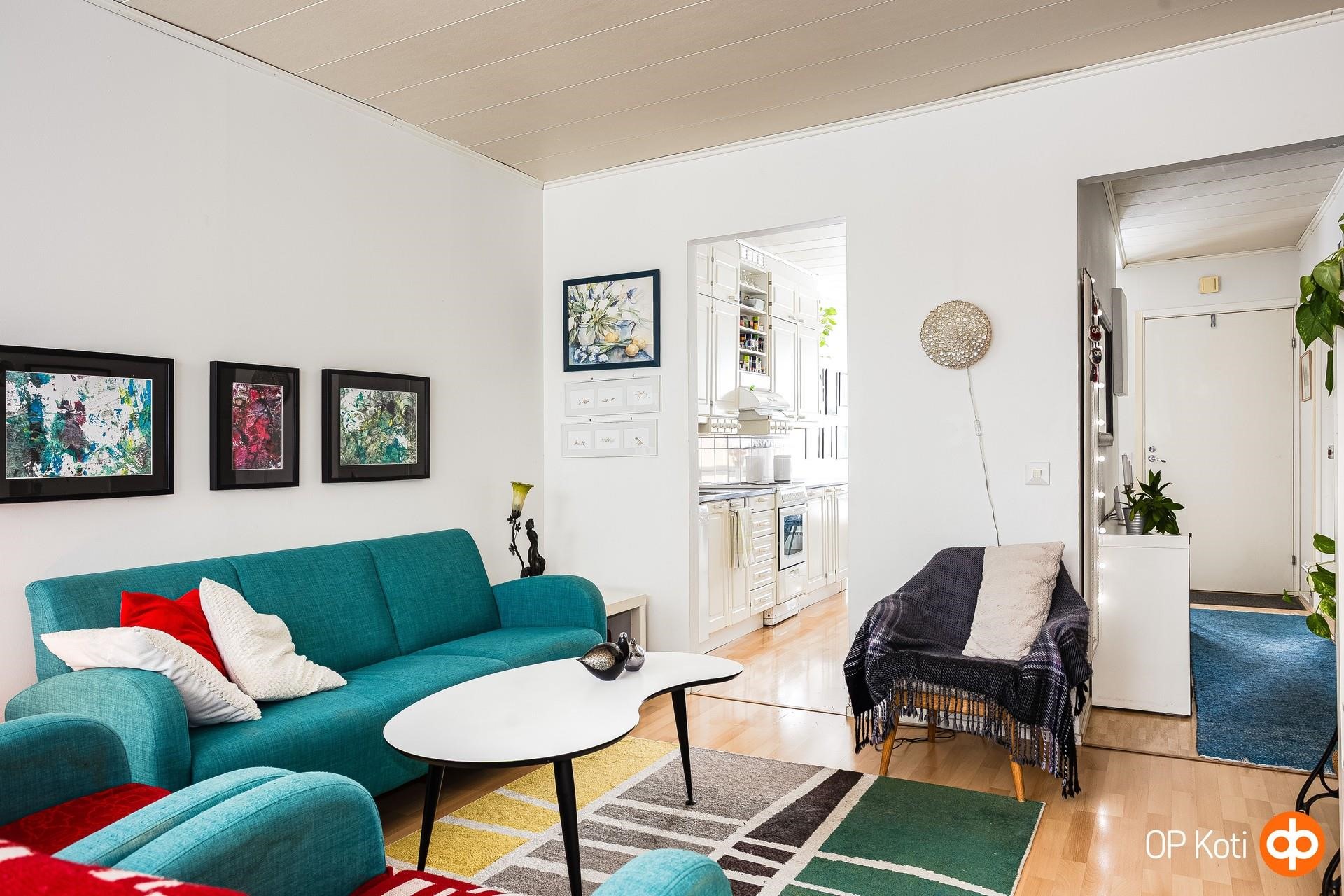 Tämä Tanhuniityssä sijaitseva kolmio tarjoaa siistin ja hyvin hoidetun kodin, jossa arki kulkee mutkattomasti. Pohjaratkaisu on selkeä ja toimiva, ja kodin tunnelma on lämmin ja kutsuva. Asunnon erityinen vahvuus on iso, aidattu noin 50 m² takapiha, joka rajoittuu puistoon. Se luo omaa rauhaa ja tarjoaa tilaa niin oleskeluun kuin pieniin puutarhaunelmiin. Pihan suojaisuus tekee siitä harvinaisen miellyttävän lisän kaupunkiasumiseen. Tanhuniitty on alue, joka vetää puoleensa luovia ja taiteilijaluonteisia asukkaita. Paikka, jossa on oma rytminsä ja yhteisöllinen, lämminhenkinen ilmapiiri. Alue ei ole pröystäilevä, mutta siinä on viehättävää arkista charmia ja kylämäistä tunnelmaa. Sijainti on käytännöllinen. Keskustaan kävelee helposti, liikenneyhteydet toimivat, ulkoilureitit ja luonto ovat lähellä ja palvelut löytyvät aivan vierestä. Tämä koti sopii sinulle, joka arvostat rauhallista ympäristöä, luonnon läheisyyttä ja mutkatonta asumista sekä pientä ripausta boheemia tunnelmaa. Varaa esittely ja tule katsomaan paikan päälle, tämä voi olla seuraava kotisi ! Leena Mähönen, Kiinteistönvälittäjä, YKV,LKV. Puh. 0400415107. Sp. leena.mahonen@op.fi Kiinteistönvälitystä yli 37 vuoden kokemuksella!