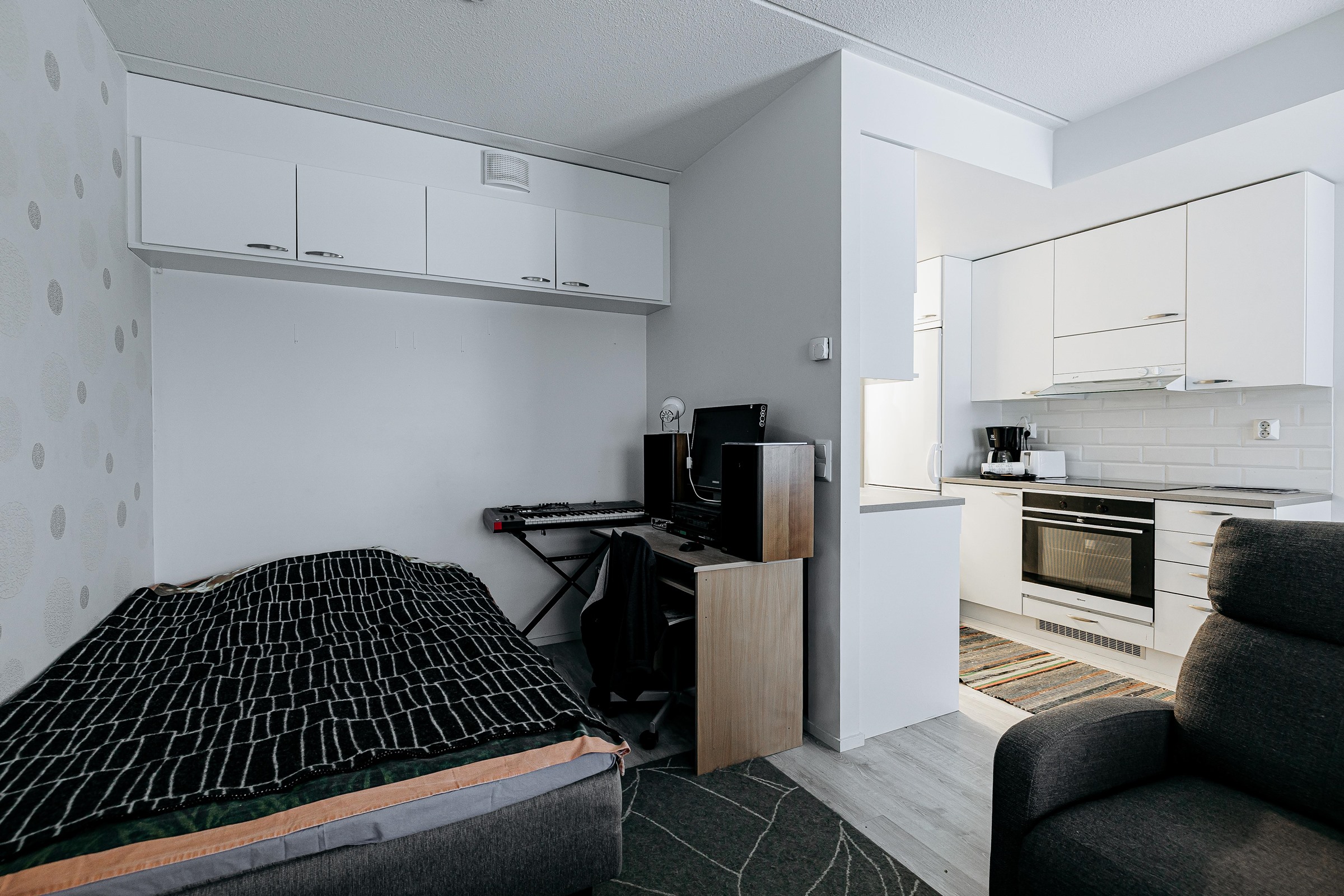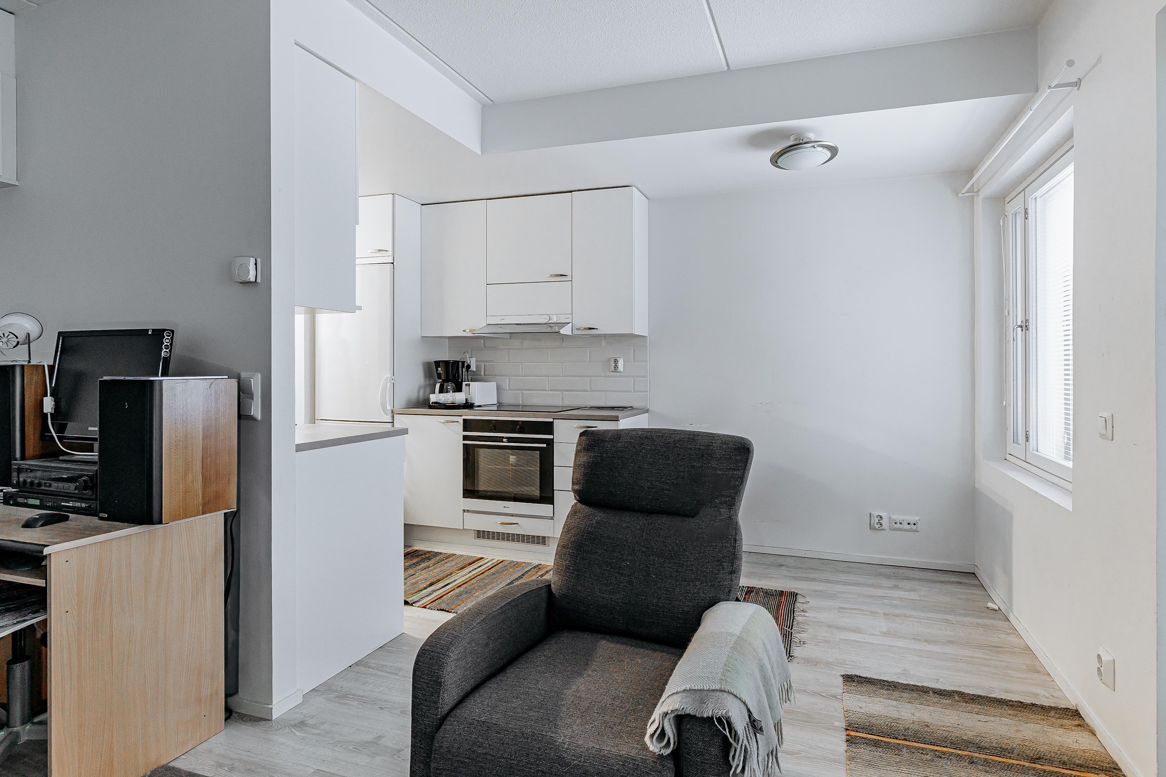 Erinomaisella sijainnilla siisti ja saunallinen ylimmän kerroksen yksiö. Asunnossa on fiksu ja käytännöllinen pohjaratkaisu, joka tekee arjesta toimivaa. Säilytystilaa on runsaasti, muun muassa erillisen vaatehuoneen ansiosta. Tilava lasitettu parveke toimii mainiona lisähuoneena pitkälle syksyyn.