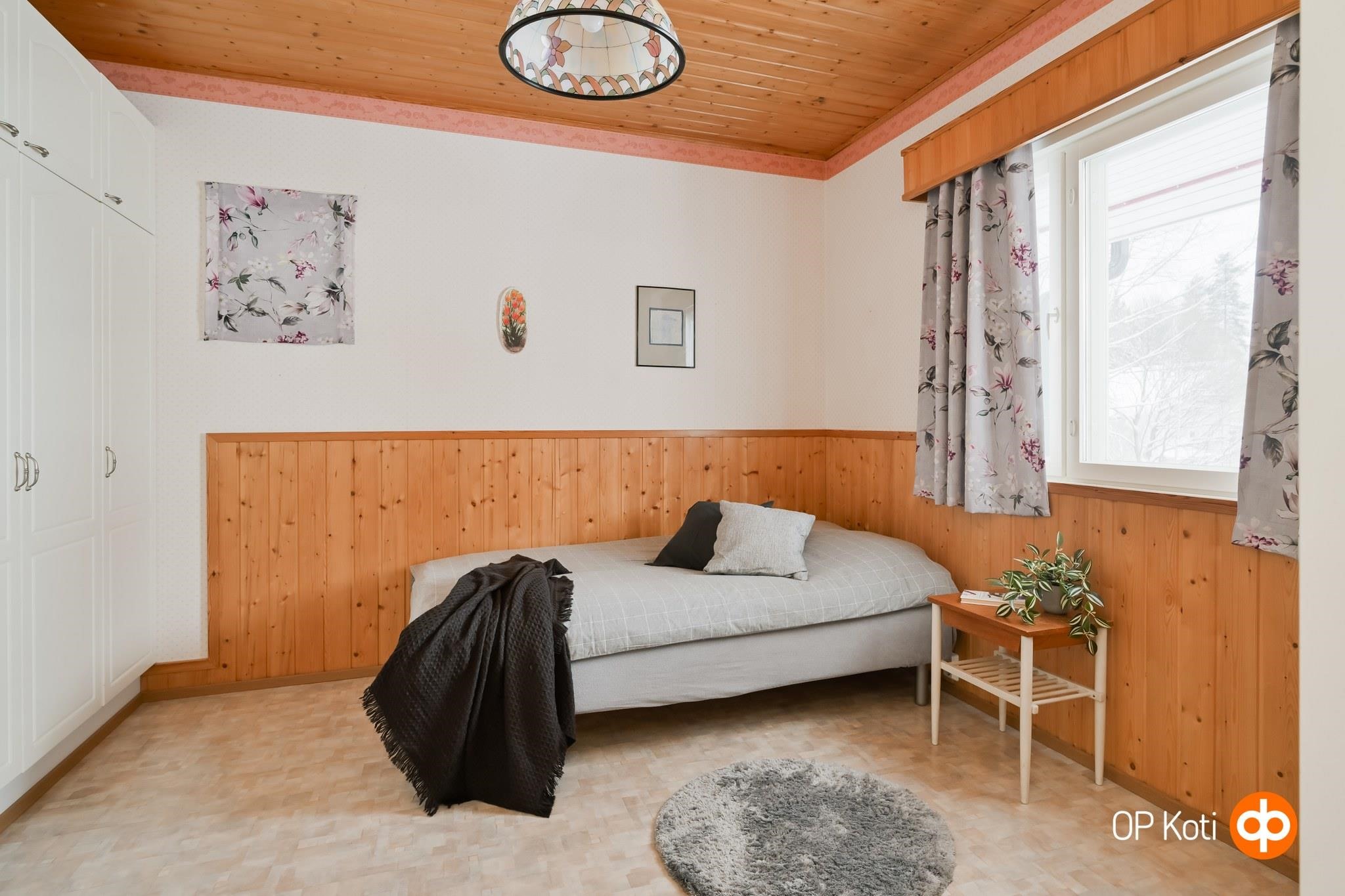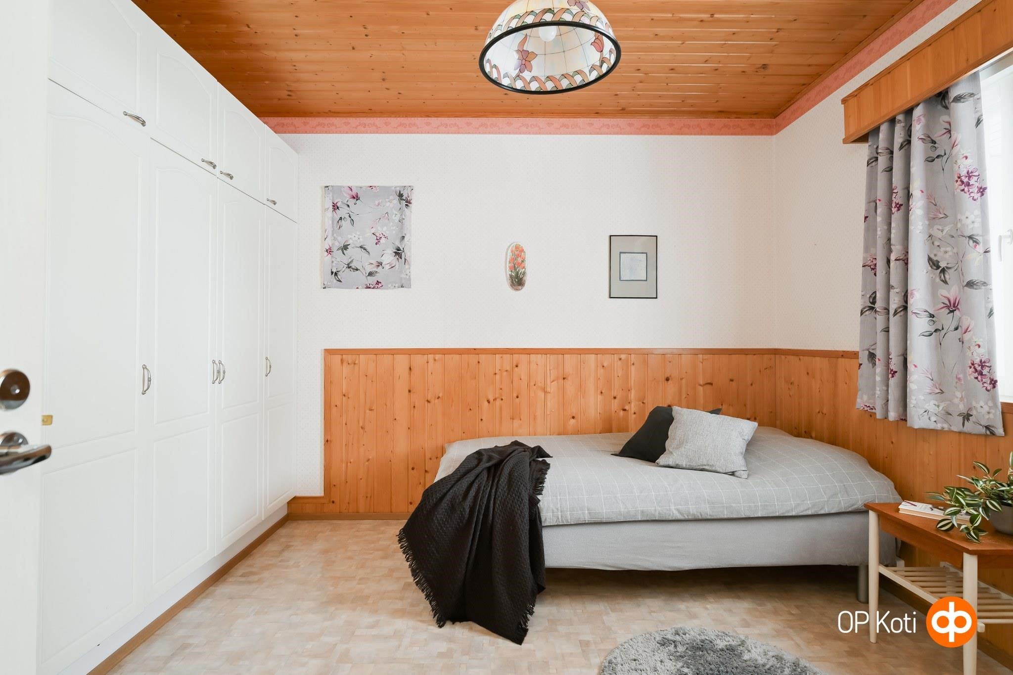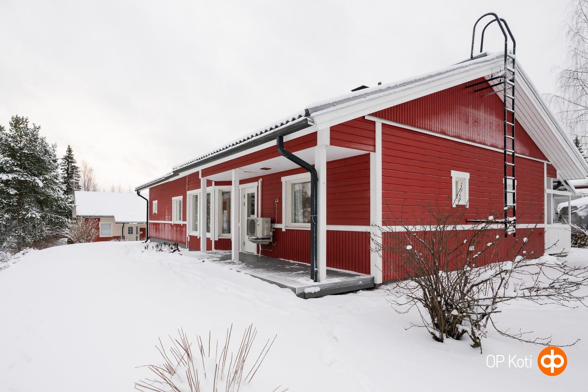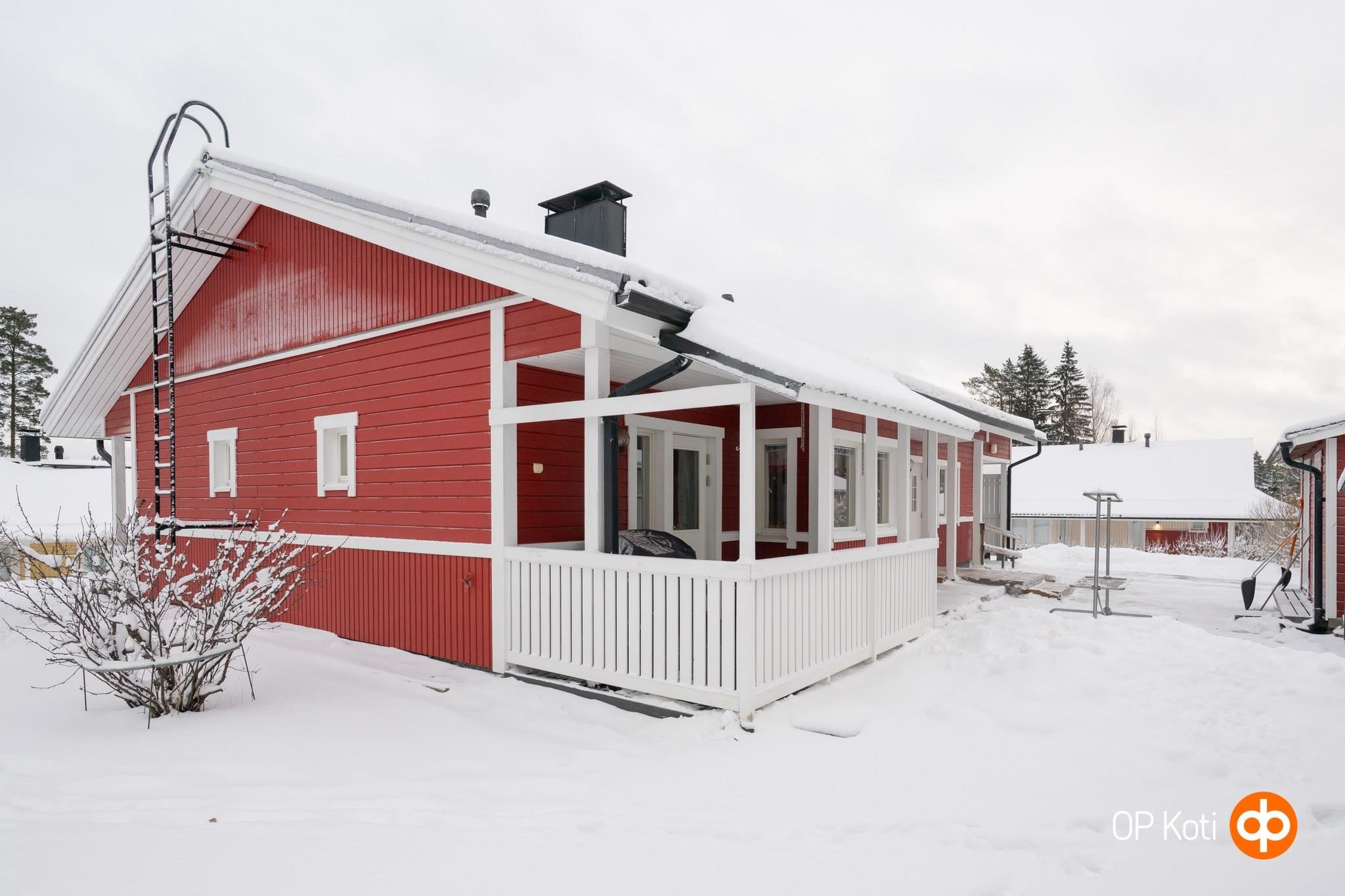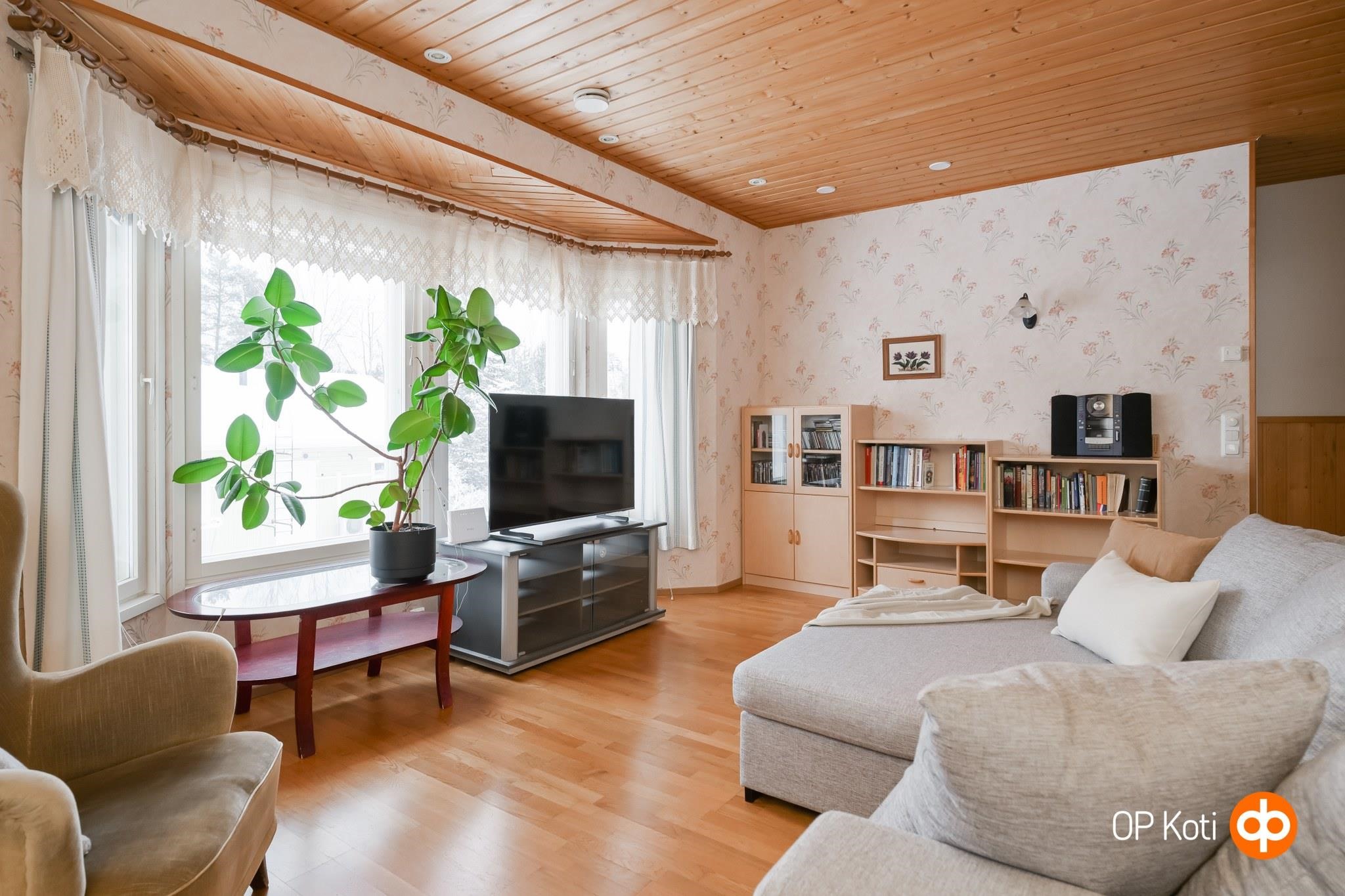 Sanalla sanoen kodikas, sitä tämä koti on. Eteisestä avautuu näkymä olohuonetilaan, johon isot ikkunat tuovat runsaasti luonnonvaloa. Varaava tulisija tuo kotoisaa lämpöä ja avustaakin hyvin lämmityskustannuksissa. Keittiö on poikkeuksellisen tilava ja täälläkin on tulisija. Reilun kokoisia makuuhuoneita on kaikkiaan kolme. Lisäksi löytyy pesutilojen yhteydestä aina tarpeellinen kodinhoitohuone, joka toimii myös pukutilana.