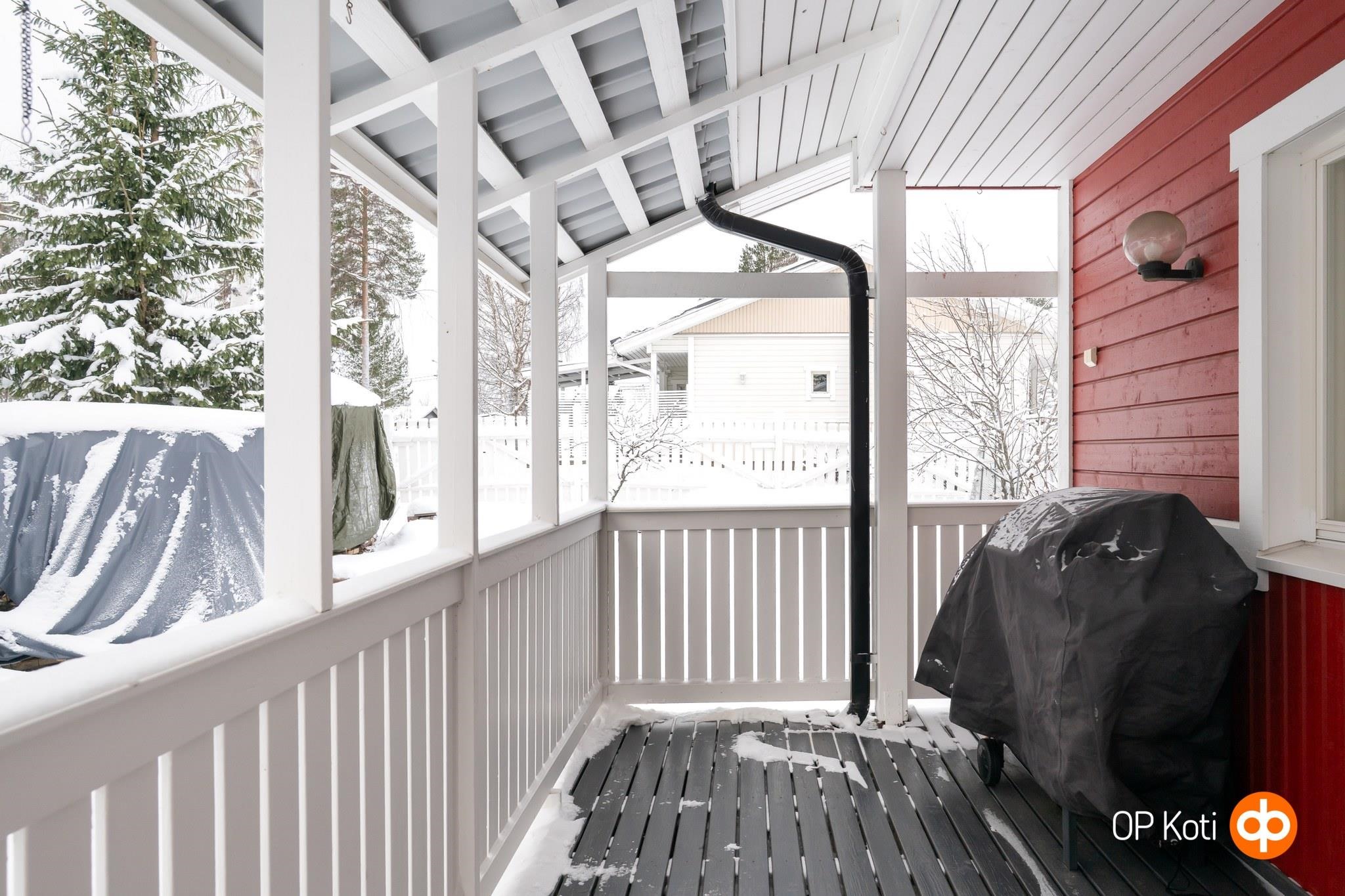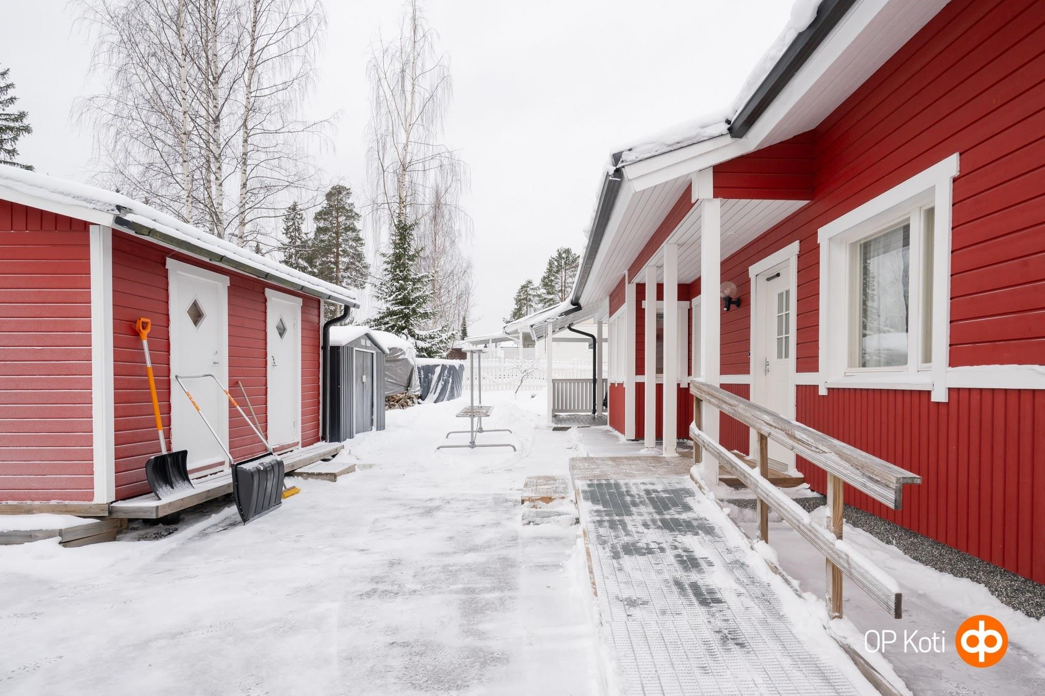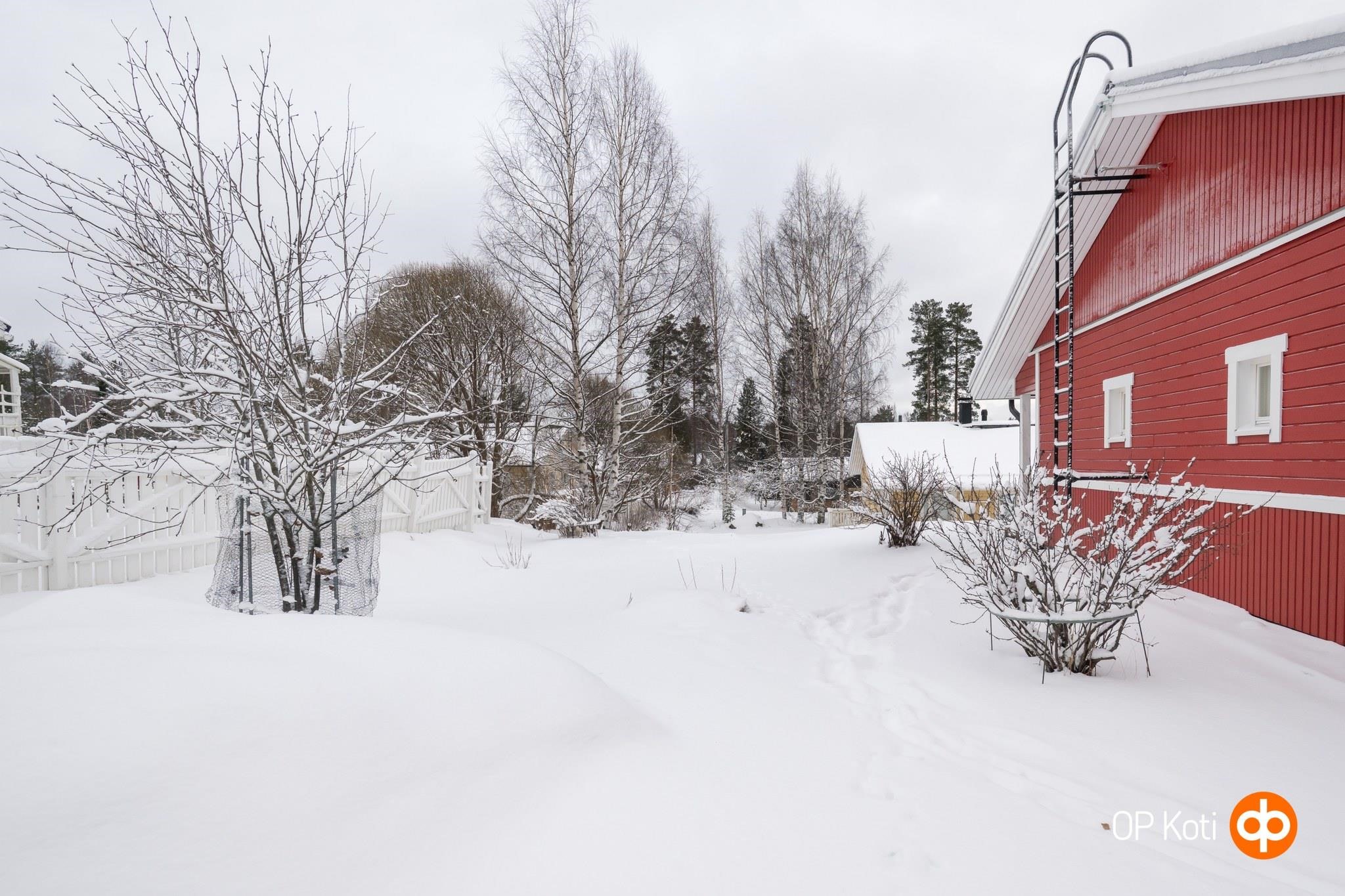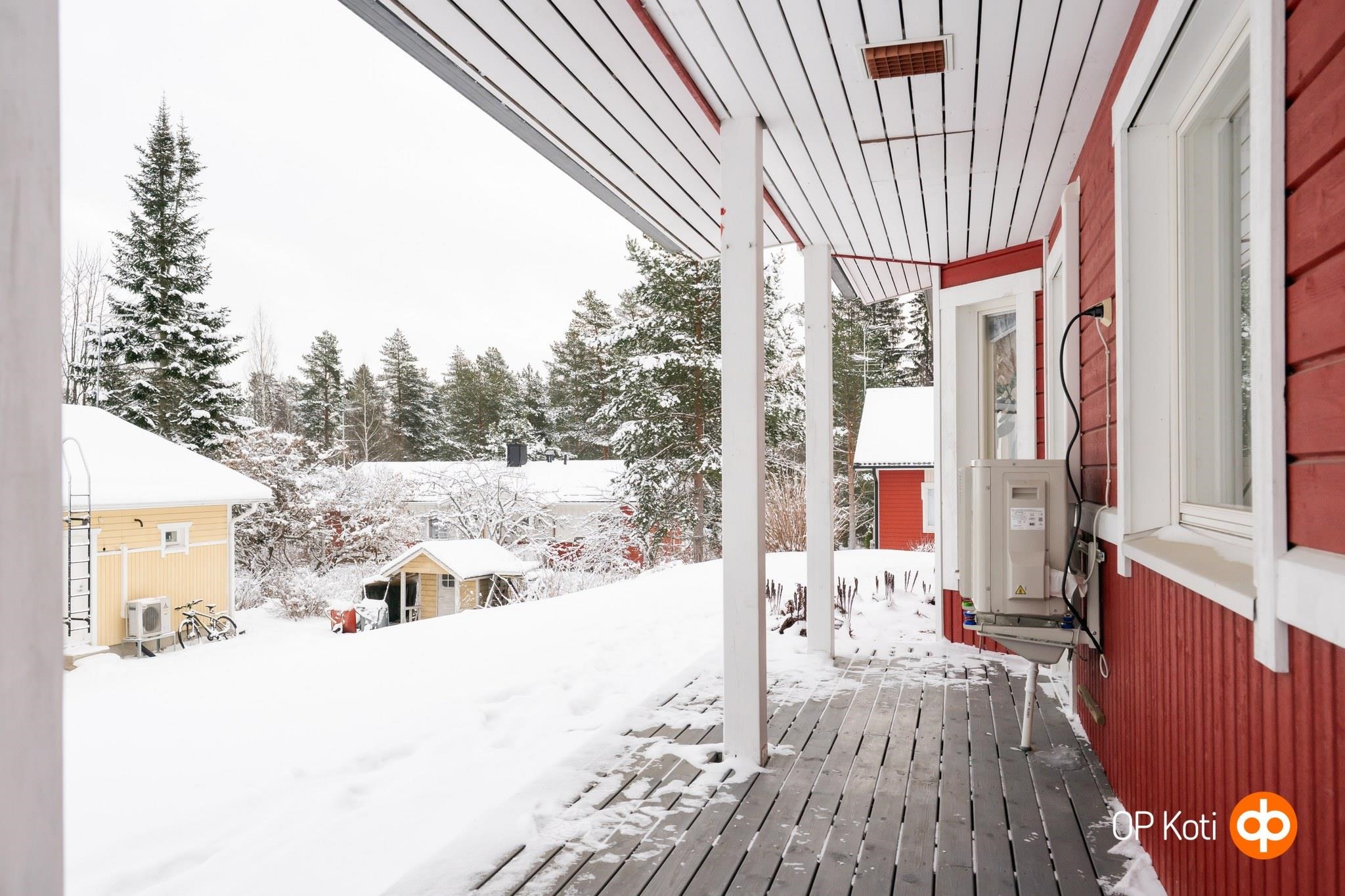 Sanalla sanoen kodikas, sitä tämä koti on. Eteisestä avautuu näkymä olohuonetilaan, johon isot ikkunat tuovat runsaasti luonnonvaloa. Varaava tulisija tuo kotoisaa lämpöä ja avustaakin hyvin lämmityskustannuksissa. Keittiö on poikkeuksellisen tilava ja täälläkin on tulisija. Reilun kokoisia makuuhuoneita on kaikkiaan kolme. Lisäksi löytyy pesutilojen yhteydestä aina tarpeellinen kodinhoitohuone, joka toimii myös pukutilana.
