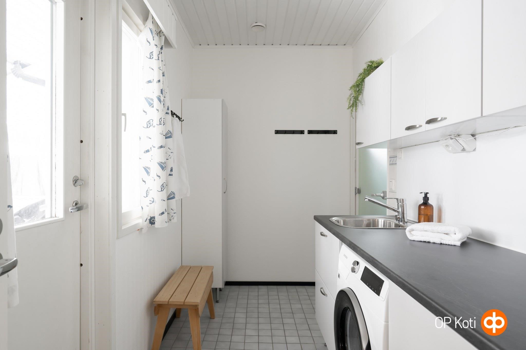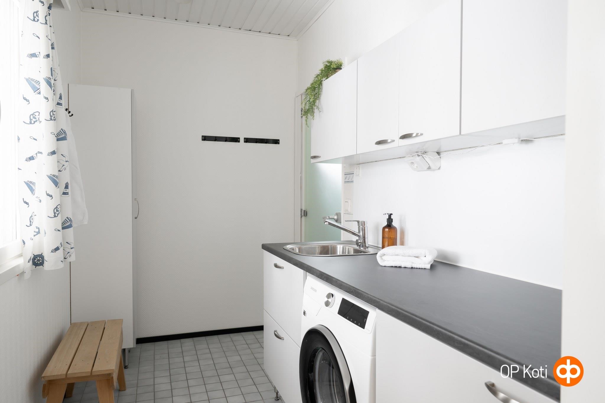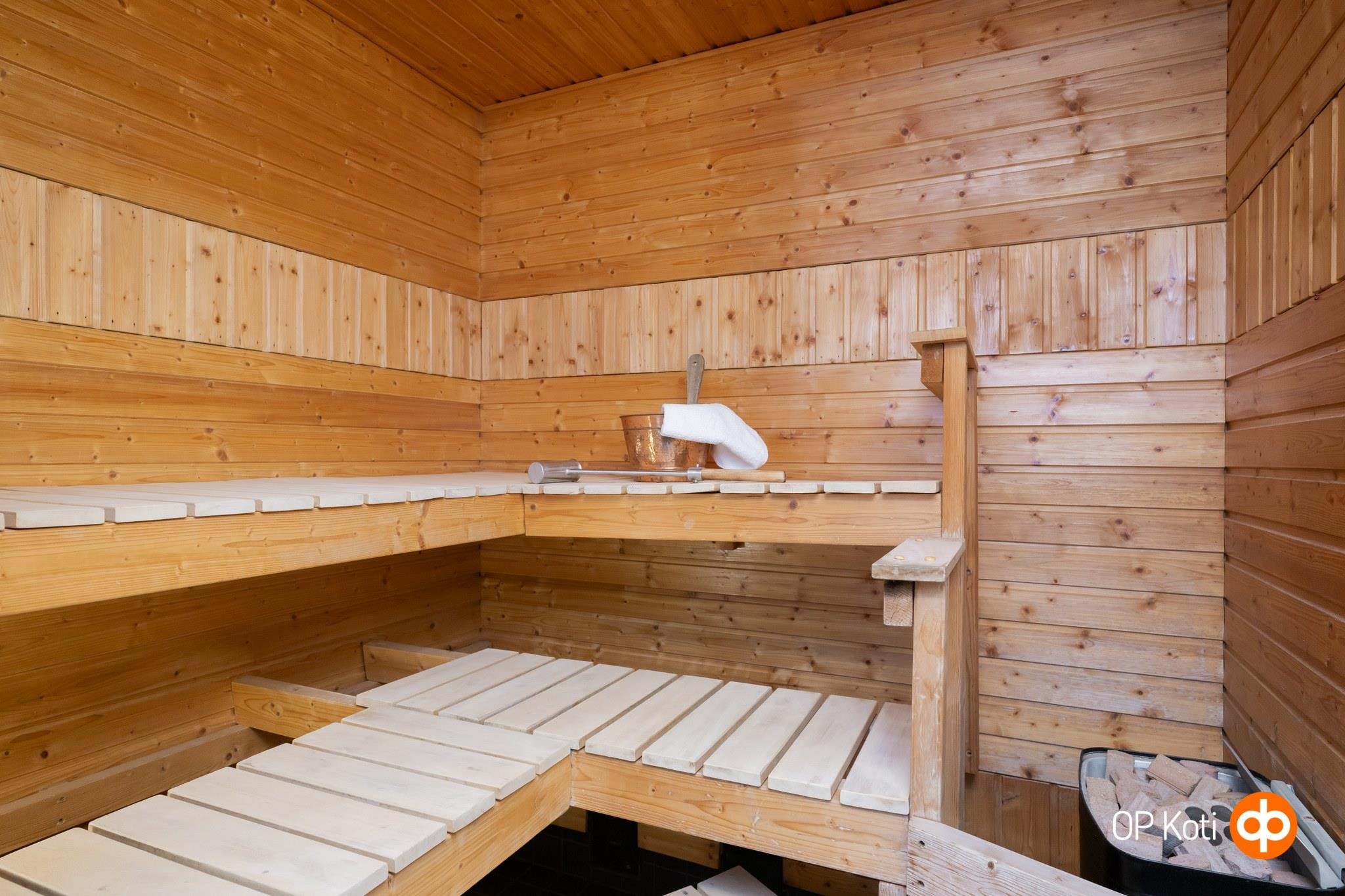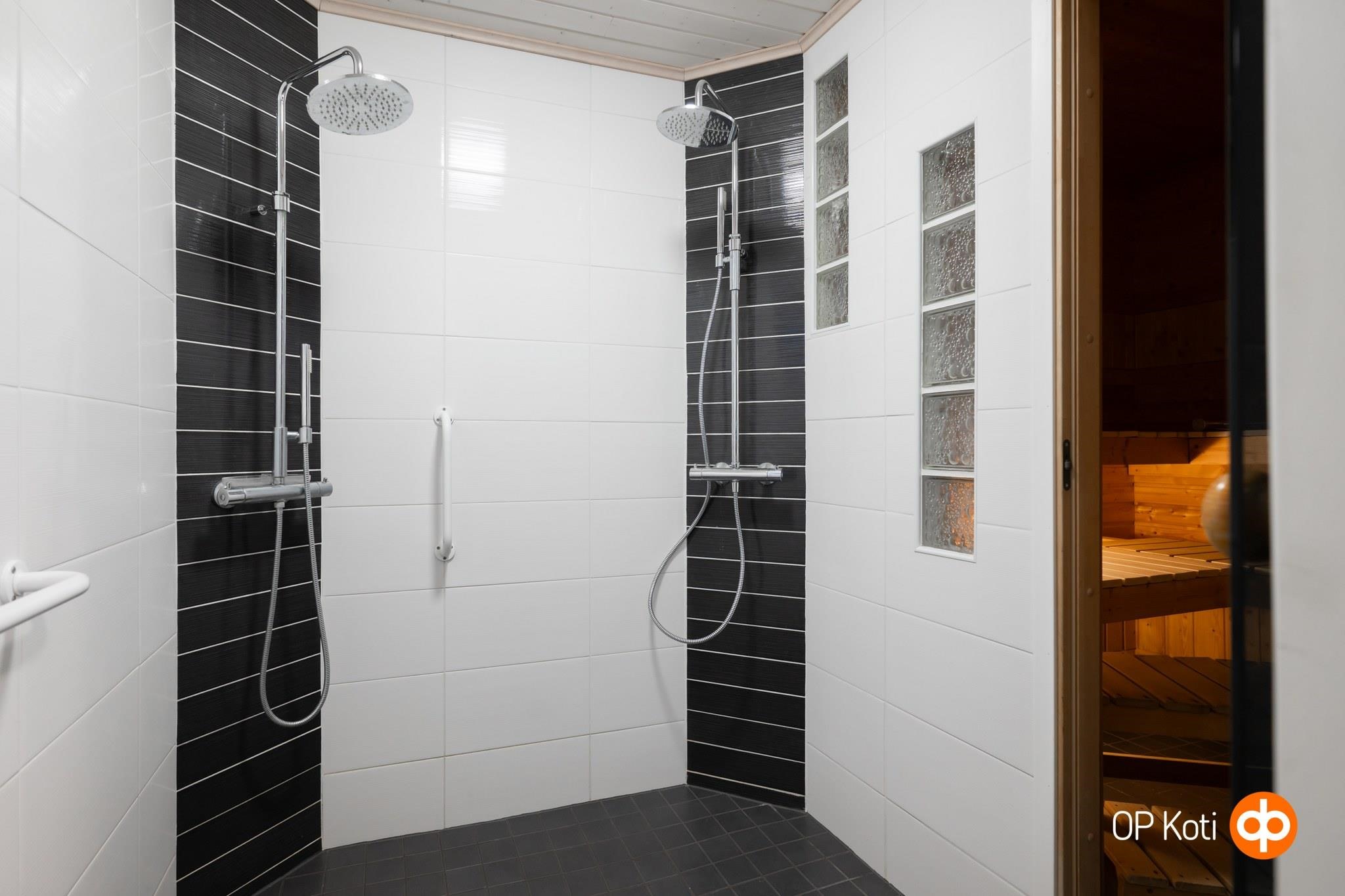 - Sauna, sähkökiuas, kylpyhuone, erillinen wc 2 kpl, suihku 2 kpl, kaapit eteisen wc:ssa, allaskaappi eteisen wc:ssa, pesukoneliitäntä khh:ssa, kiinteät valaisimet. Saunassa mahdollisuus puukiukaalle
