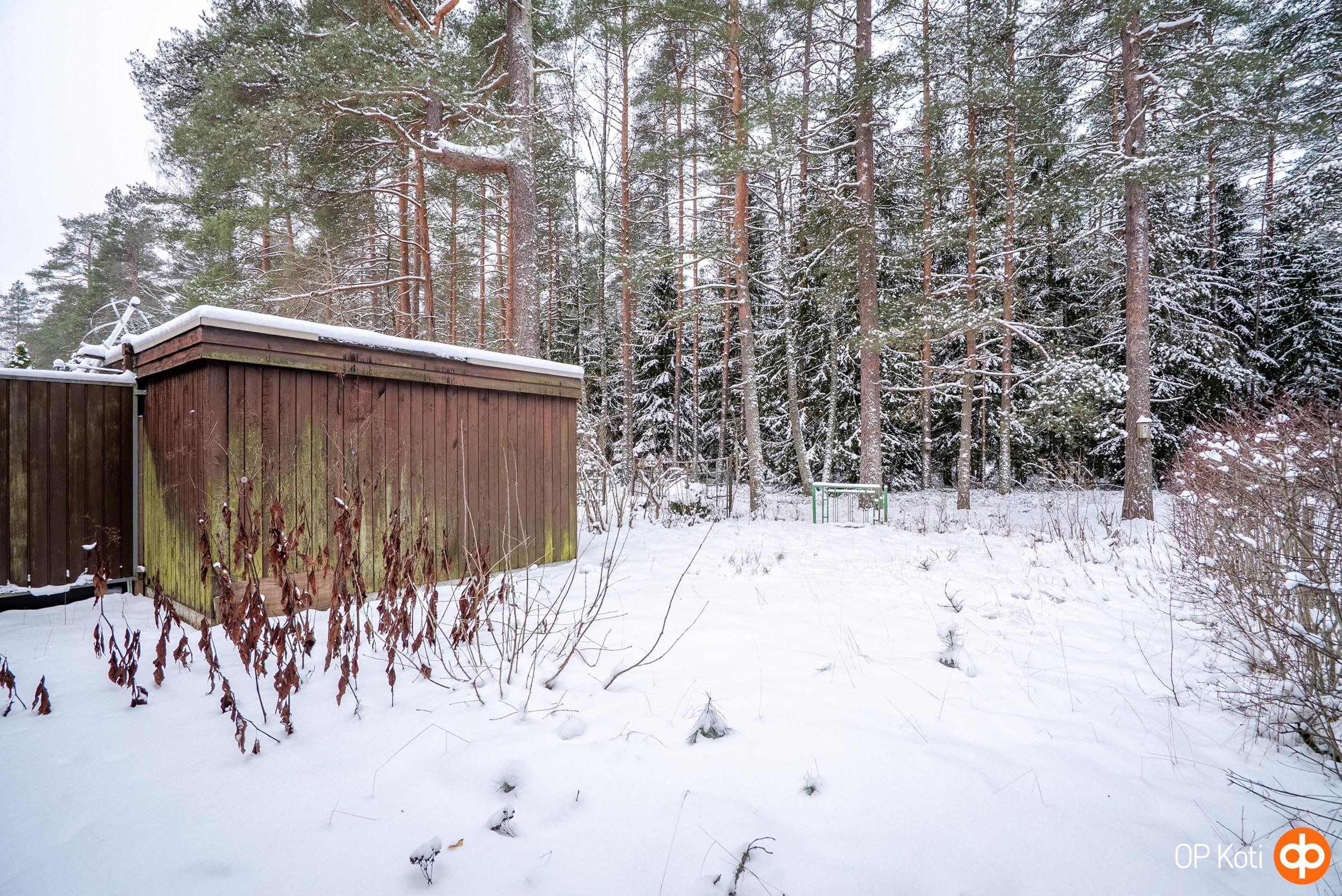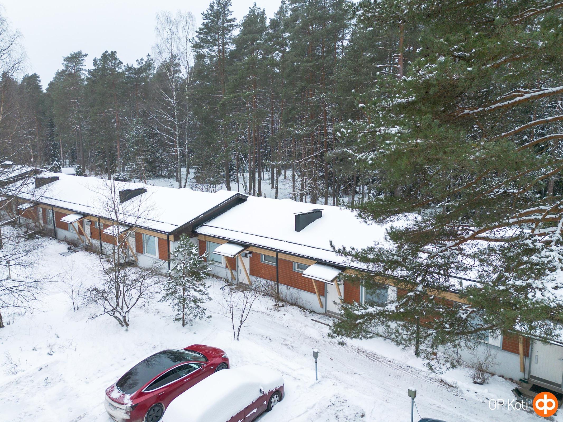 Asunnossa on vaatehuone ja reilun kokoinen olohuone. Takapiha suuntautuu ihanasti harjun metsiin, josta pääsee näppärästi kävelypoluille. Piha on aidattu ja omalla varastolla.