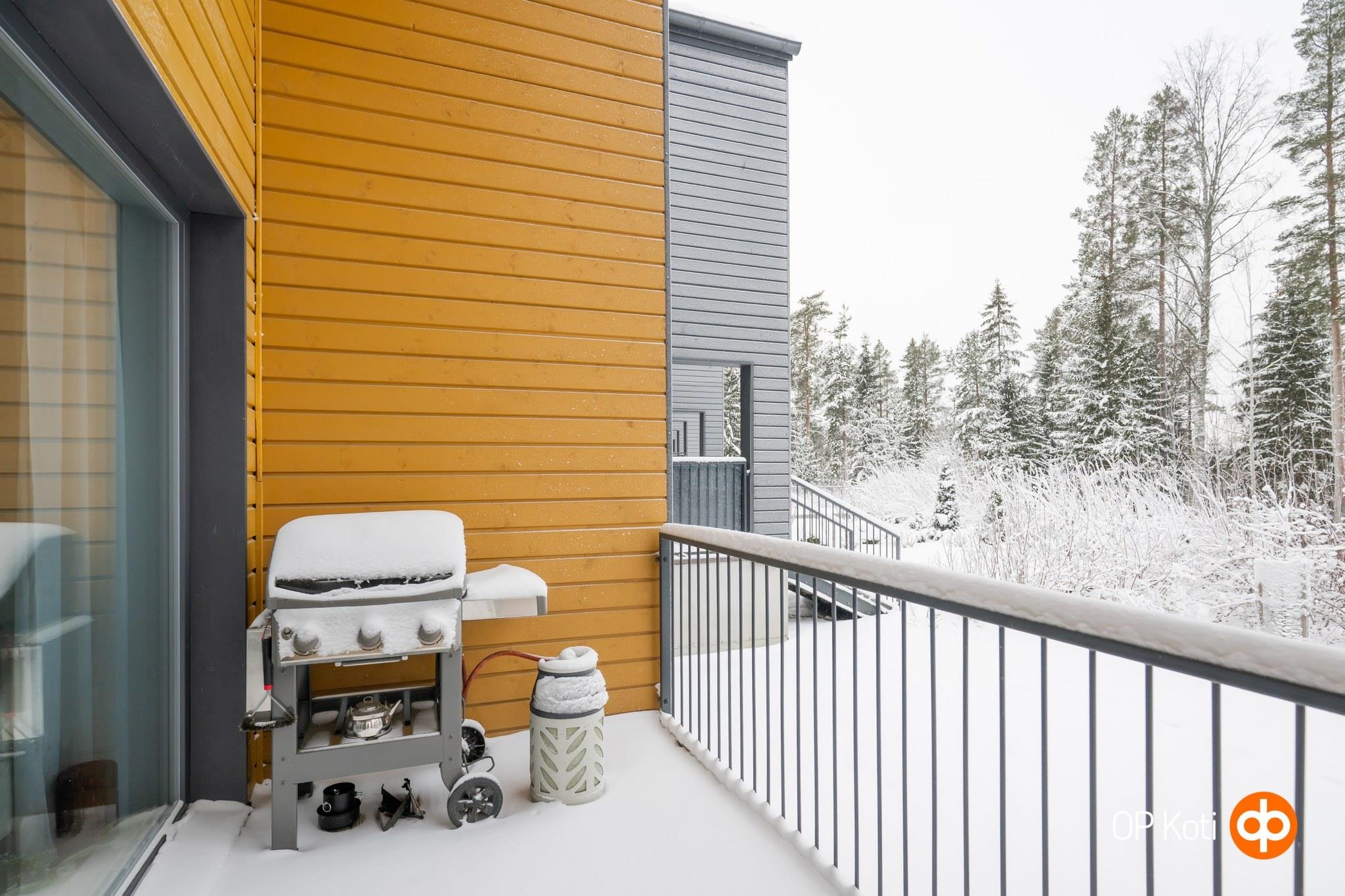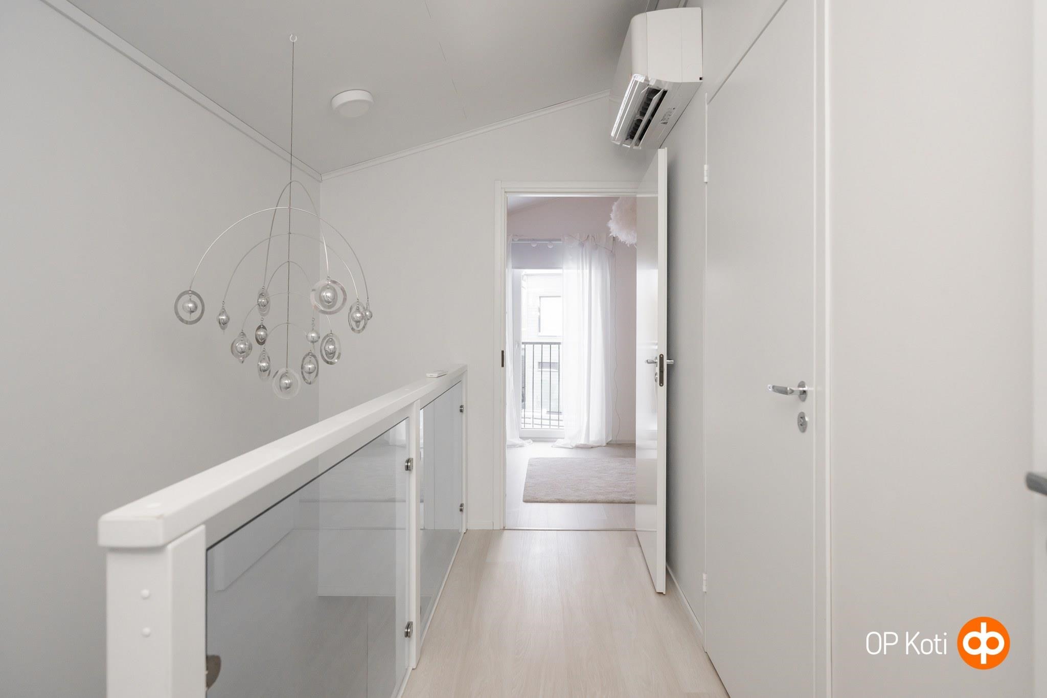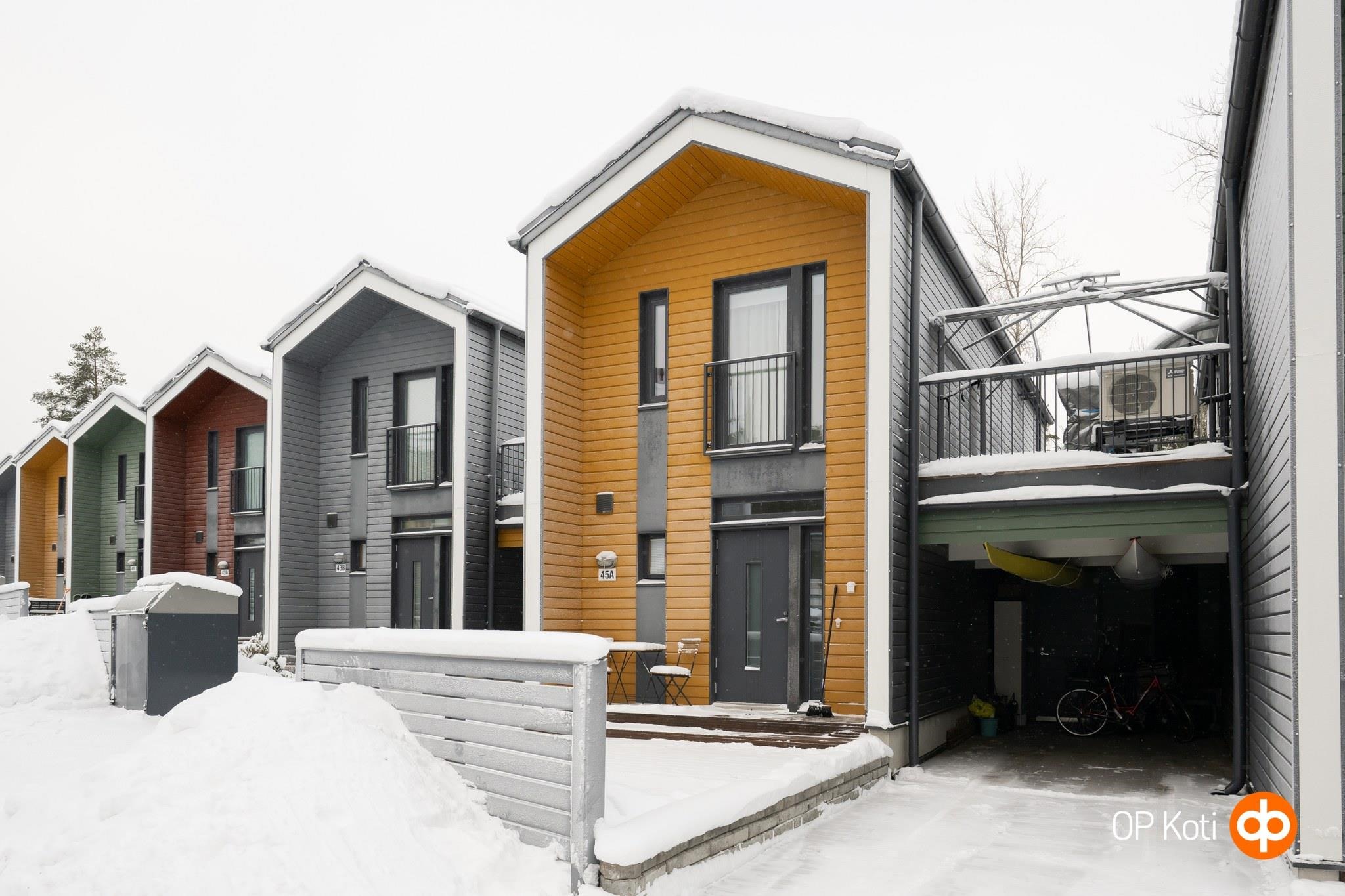 Kodissa on raikkaat vaaleat pinnat ja toimiva pohjaratkaisu kahdessa kerroksessa. Alakerrassa sijaitsevat tyylikäs keittiö ja avara olohuone, josta on suora käynti takapihalle. Takapihalla on myös terassi, joka kutsuu nauttimaan kesäpäivistä. Alakerrasta löytyvät myös pesuhuone ja sauna, jotka tuovat arkeen ripauksen luksusta. Yläkerrassa on kaksi makuuhuonetta, kylpyhuone sekä upea kattoterassi, joka on täydellinen paikka rentoutumiseen tai vaikka aamukahville. Autokatoksen perällä oleva varasto tarjoaa runsaasti säilytystilaa.