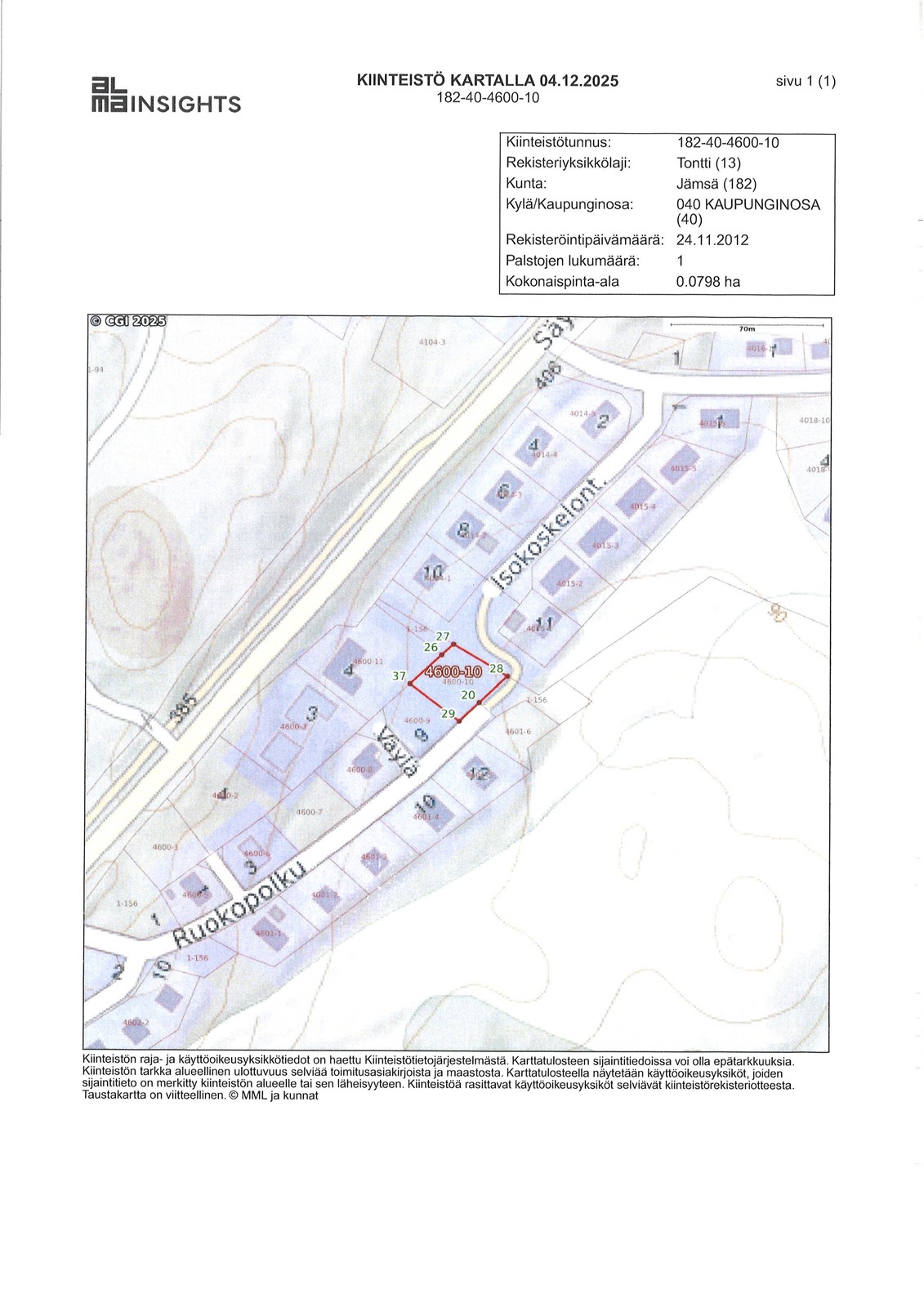 - Asemakaava (sitova tonttijako). RA Loma-asuntojen korttelialue. Alueen tonteille saa rakentaa yhden, enintään kaksiasuntoisen lomarakennuksen. 1/2k II (2/3) Murtoluku roomalaisen numeron edessä osoittaa, kuinka suuren osan rakennuksen suurimman kerroksen alasta kellarin tasolla saa käyttää kerrosalaan laskettavaksi tilaksi. Sulkeissa oleva murtoluku roomalaisen numeron jäljessä osoittaa, kuinka suuren osan rakennuksen suurimman kerroksen alasta saa rakennuksen ylimmässä kerroksessa käyttää kerrosalaan luettavaksi tilaksi Jämsän kaupunki