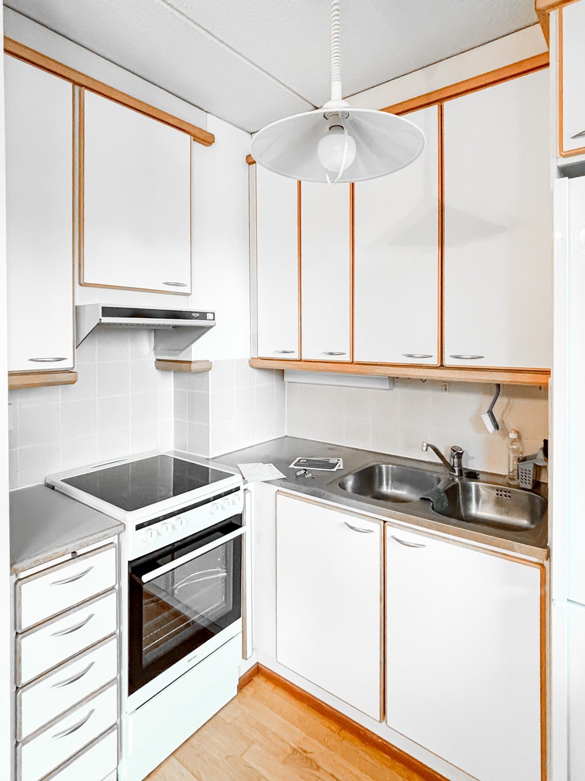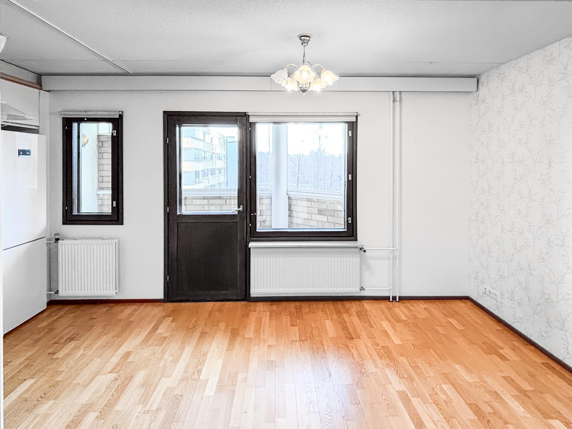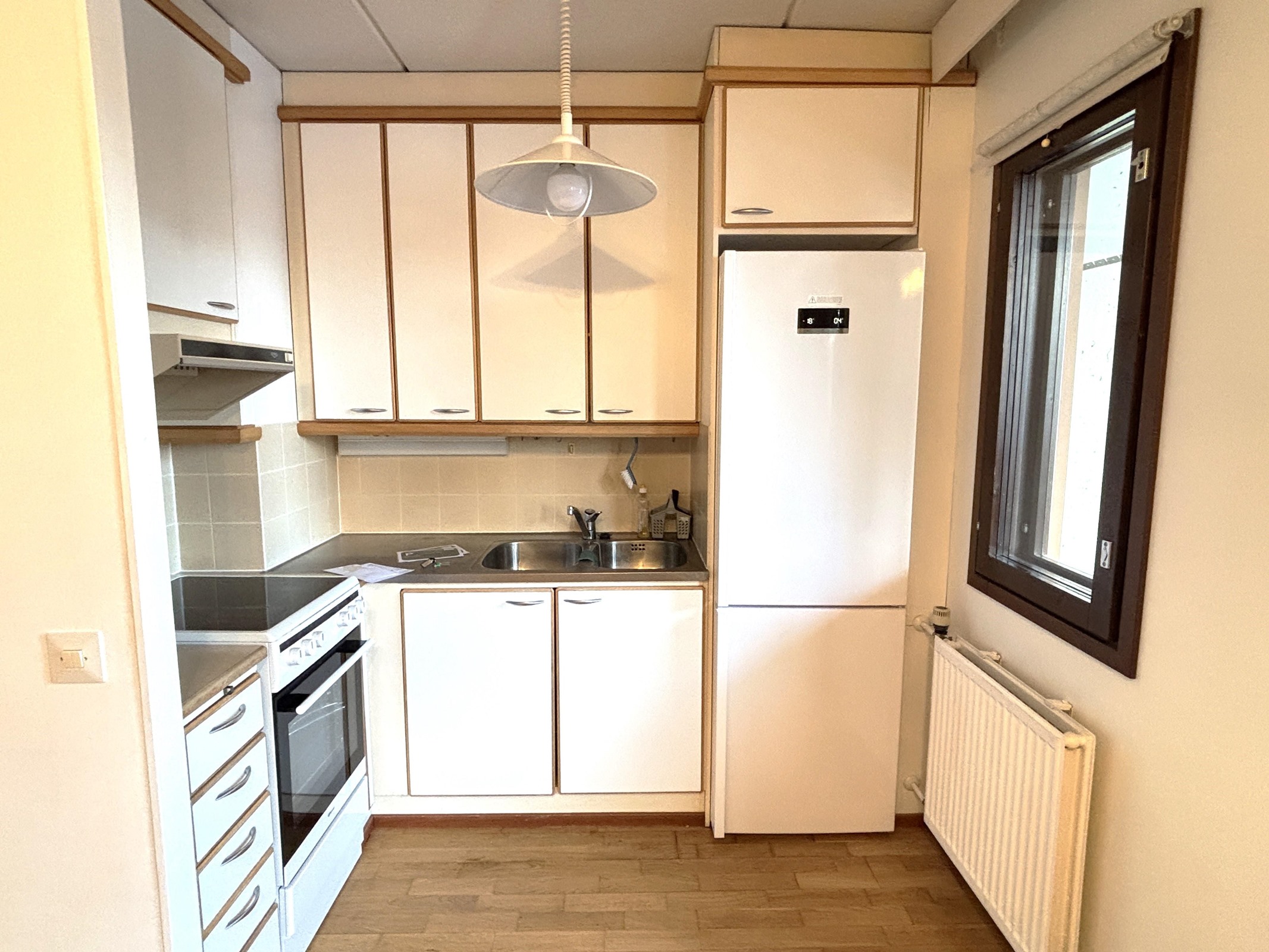 - Jääkaappipakastin, lattialiesi, liesituuletin, kaapistot, kiinteät valaisimet.