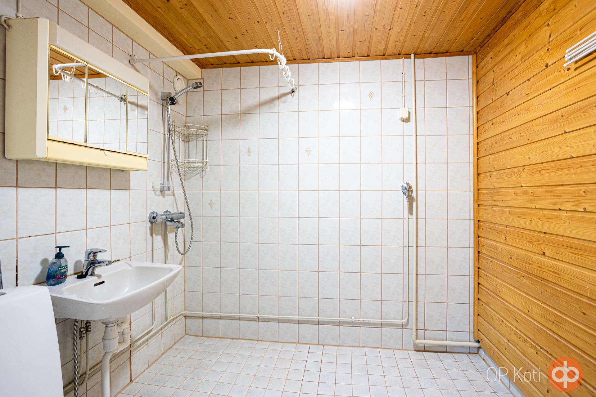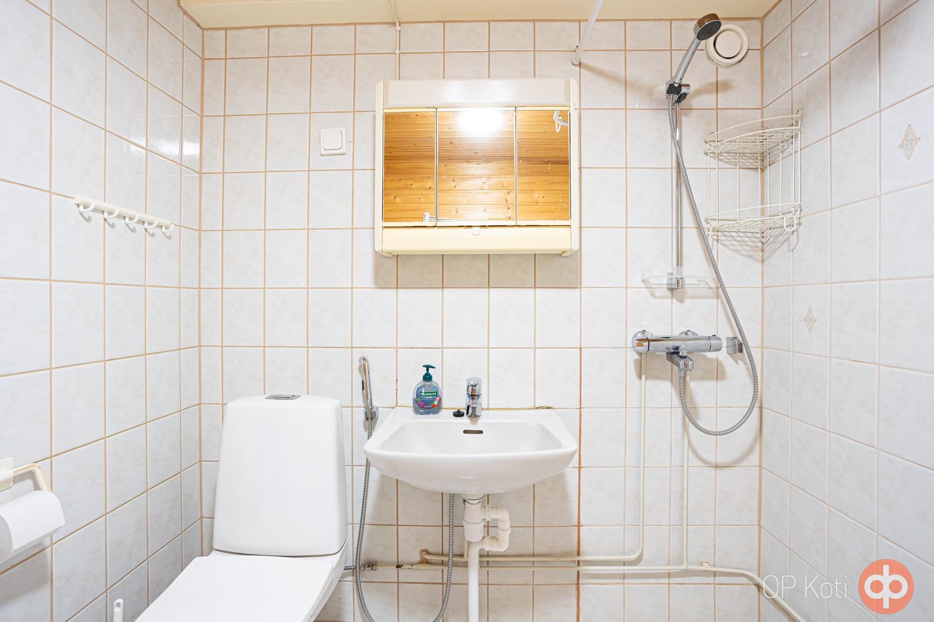 - Kylpyhuone, suihku, peilikaappi, pesukoneliitäntä, kiinteät valaisimet.