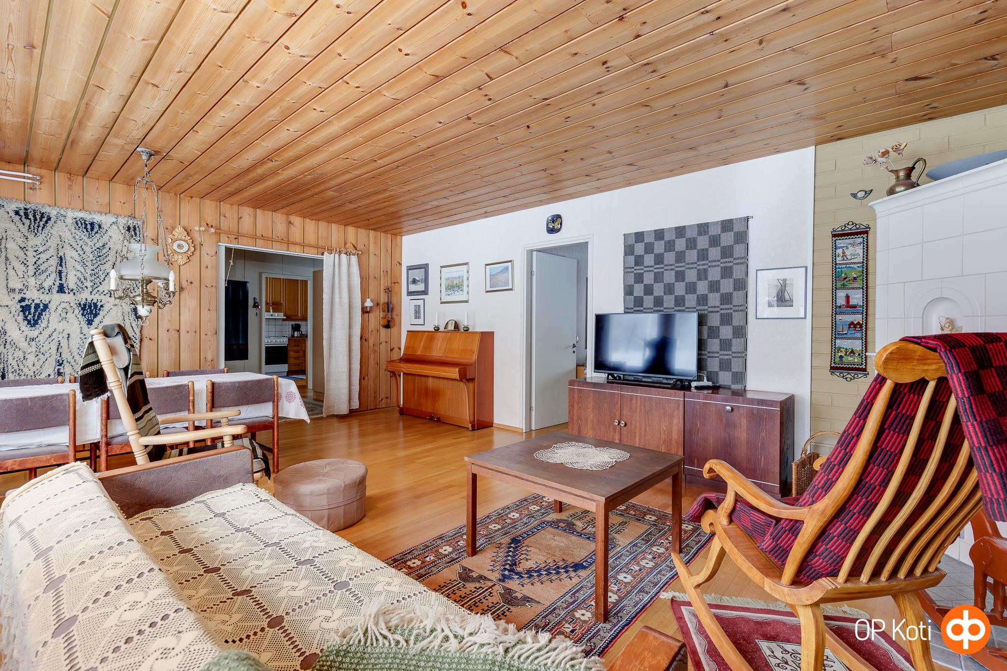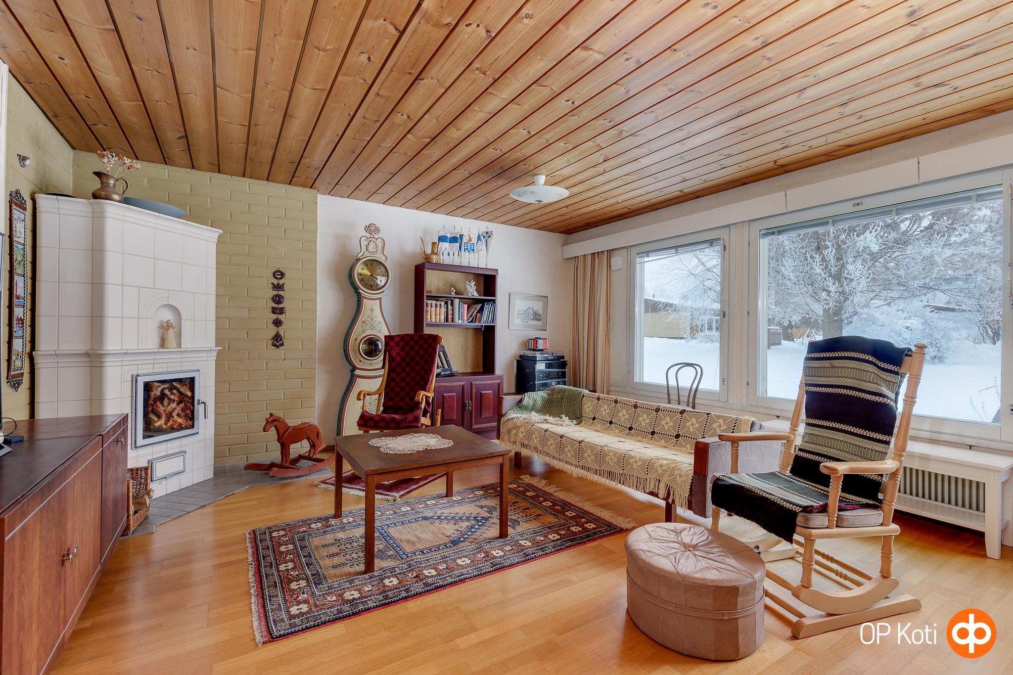 Tässä kolmen makuuhuoneen kodissa on runsaasti tilaa koko perheelle. Iso ja valoisa olohuone muodostaa kodin sydämen, ja viihtyisyyttä sekä lämpöä tuo Kerman Saven varaava takka, joka on asennettu vuonna 2006. Olohuoneen, keittiön, eteisen ja makuuhuoneiden lattiapinnat on uusittu kauniilla tammiparketilla vuonna 1999, mikä tuo kotiin ajattoman ja yhtenäisen ilmeen.